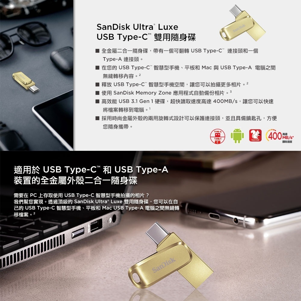 SanDisk 512GB 512G 金 Ultra luxe TYPE-C SDDDC4-512G USB 雙用隨身碟SanDisk 512GB 512G 金 Ultra luxe TYPE-C SDDDC4-512G USB 雙用隨身碟Flash Drives & OTGMon.King 儲存設備專賣店