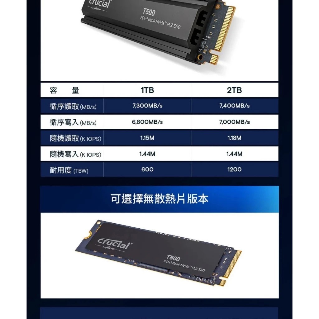 Crucial T500 4TB 4T 散熱片PCIe Gen4 NVMe M.2 SSD CT4000T500SSD5Crucial T500 4TB 4T 散熱片PCIe Gen4 NVMe M.2 SSD CT4000T500SSD5SSDMon.King 儲存設備專賣店