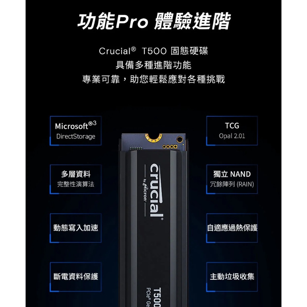 Crucial T500 1TB 散熱片 Nvme PCIE 4 SSD CT1000T500SSD5 美光固態硬碟Crucial T500 1TB 散熱片 Nvme PCIE 4 SSD CT1000T500SSD5 美光固態硬碟SSDMon.King 儲存設備專賣店