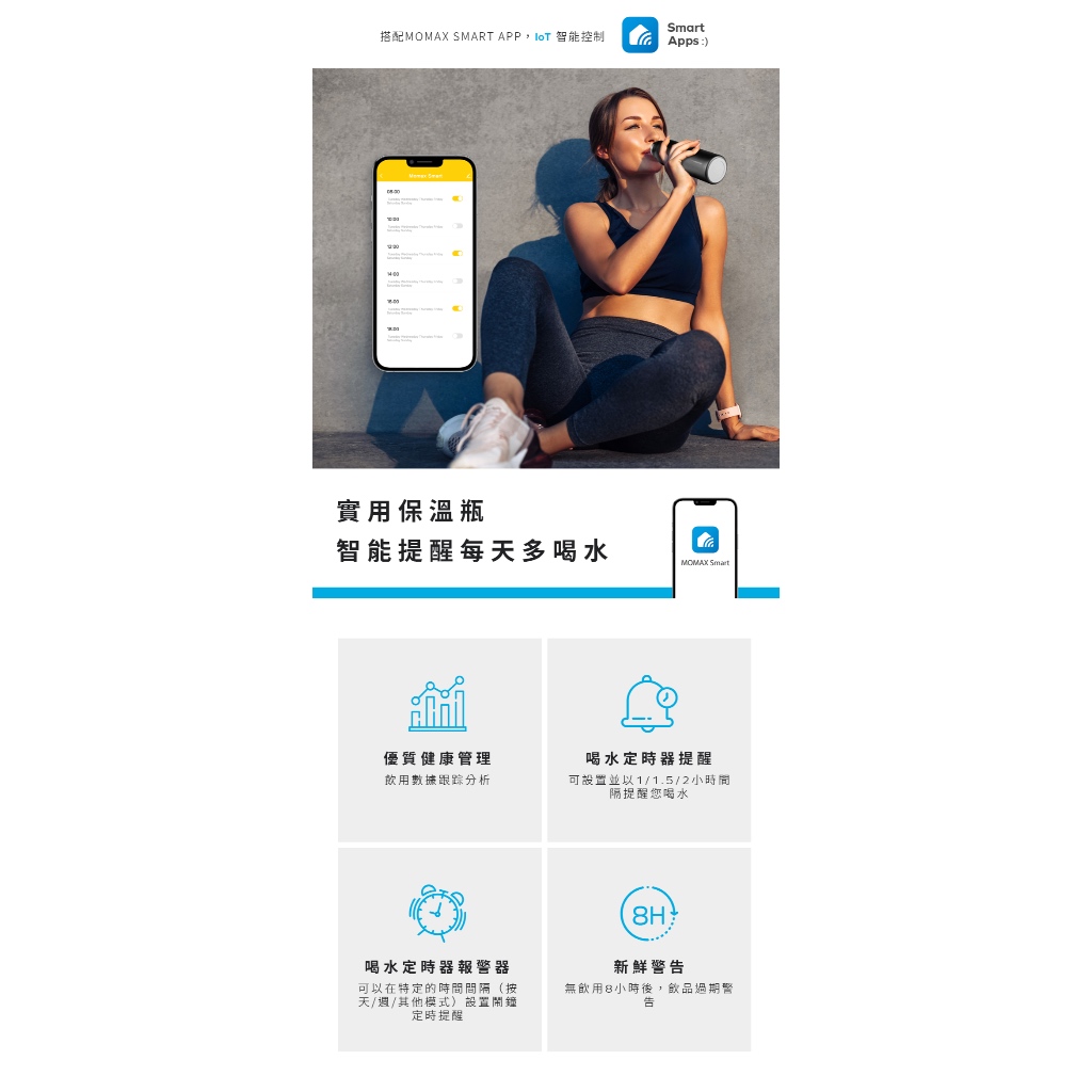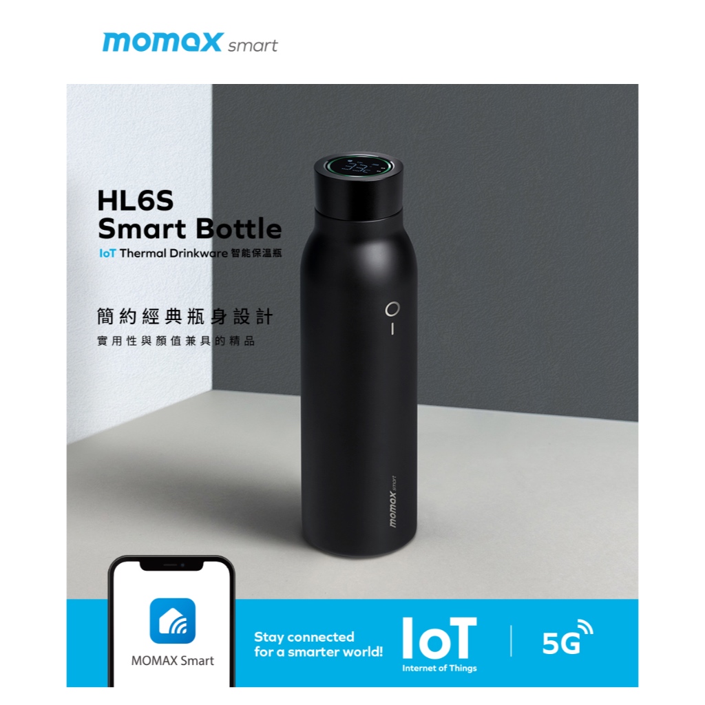 【Momax】Smart Bottle 智能保溫瓶 600ml | IoT App 健康 飲水習慣粉|黑Water Bottles & AccessoriesMomax Taiwan 摩米士台灣品牌旗艦店