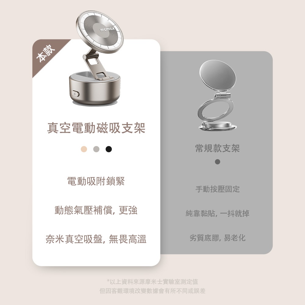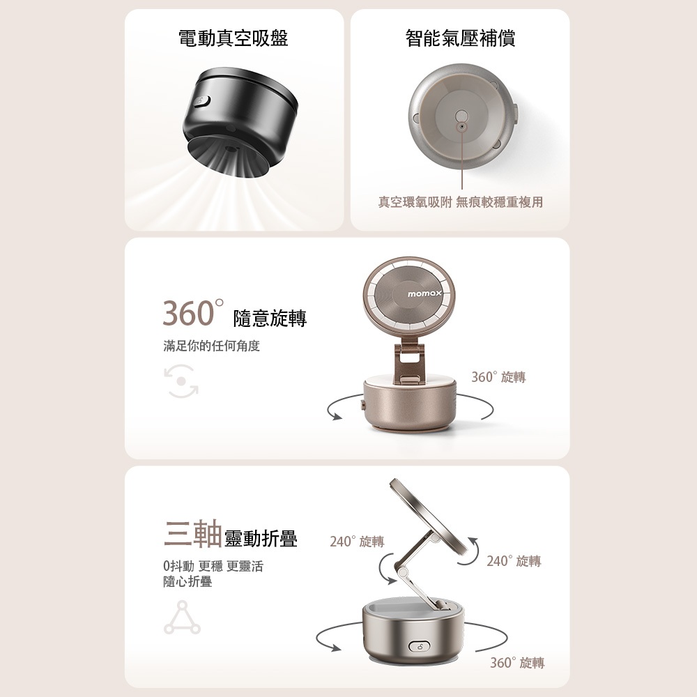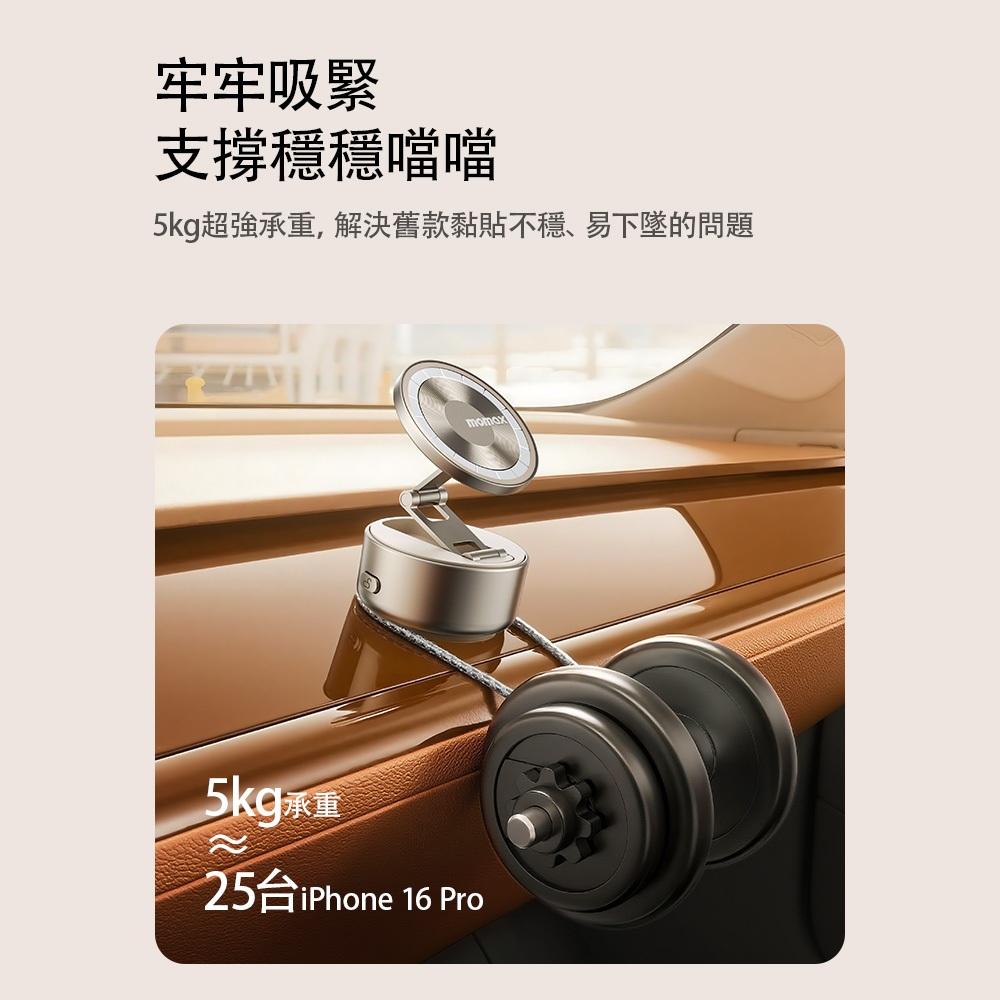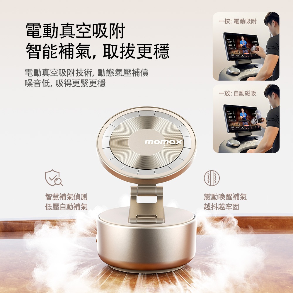 【Momax】 1-Snap Go 電動吸盤磁吸支架 / 手機支架 / 手機架 / 車用手機架黑|鈦金|沙漠金Phone GripsMomax Taiwan 摩米士台灣品牌旗艦店