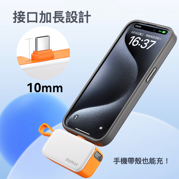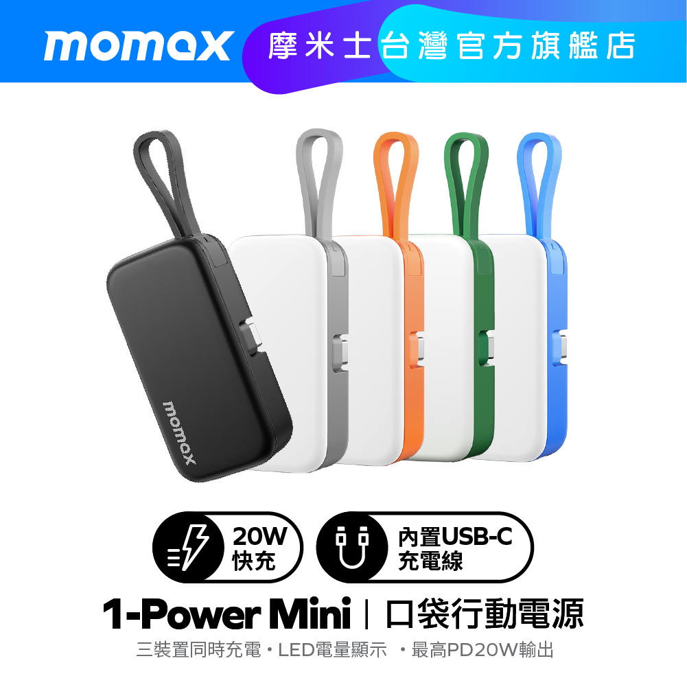 【Momax】有CCC / WH標示 1-Power Mini 5000mAh 迷你帶線行動電源 (USB-C充電口)黑|白|藍|橘|綠Powerbanks & BatteriesMomax Taiwan 摩米士台灣品牌旗艦店