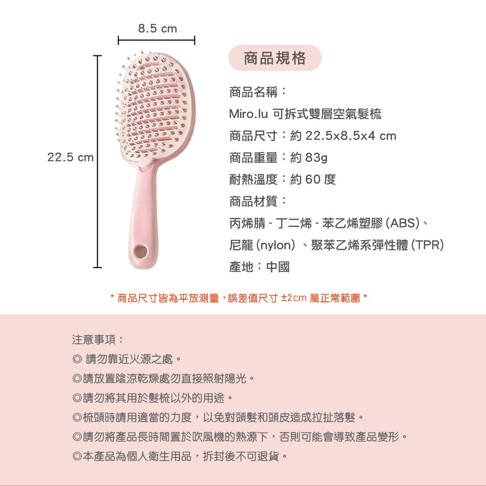 Miro.lu 可拆式雙層空氣髮梳 雙層可拆 鏤空梳 按摩梳 洗頭梳 乾濕二用Miro.lu 可拆式雙層空氣髮梳 雙層可拆 鏤空梳 按摩梳 洗頭梳 乾濕二用Hair Toolsmod’s hair 官方直營店