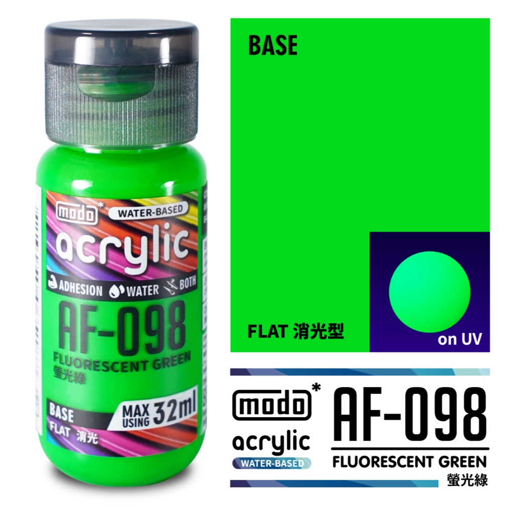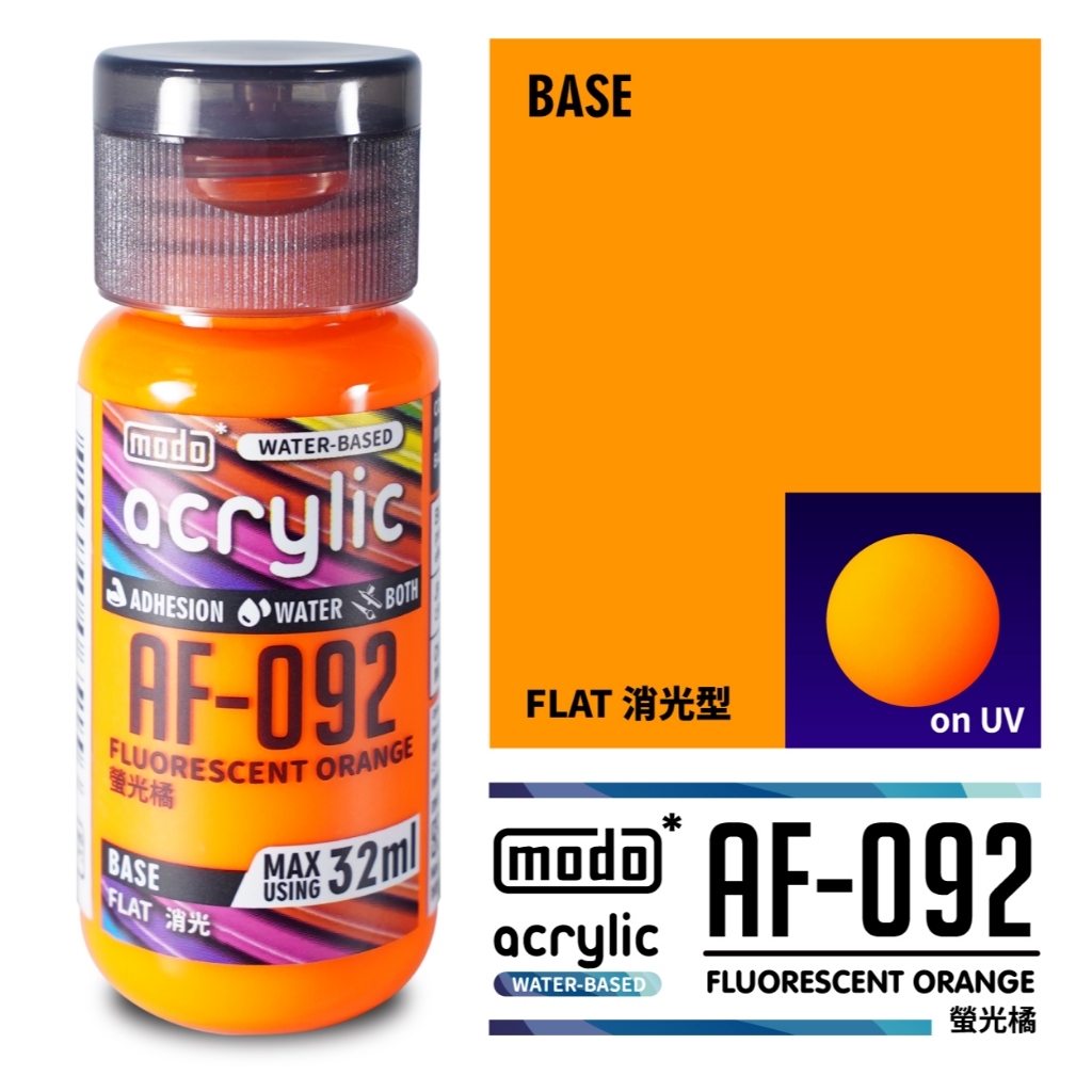【modo摩多製造所】二代新水漆 AF消光 螢光色 單瓶賣場/32ML/模型漆/水漆|官方賣場Mni 5ml 眼滴分裝瓶(10入)|AF090 螢光桃|AF091 螢光紅|AF092 螢光橘|AF095 螢光黃|AF097 螢光紫|AF098 螢光綠|AF099 螢光藍|AF100 秘密螢光|AW07 墨線液 BASEMecha Models & Diecastmodo摩多製造所