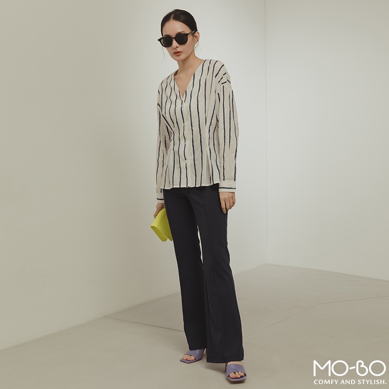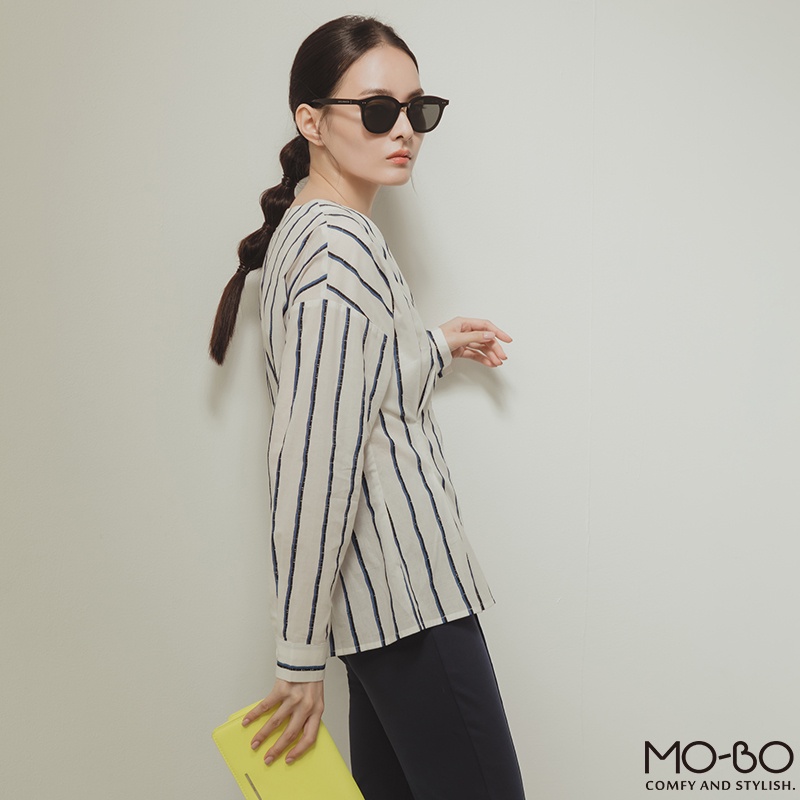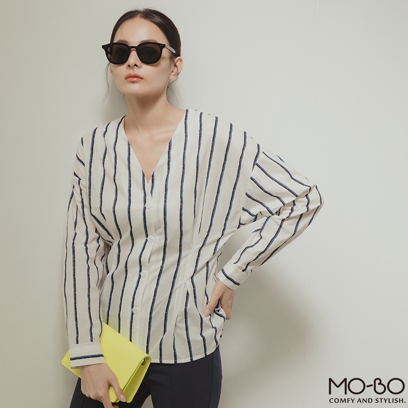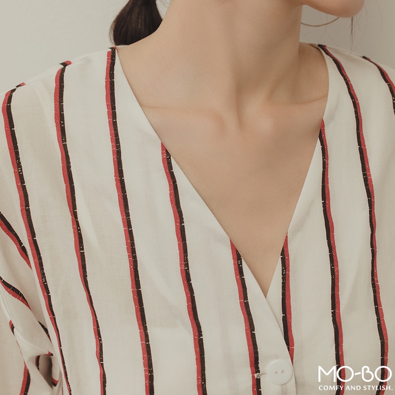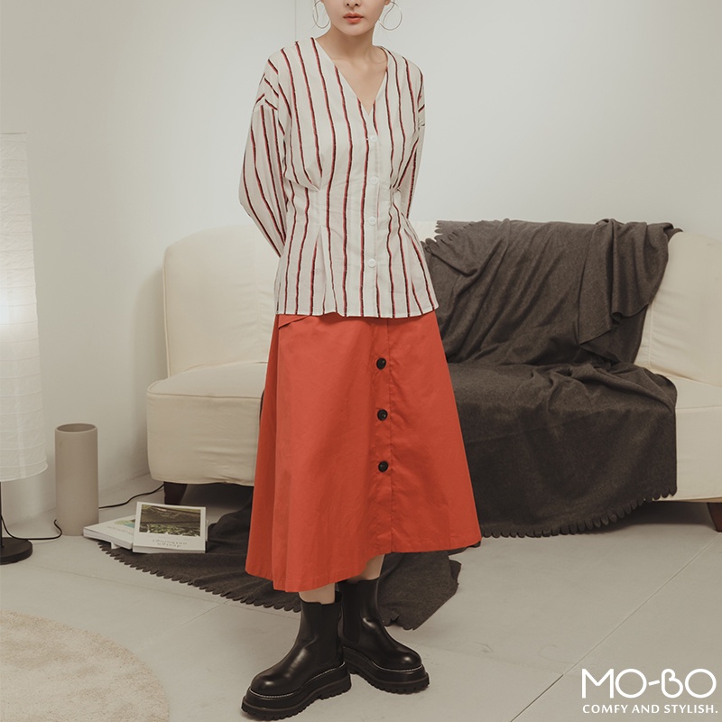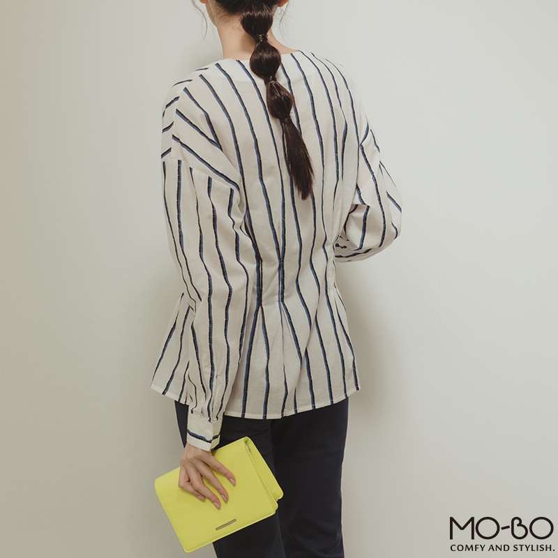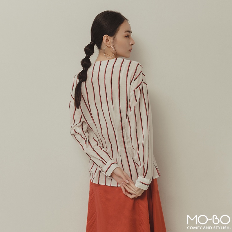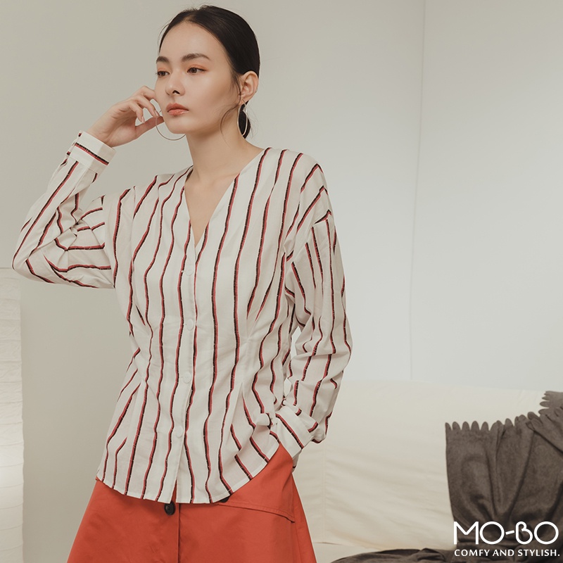 MOBO 條紋之韻味腰身顯瘦上衣 / 01160189海洋藍,M|海洋藍,L|紅木色,S|紅木色,M|紅木色,L|海洋藍,SShirts & BlousesMO-BO