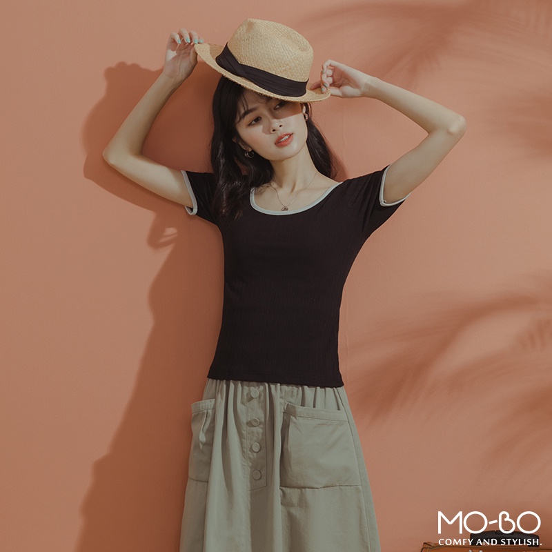 MOBO MIT撞色U領基本日常T / 01013432黑色,M|黑色,L|薄荷綠,S|薄荷綠,M|薄荷綠,L|黑色,ST-shirtsMO-BO