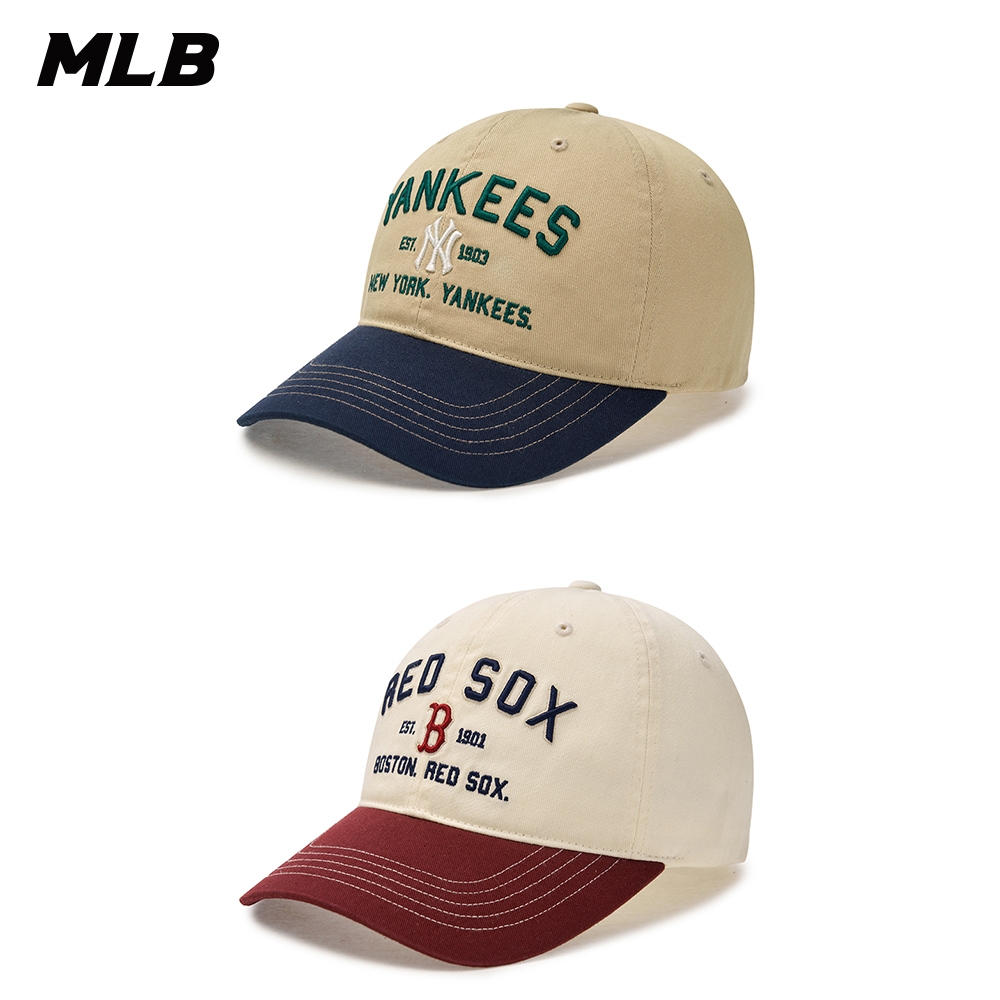 MLB 可調式軟頂棒球帽 Varsity系列 紅襪/洋基隊 (3ACPV085N-兩款任選)【官方旗艦店】B紅襪隊_酒紅/米白,F|NY洋基隊_深藍/卡其,FMLB KOREA 官方旗艦店