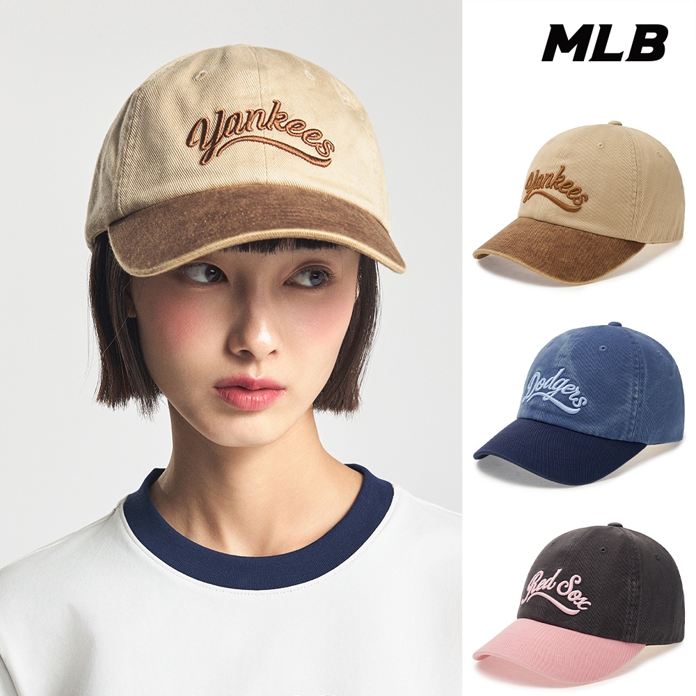 MLB 可調式軟頂棒球帽 撞色 Varsity 洋基/紅襪/道奇隊(3ACPVL74N-三款任選)【官方旗艦店】LA道奇隊_深藍,F|B紅襪隊_灰/粉,F|NY洋基隊_卡其/棕,FMLB KOREA 官方旗艦店