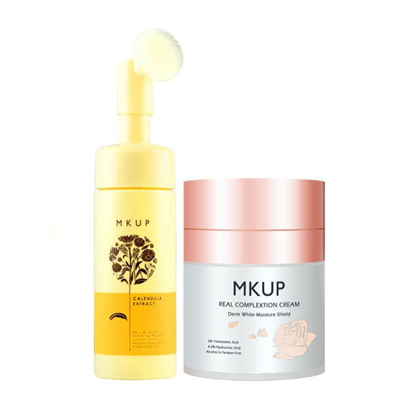 MKUP 美咖 賴床美白素顏霜30ML+金盞花輕卸深洗泡泡慕斯|MKUP美咖官方旗艦館金盞花慕斯+素顏霜30MLFacial CleanserMKUP美咖★官網旗艦館
