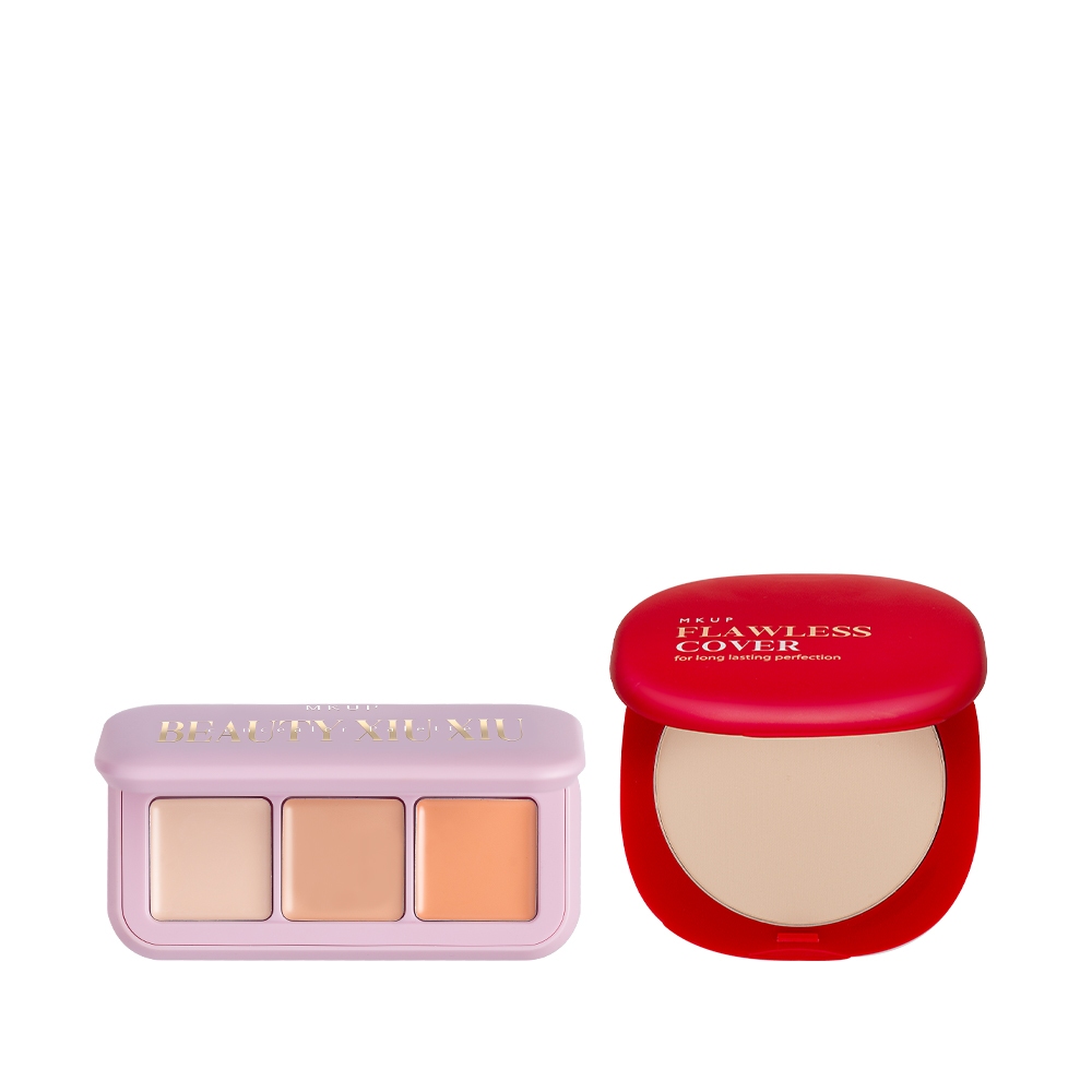 MKUP美咖【新品上市】美肌修修三色遮瑕盤+高遮無痕水粉餅|MKUP美咖官方旗艦館白皙色|自然色FaceMKUP美咖★官網旗艦館
