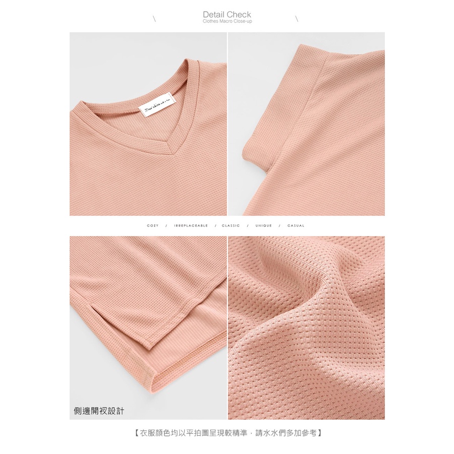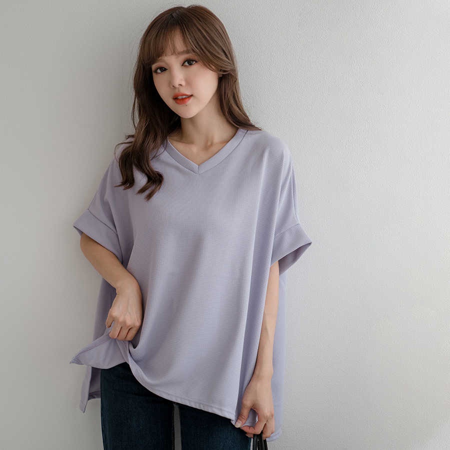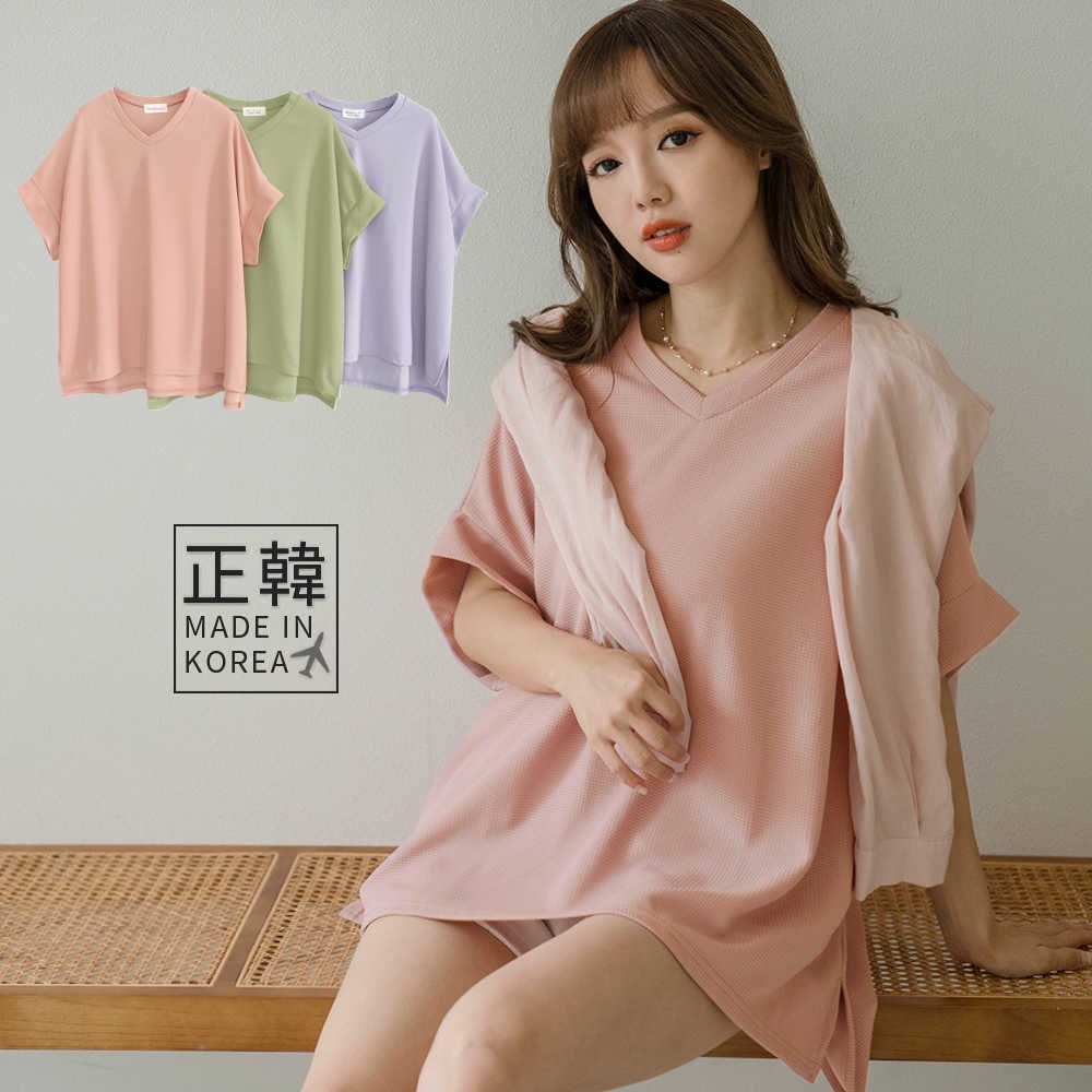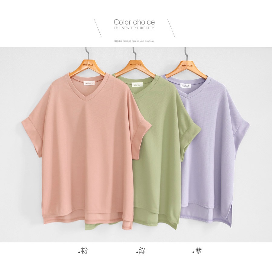MIUSTAR 正韓-V領鬆餅格雙側開岔寬版素面上衣(共3色)0823 預購【NL2189RE】粉F|綠F|紫FT-shirtsMIUSTAR