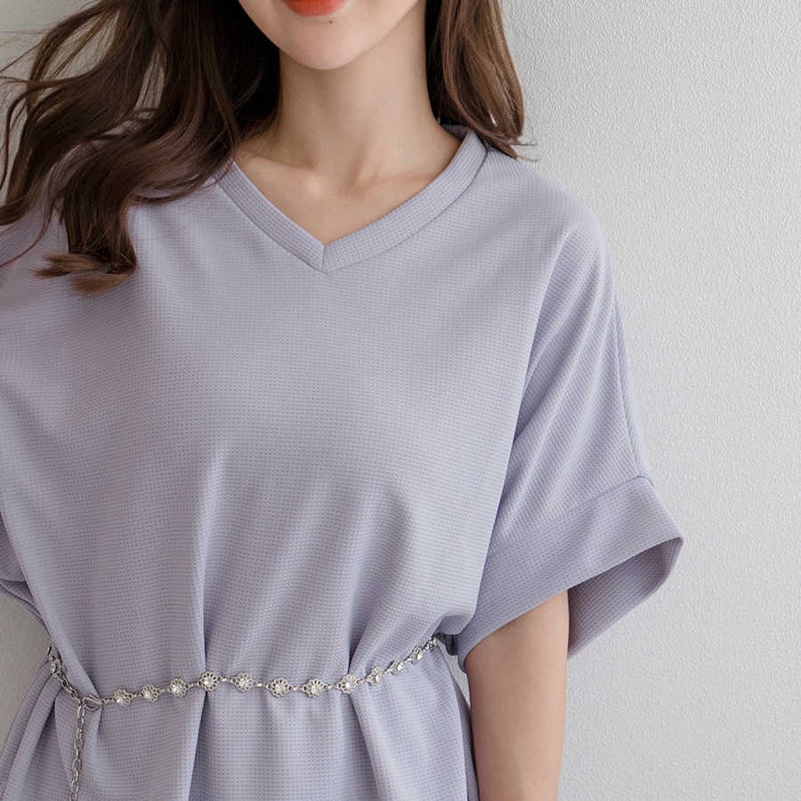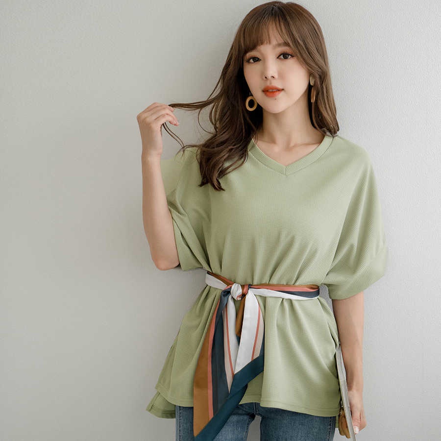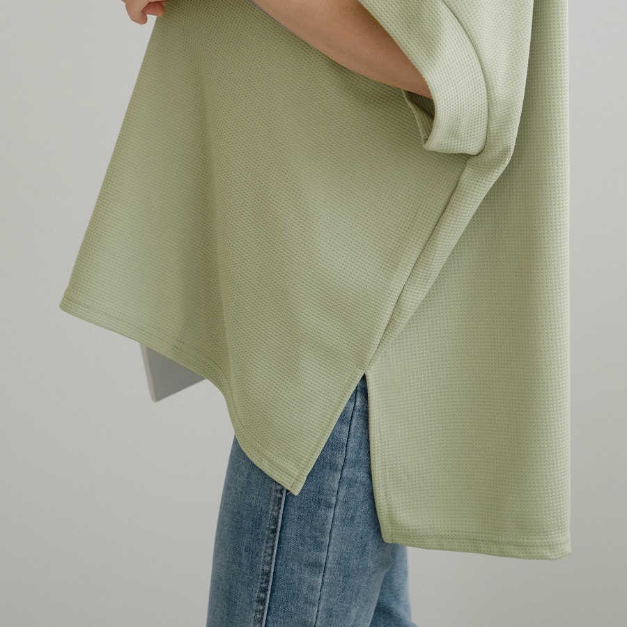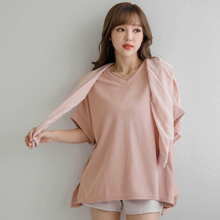 MIUSTAR 正韓-V領鬆餅格雙側開岔寬版素面上衣(共3色)0823 預購【NL2189RE】粉F|綠F|紫FT-shirtsMIUSTAR
