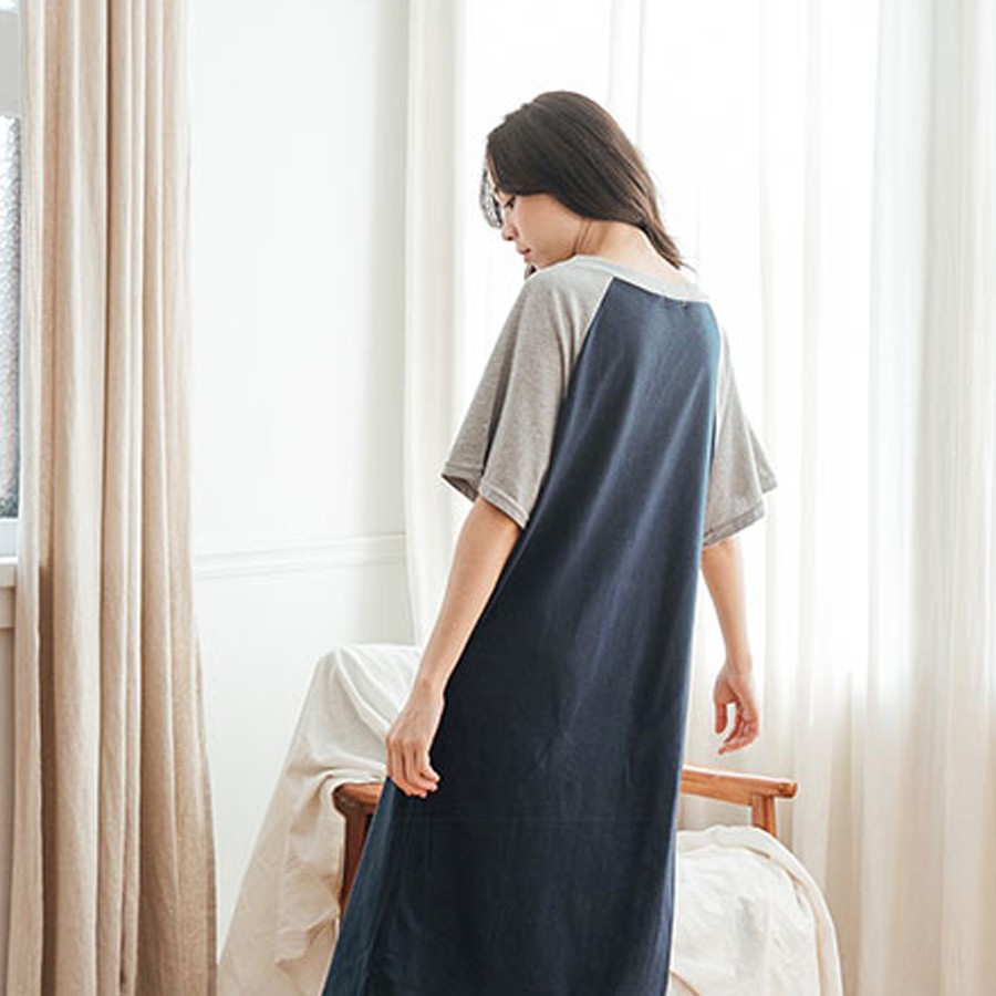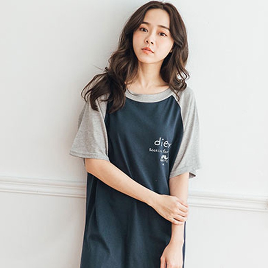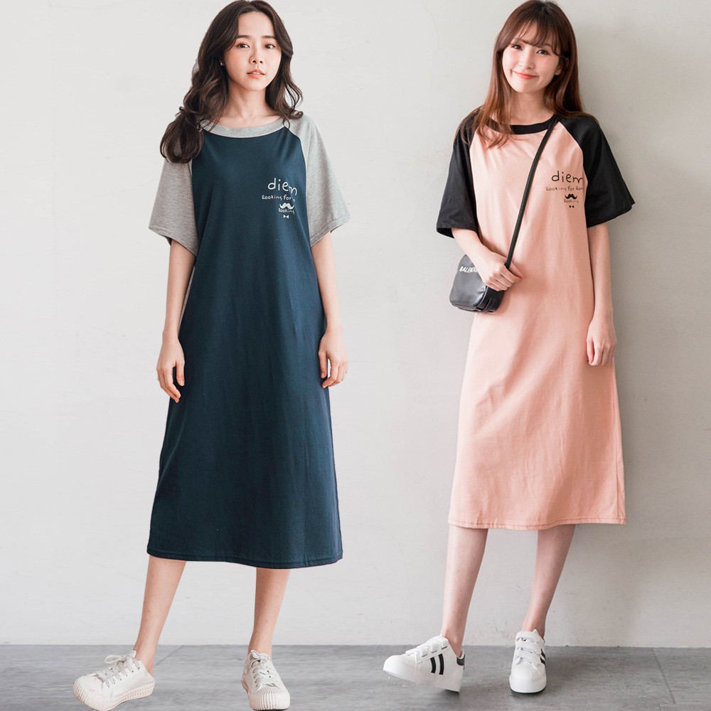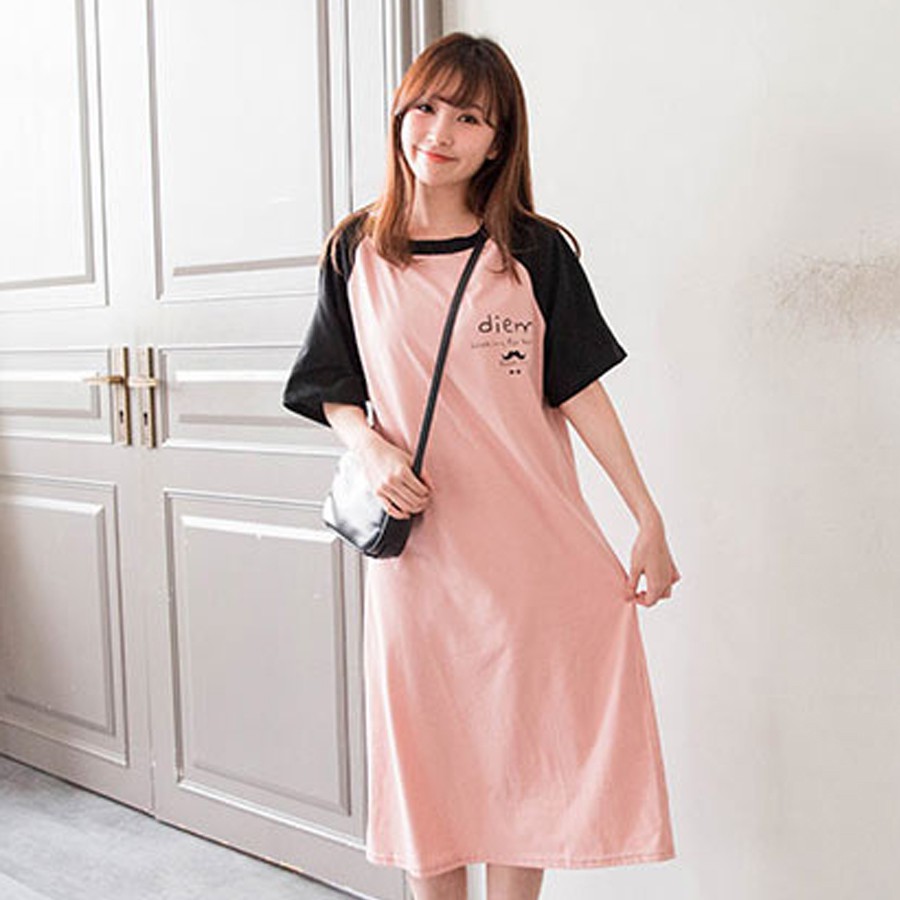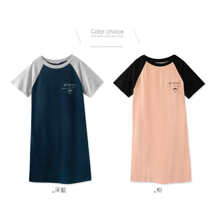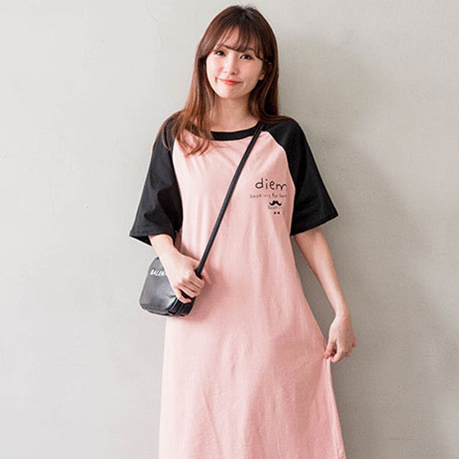 MIUSTAR 正韓 diem鬍子印字袖配色棉質洋裝(共2色)0503 預購【NL1423RE】深藍F|粉FMIUSTAR