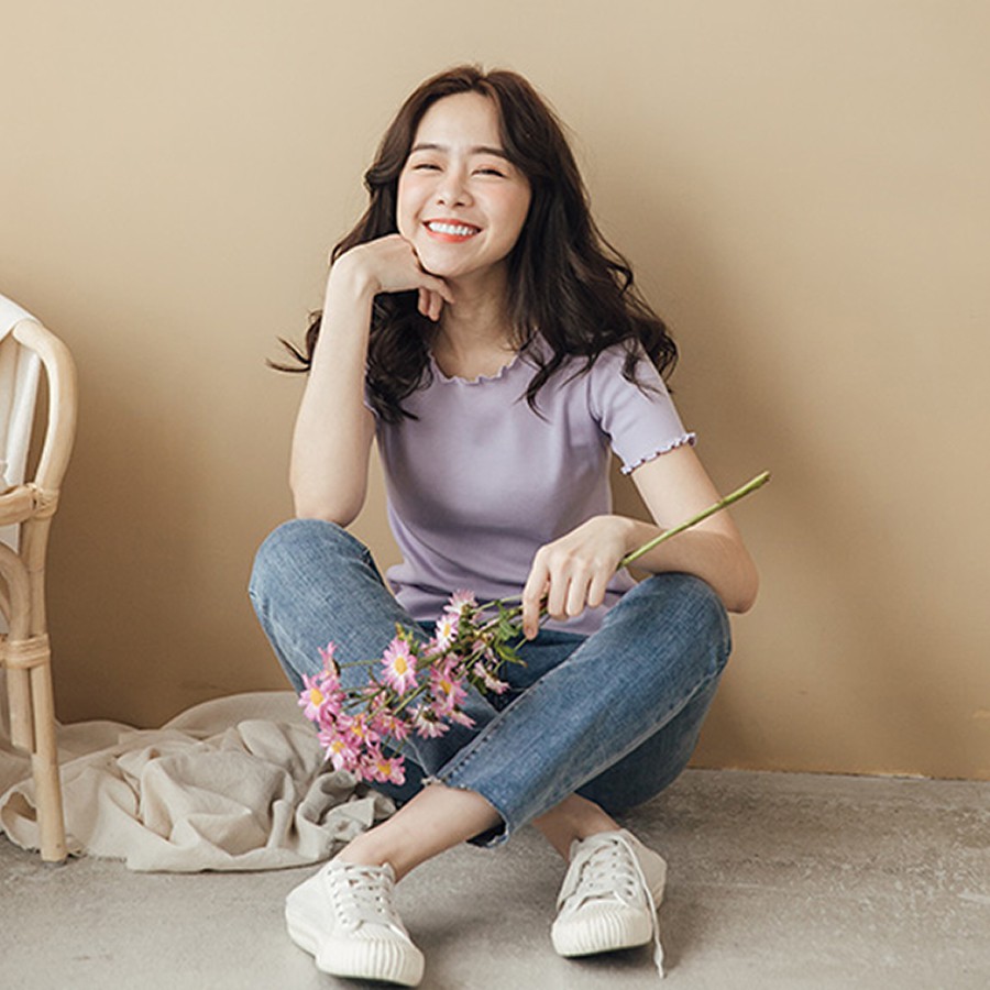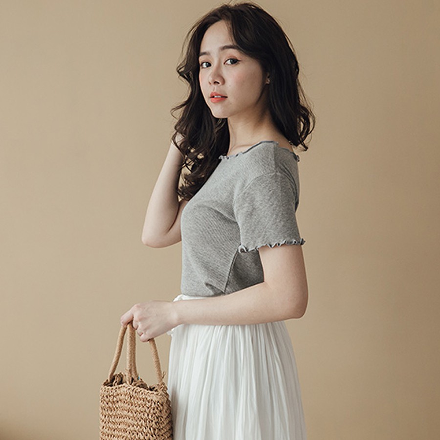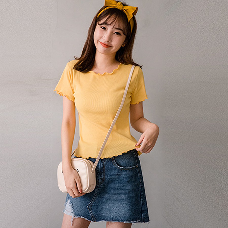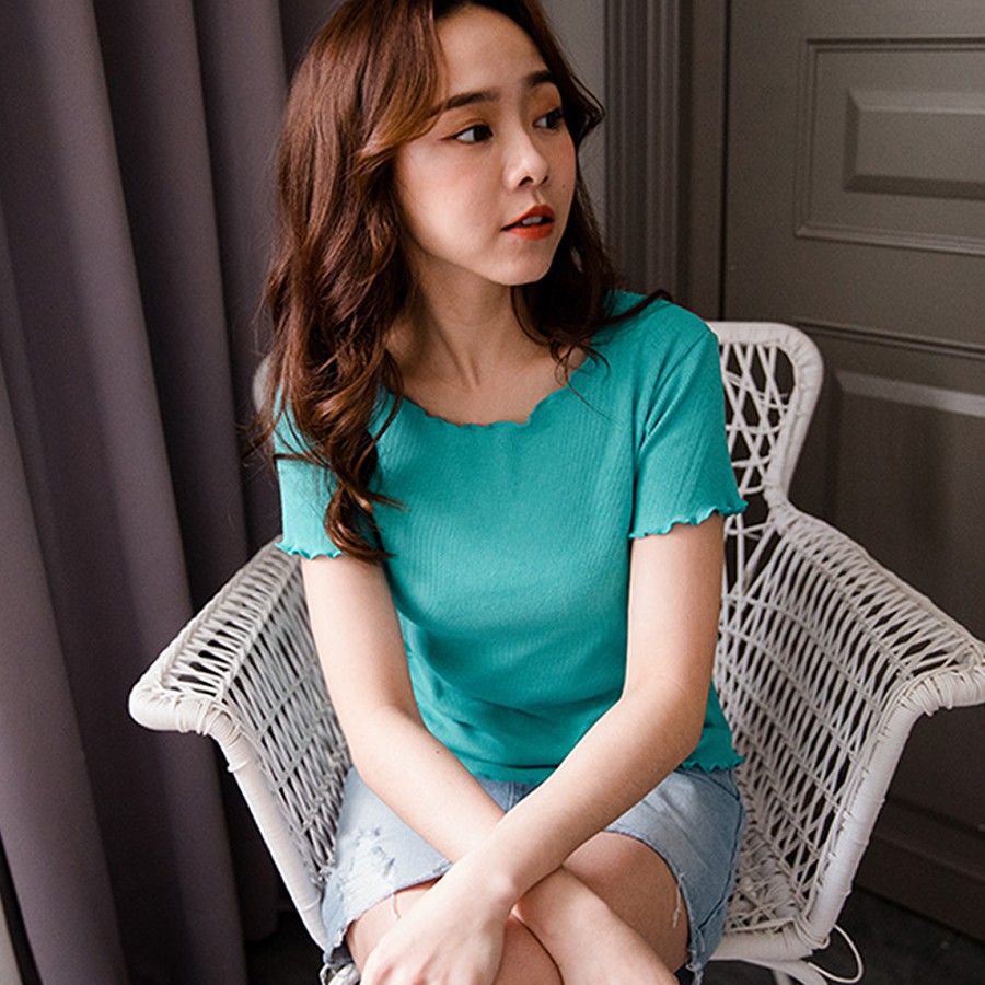 MIUSTAR 正韓 多色彈性羅紋拷克捲邊上衣(共9色)0503 預購【NL1418RE】白F|甜桃粉F|翠綠F|灰F|豆沙粉F|芥黃F|亮寶藍F|淺紫F|黑FT-shirtsMIUSTAR