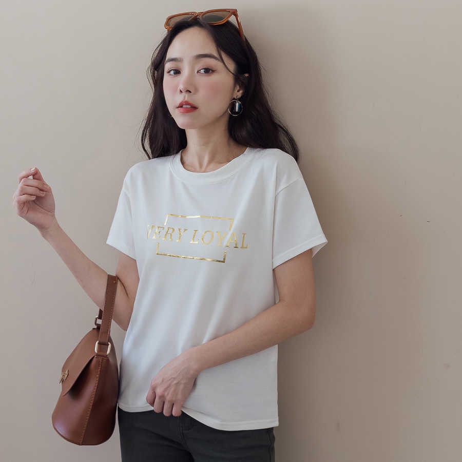 MIUSTAR 正韓.燙金英字舒適柔感棉質上衣(共2色)0627 預購【NL4589RE】白F|黑FT-shirtsMIUSTAR
