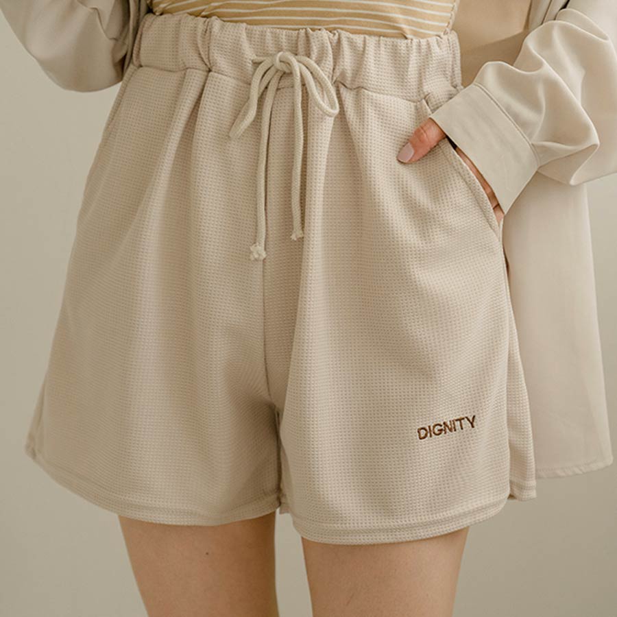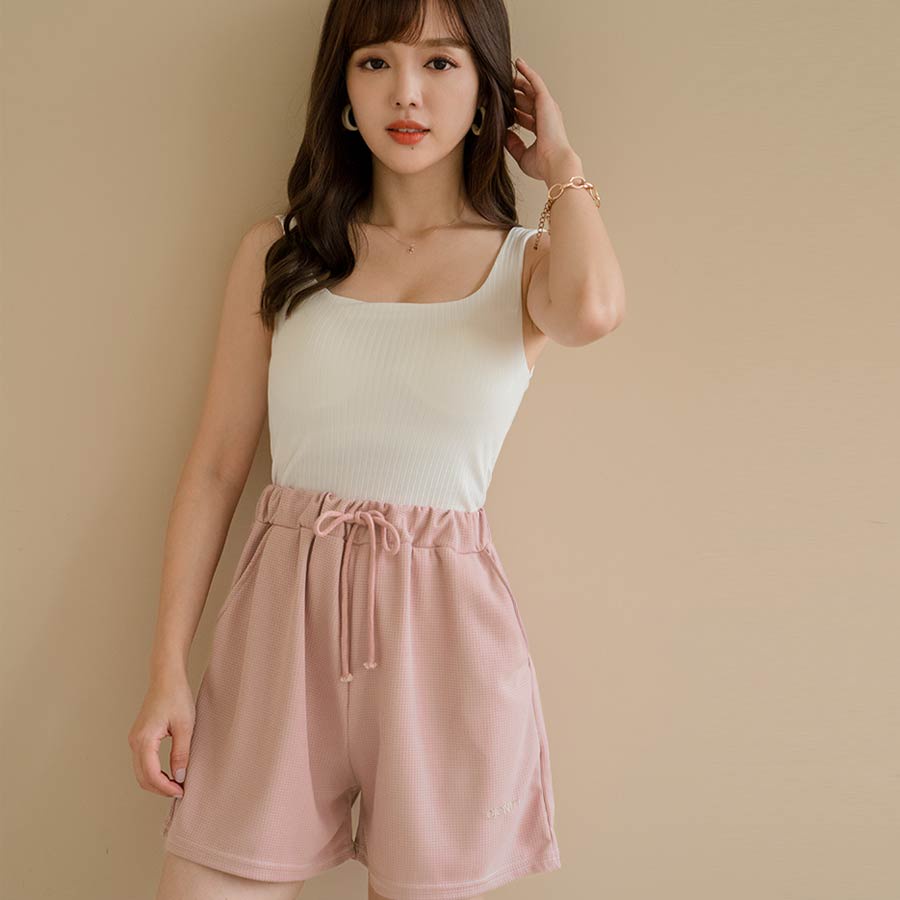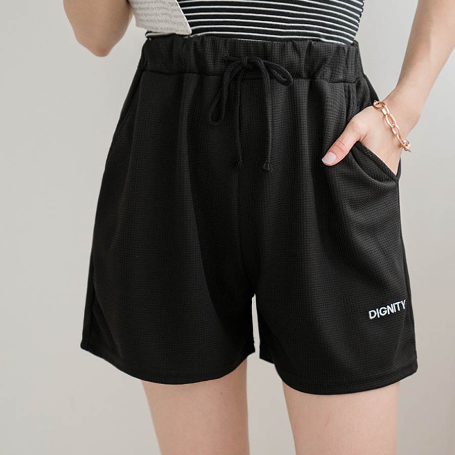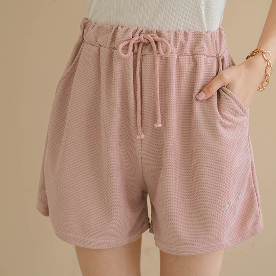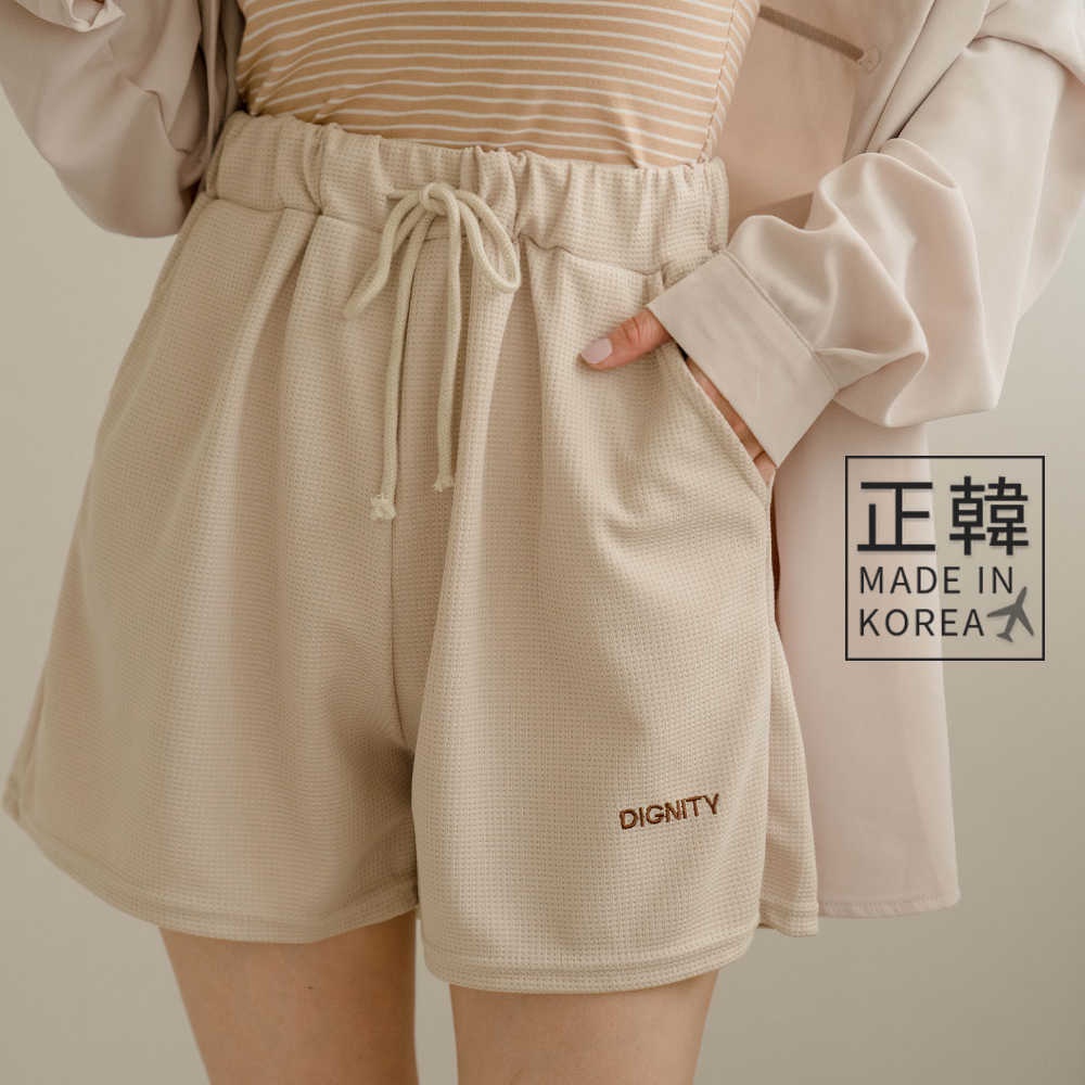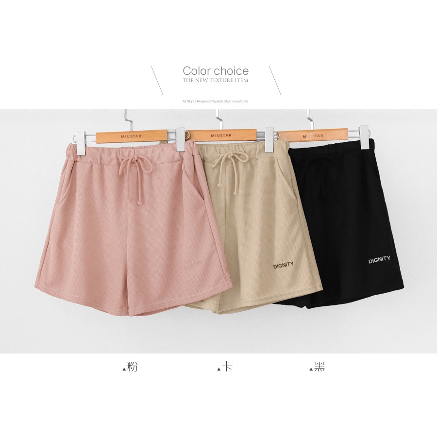 MIUSTAR 正韓.鬆餅格英字刺繡抽繩短褲(共3色)0509 預購【NL4016RE】卡F|粉F|黑FShortsMIUSTAR