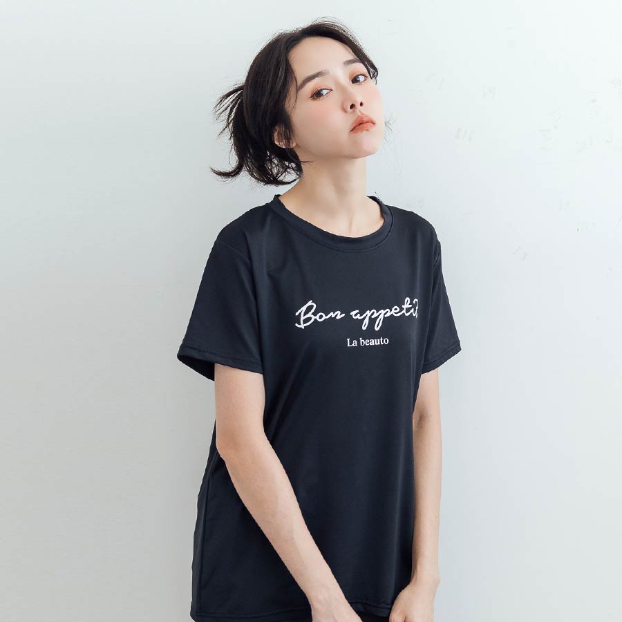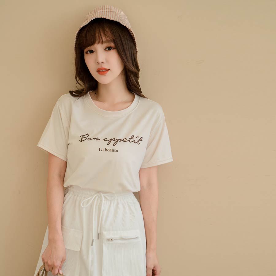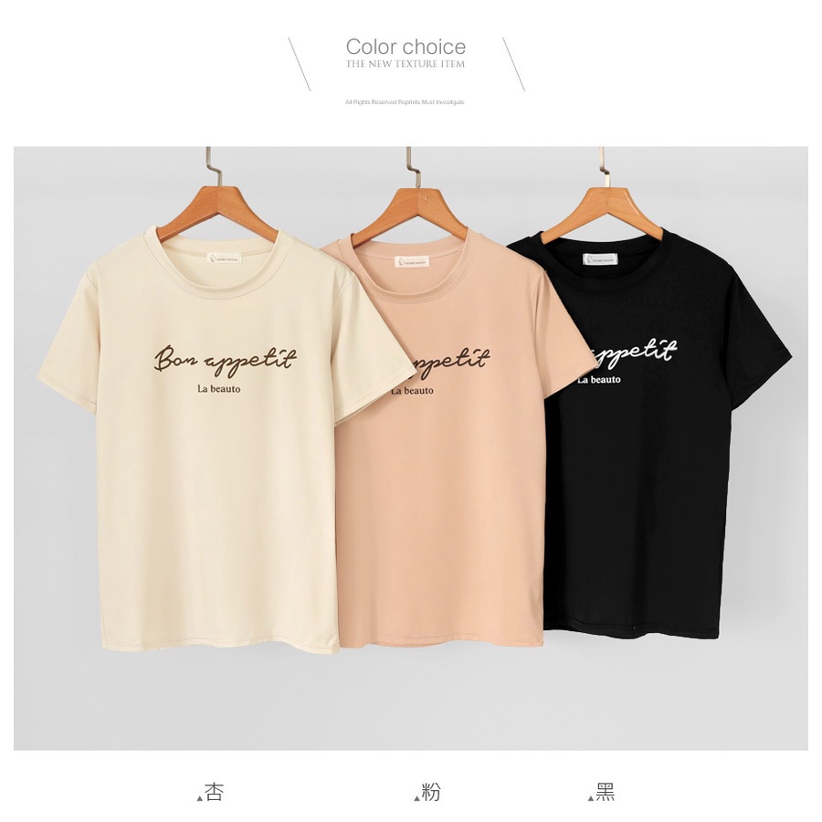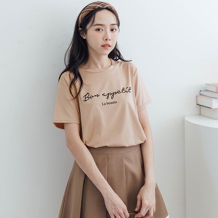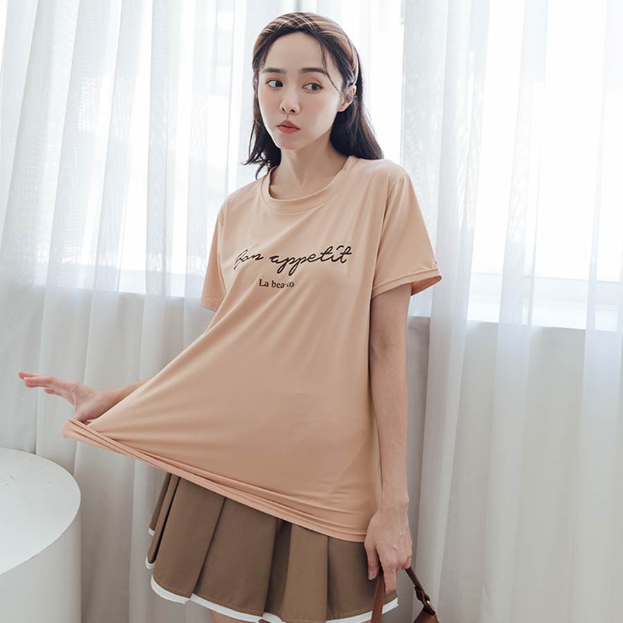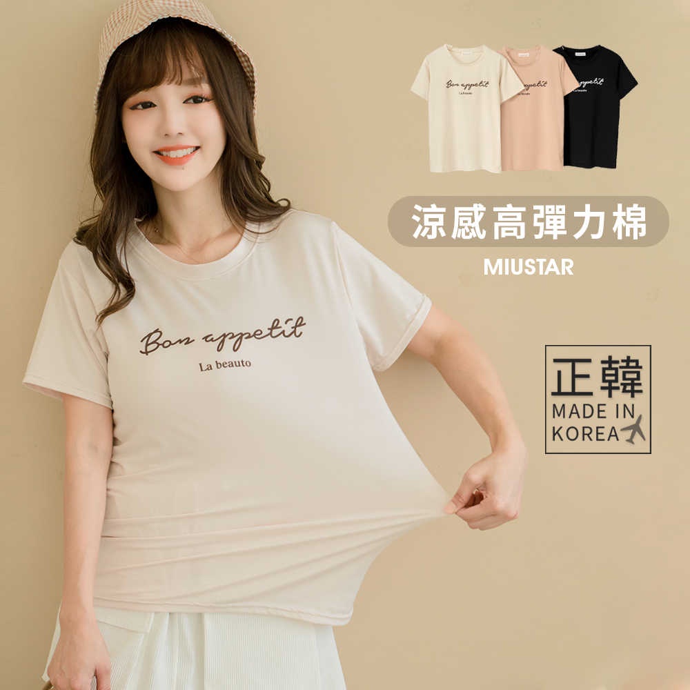 MIUSTAR 正韓.涼感撞色英字棉質上衣(共3色)0711 預購【NL4710RE】杏F|粉F|黑FT-shirtsMIUSTAR