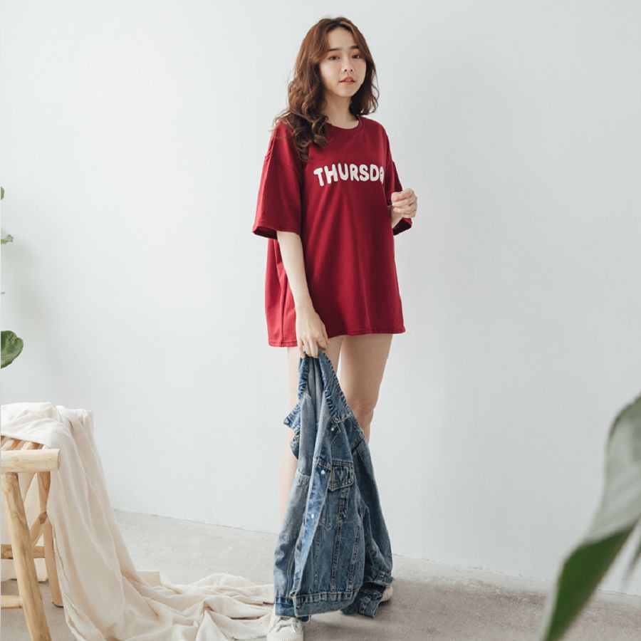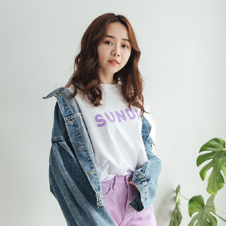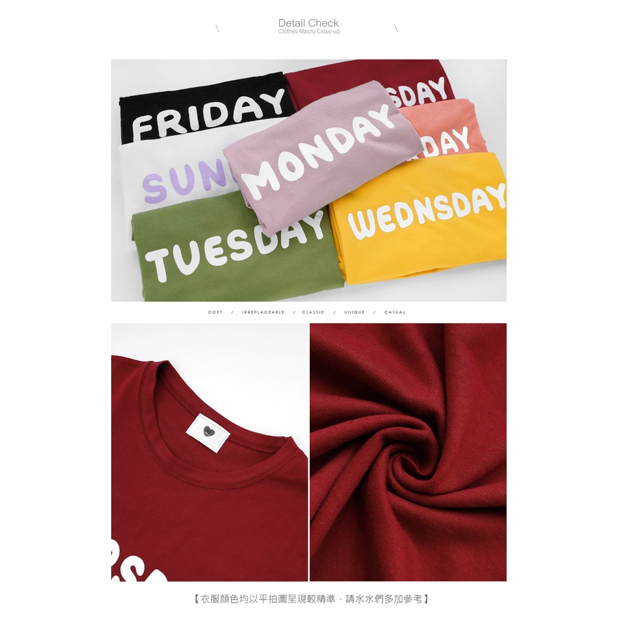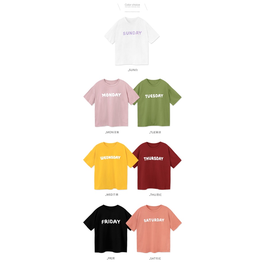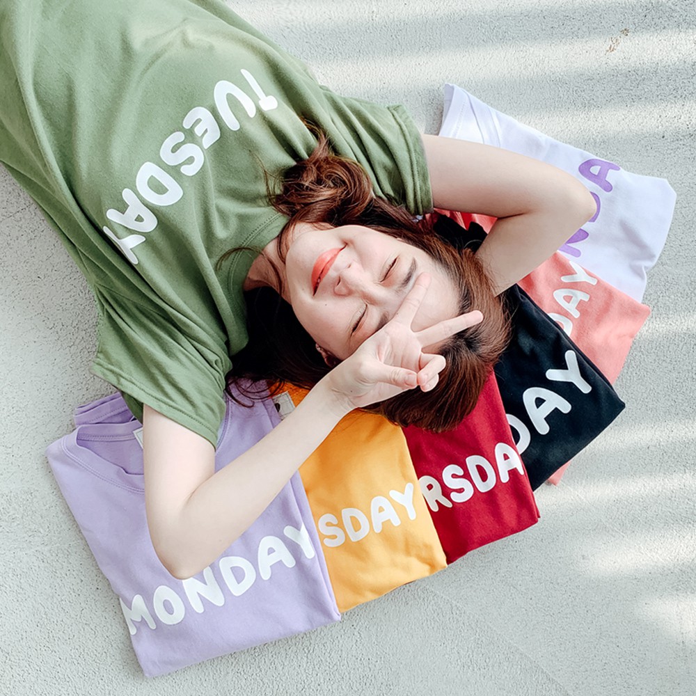 MIUSTAR 正韓 一星期七天英文膠印棉質上衣(共7色)0125 預購 【NL0195RE】SAT玫紅F|MON淺紫F|WED芥黃F|TUE軍綠F|FRI黑F|SUN白F|THU酒紅FT-shirtsMIUSTAR