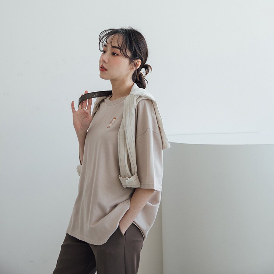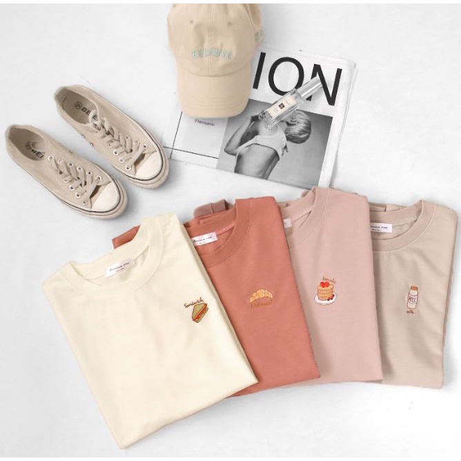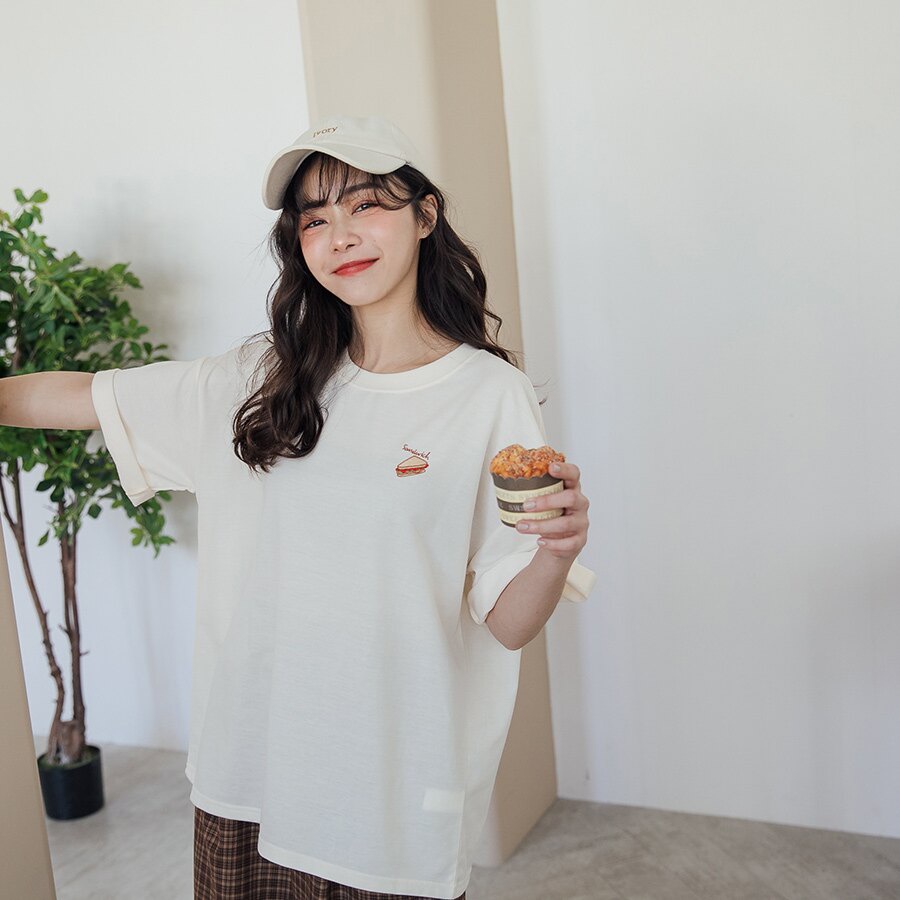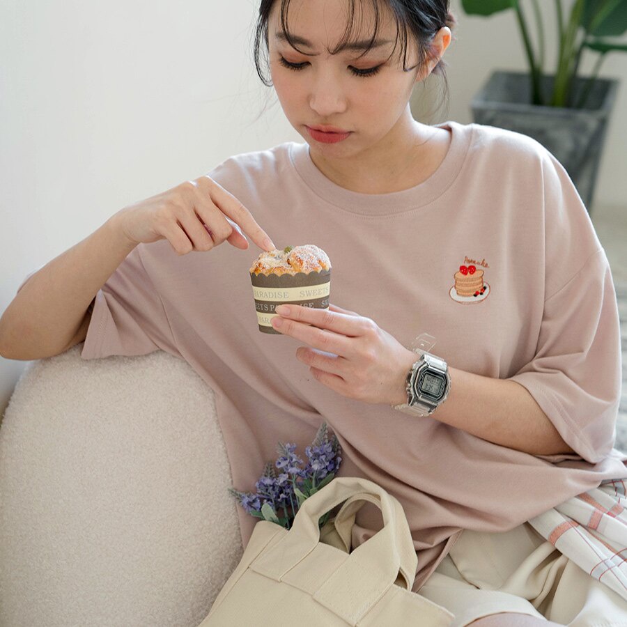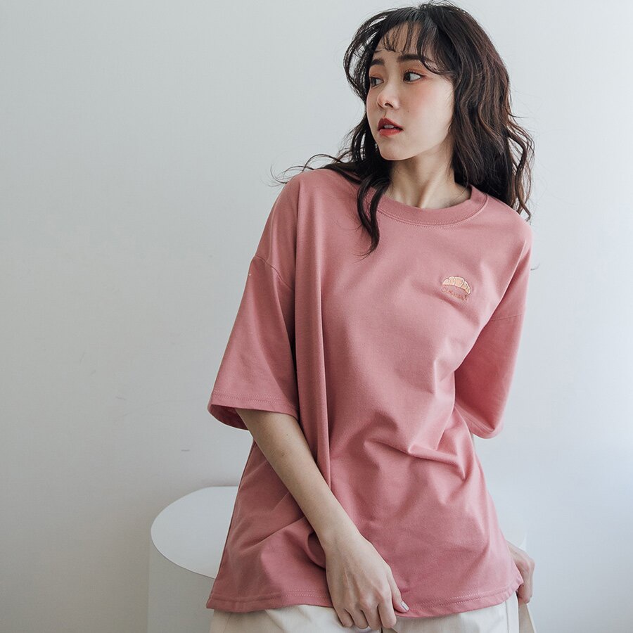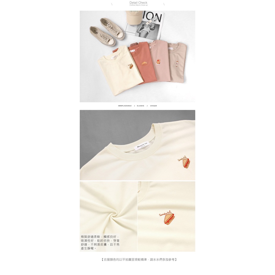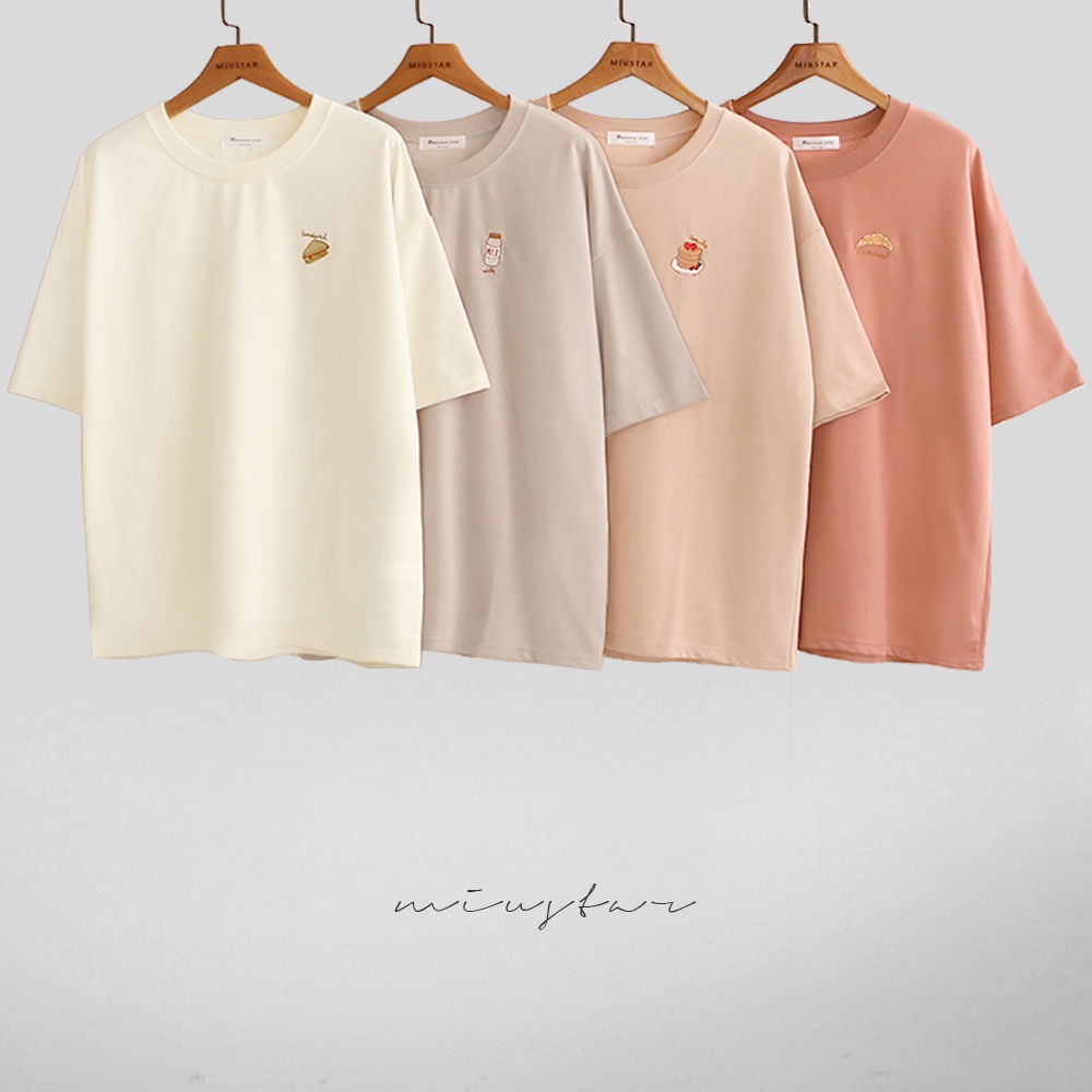 MIUSTAR 下午茶點心刺繡寬版棉質上衣(共4色)0322 預購【NL0518RE】可頌玫粉F|牛奶灰杏F|三明治杏F|鬆餅藕粉FT-shirtsMIUSTAR