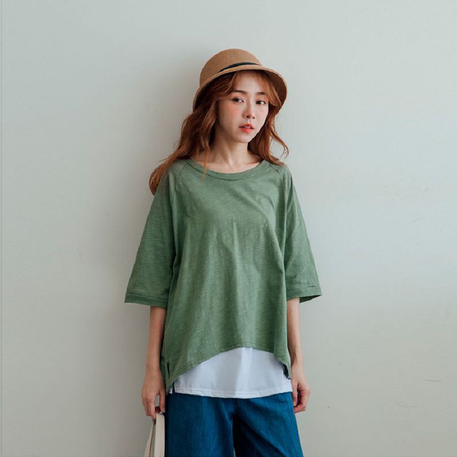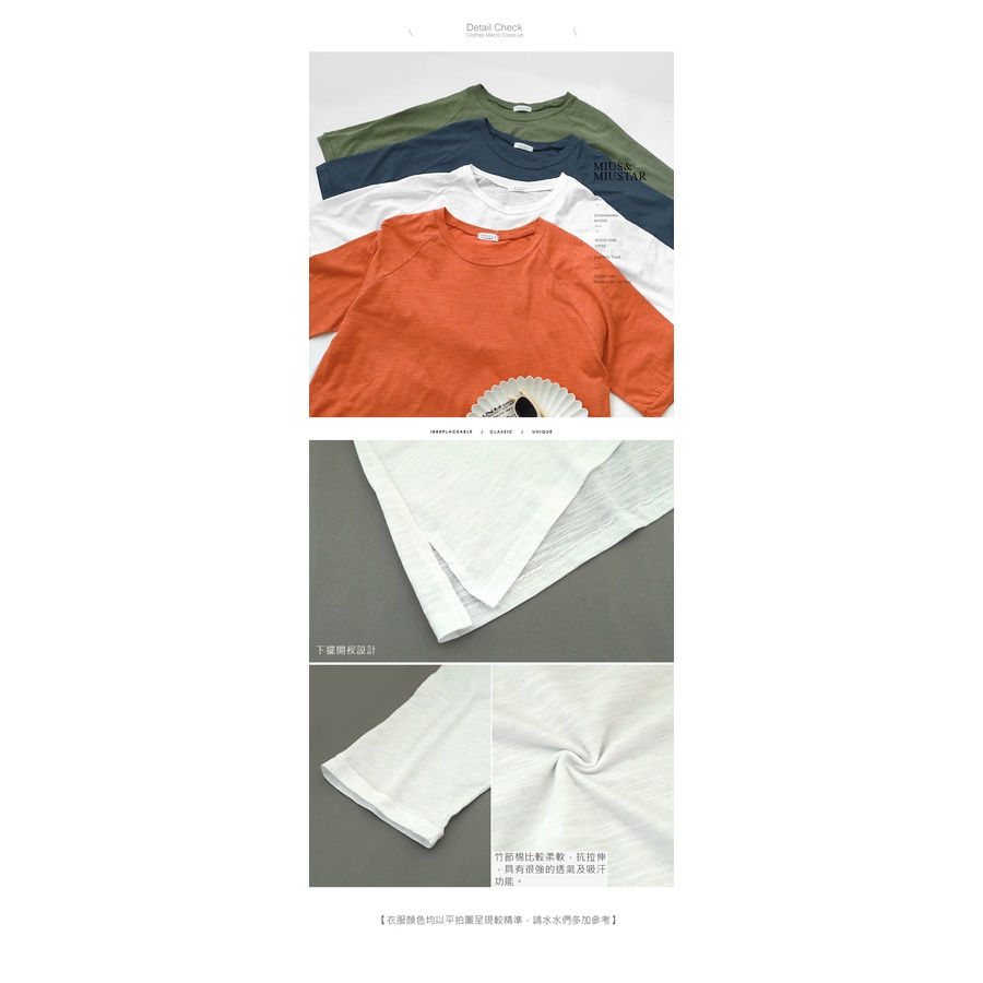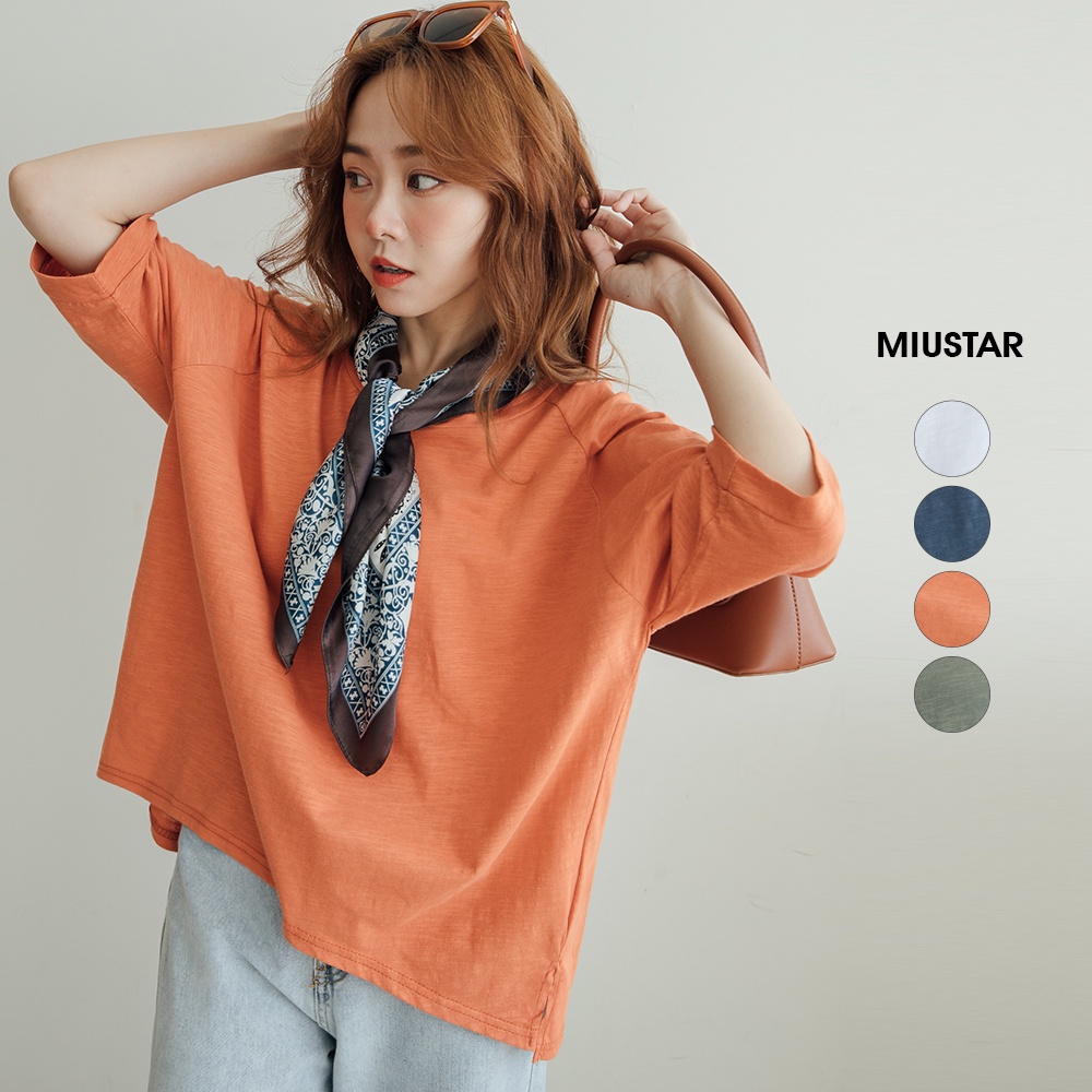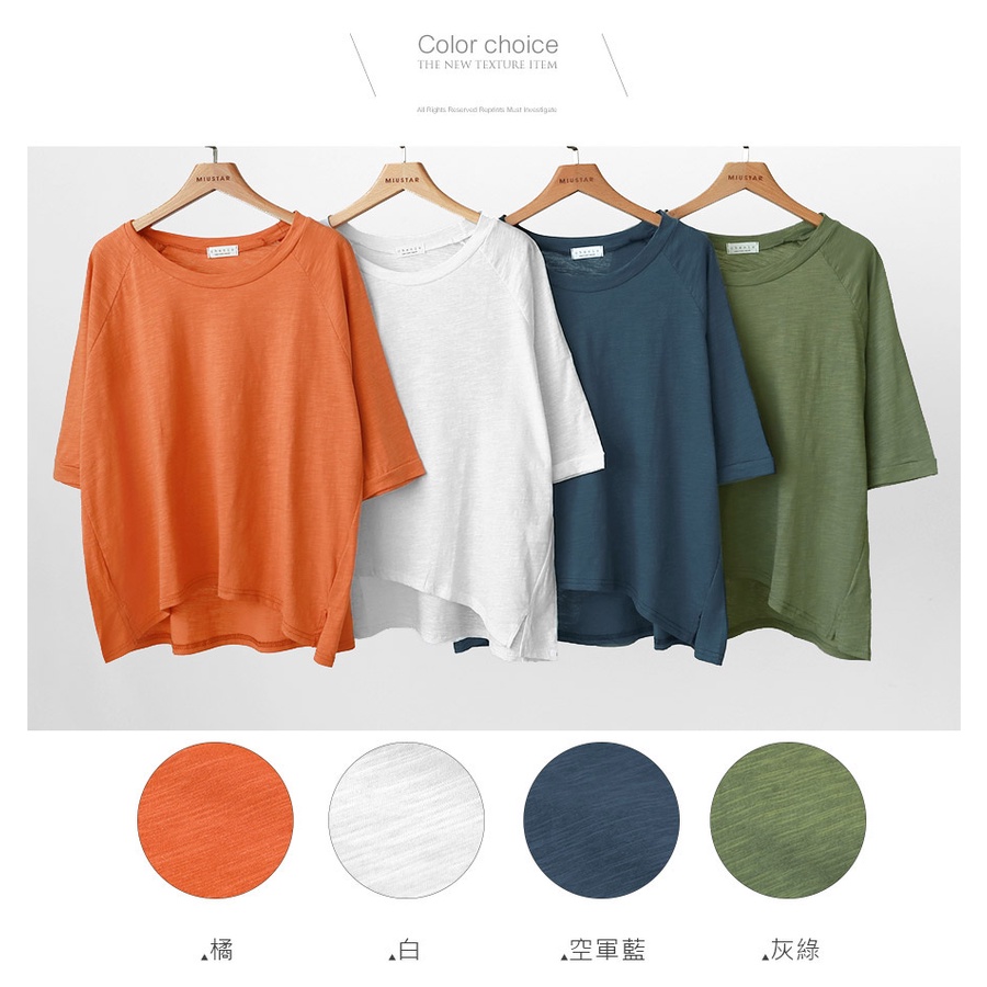 MIUSTAR 正韓 落肩寬袖素面竹節棉上衣(共4色0322 預購【NL0819RE】白F|橘F|灰綠F|空軍藍FT-shirtsMIUSTAR
