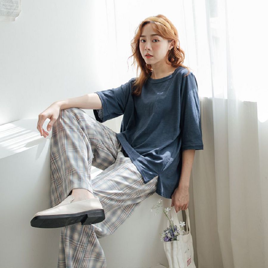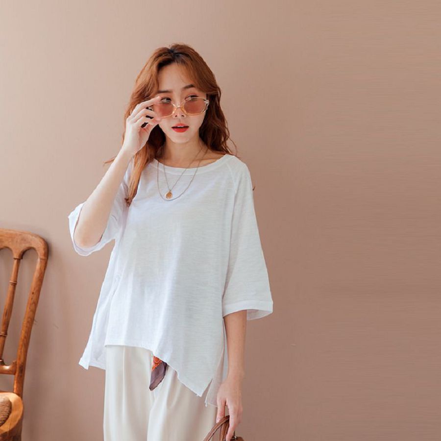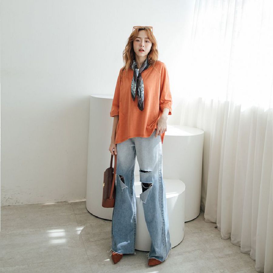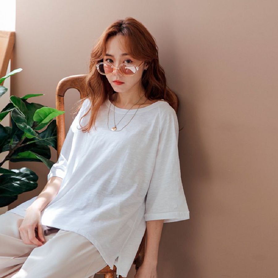 MIUSTAR 正韓 落肩寬袖素面竹節棉上衣(共4色0322 預購【NL0819RE】白F|橘F|灰綠F|空軍藍FT-shirtsMIUSTAR