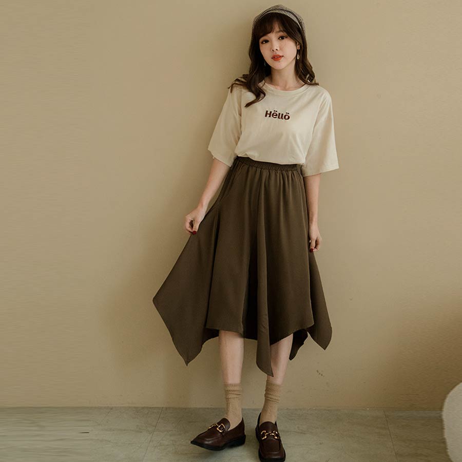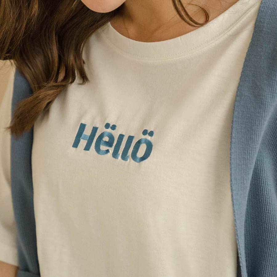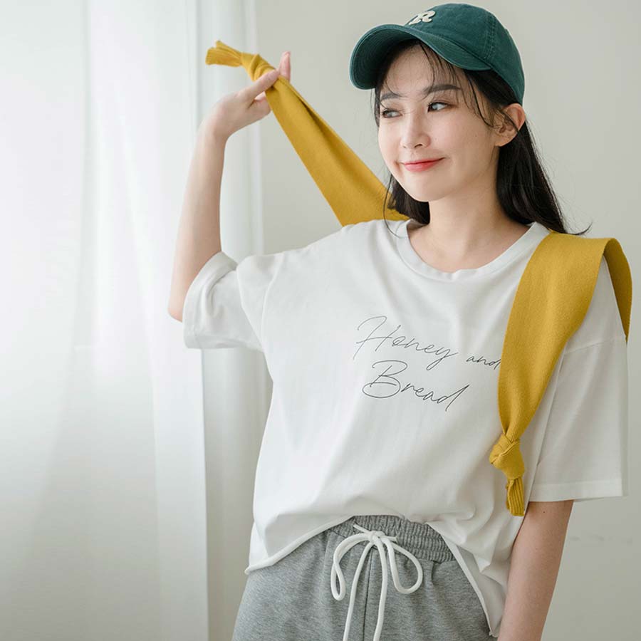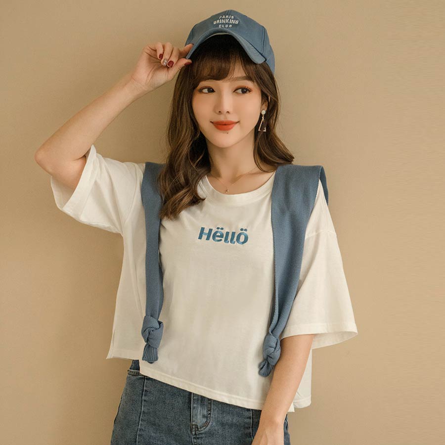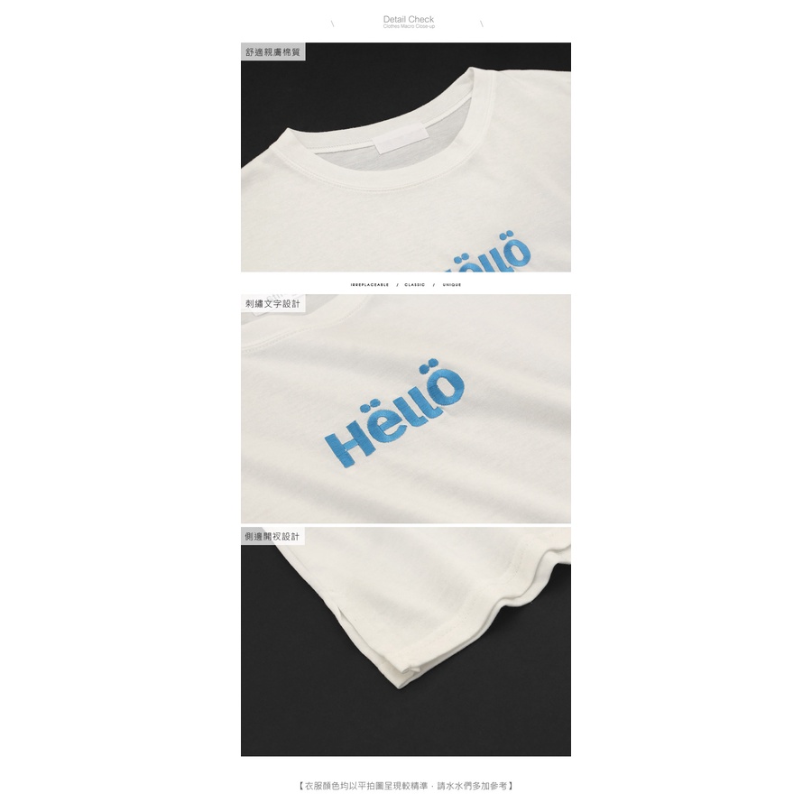 MIUSTAR 正韓.側開岔HELLO可愛刺繡寬版上衣(共3色)0227 預購【NL3464RE】白F|杏F|粉FT-shirtsMIUSTAR