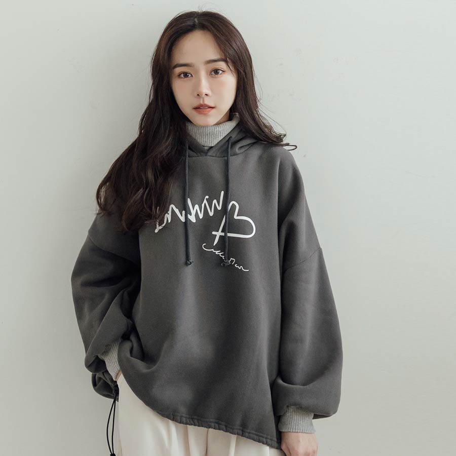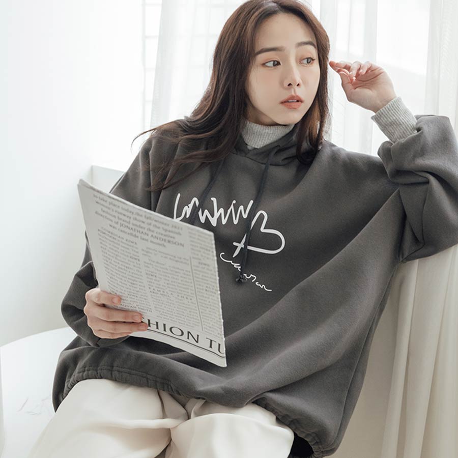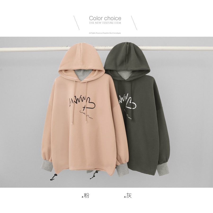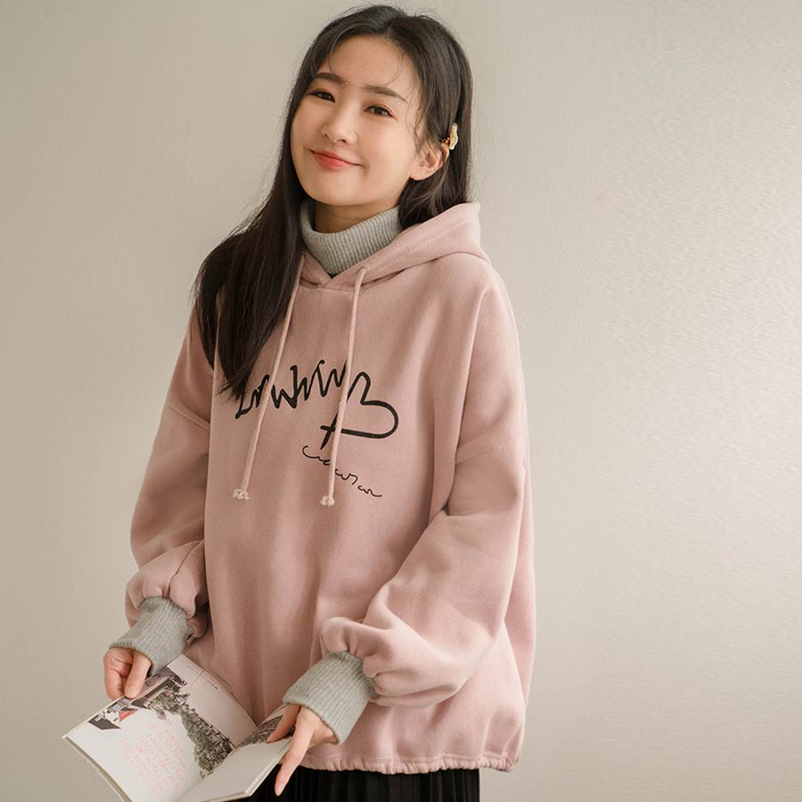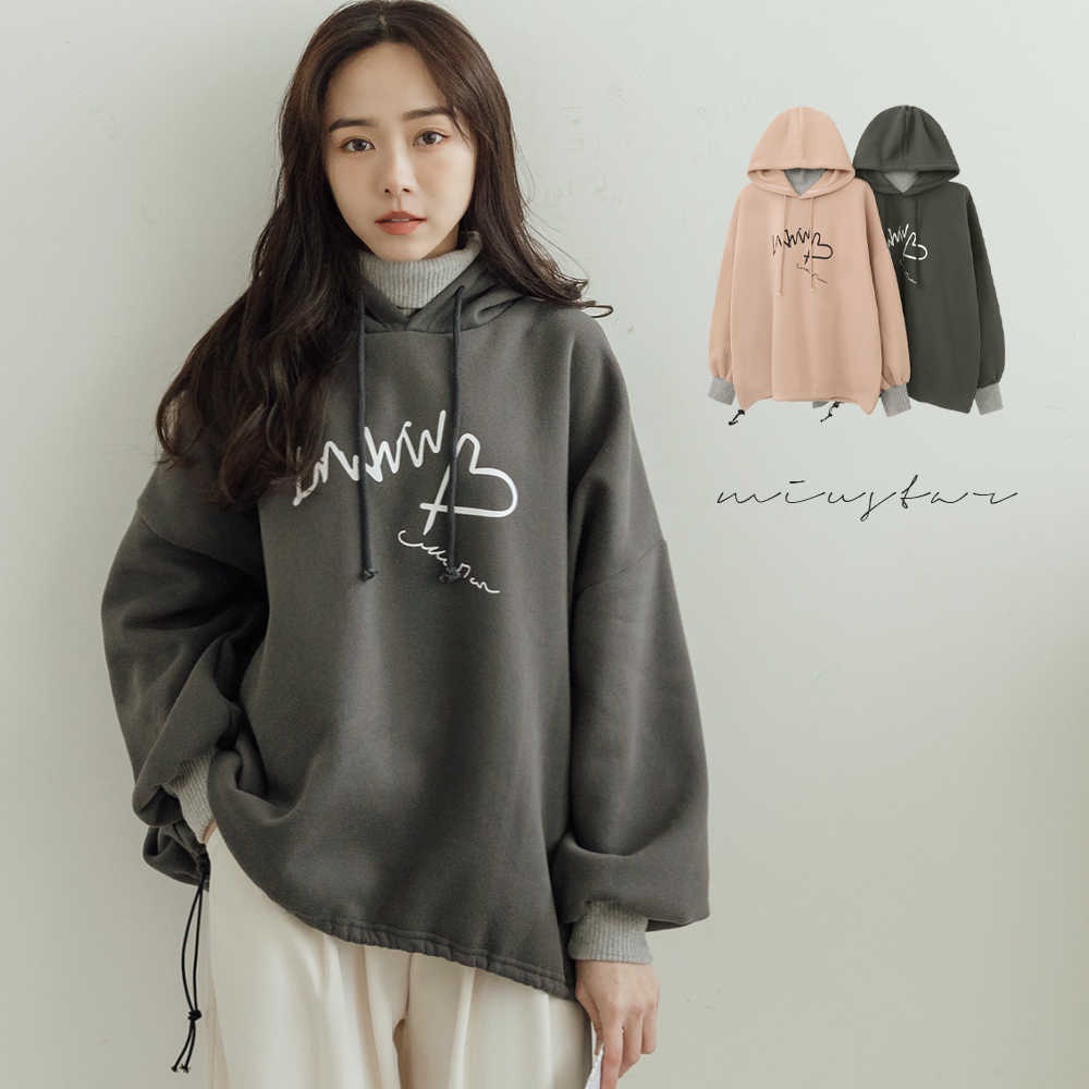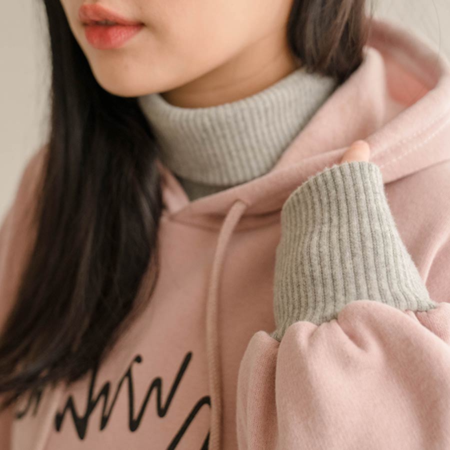MIUSTAR正韓.愛心草寫英字羅紋高領連帽上衣(共2色)0207預購【NL3207RE】灰F|粉FHoodiesMIUSTAR