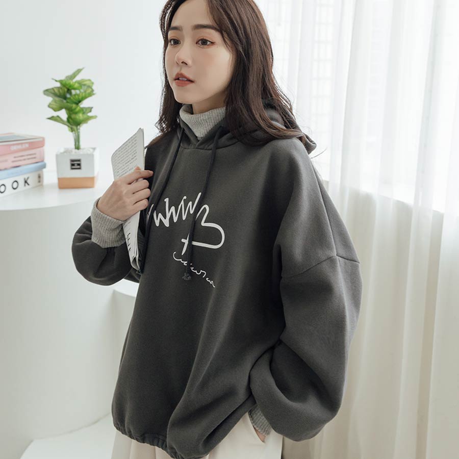 MIUSTAR正韓.愛心草寫英字羅紋高領連帽上衣(共2色)0207預購【NL3207RE】