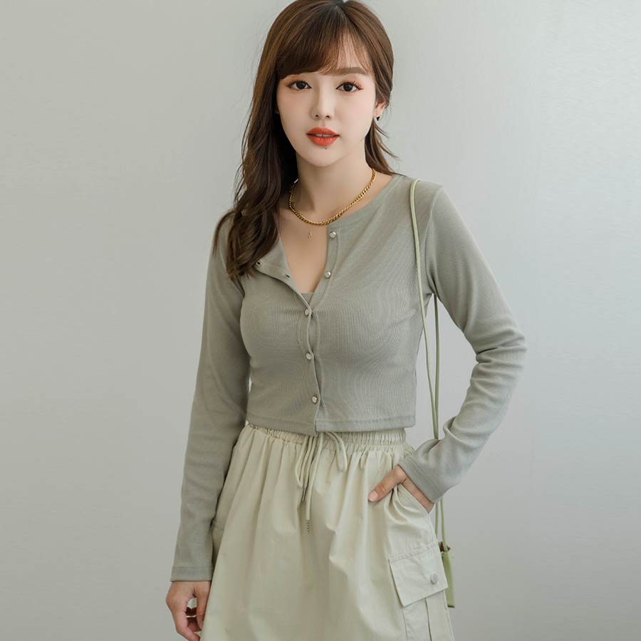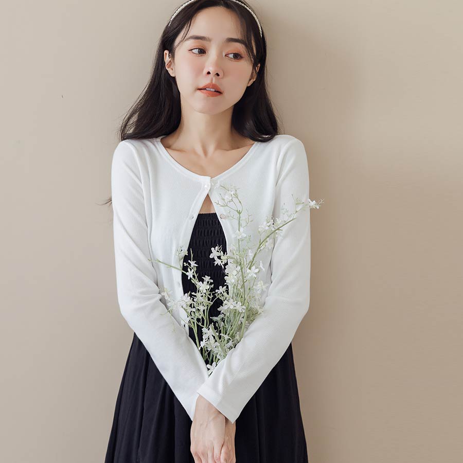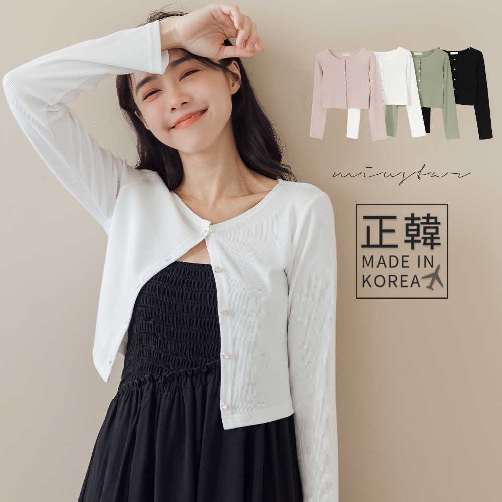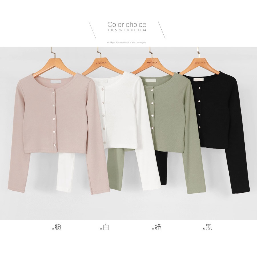 MIUSTAR 正韓.薄感螺紋圓釦長袖罩衫外套(共4色)0711 預購【NL4712RE】白F|粉F|黑F|綠FJacketsMIUSTAR
