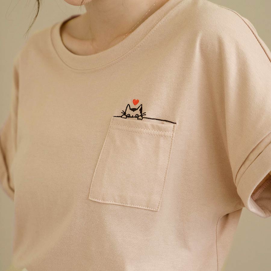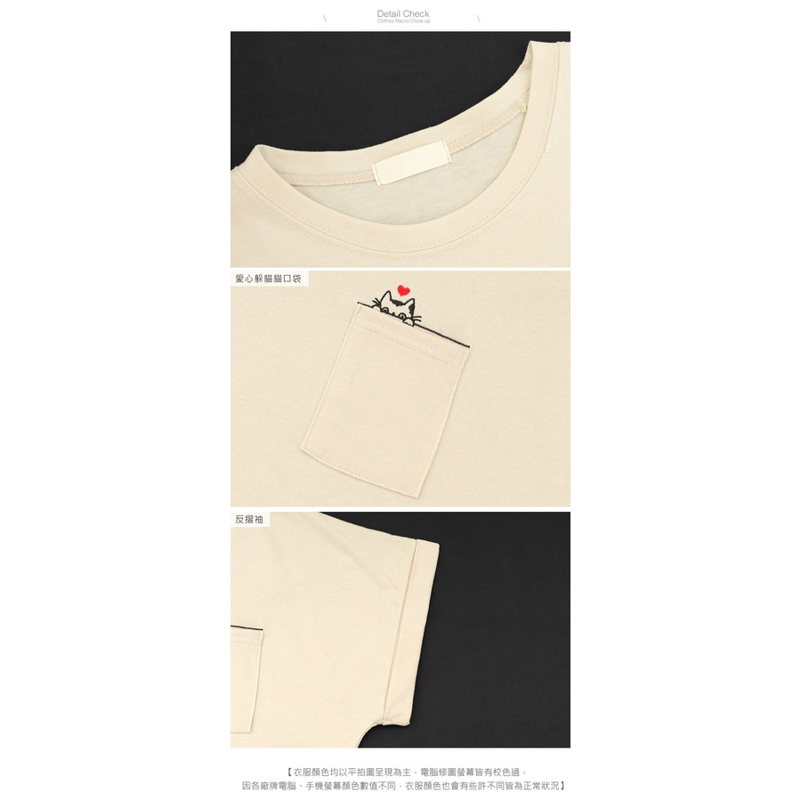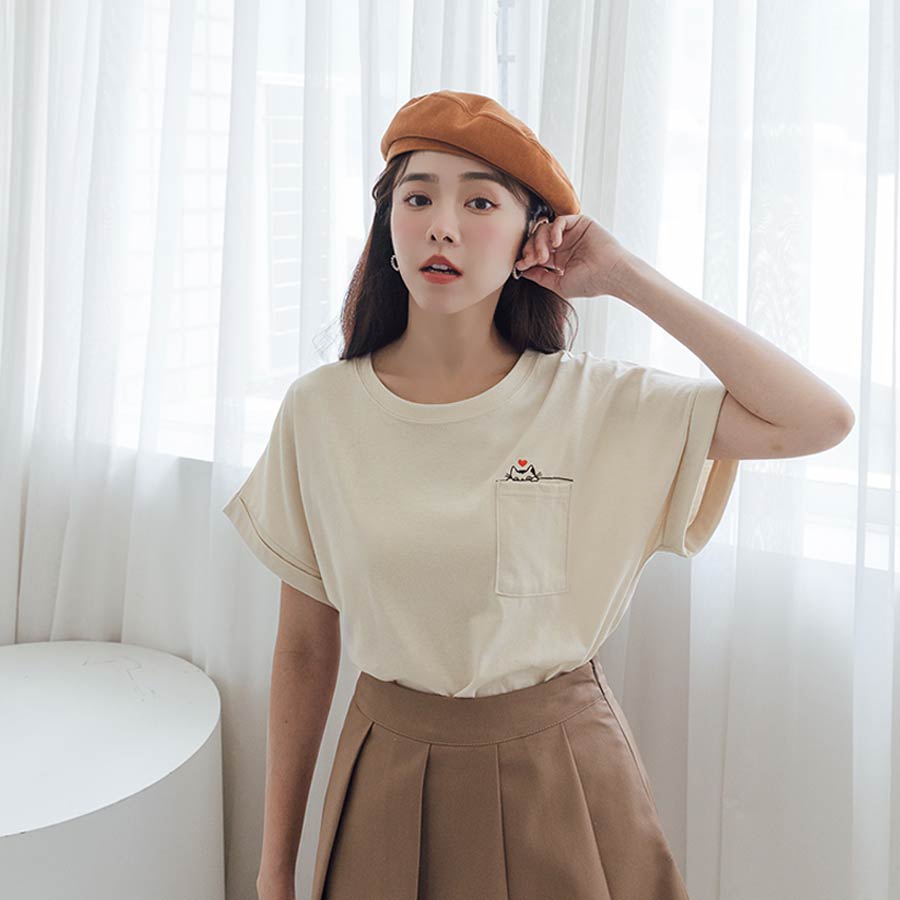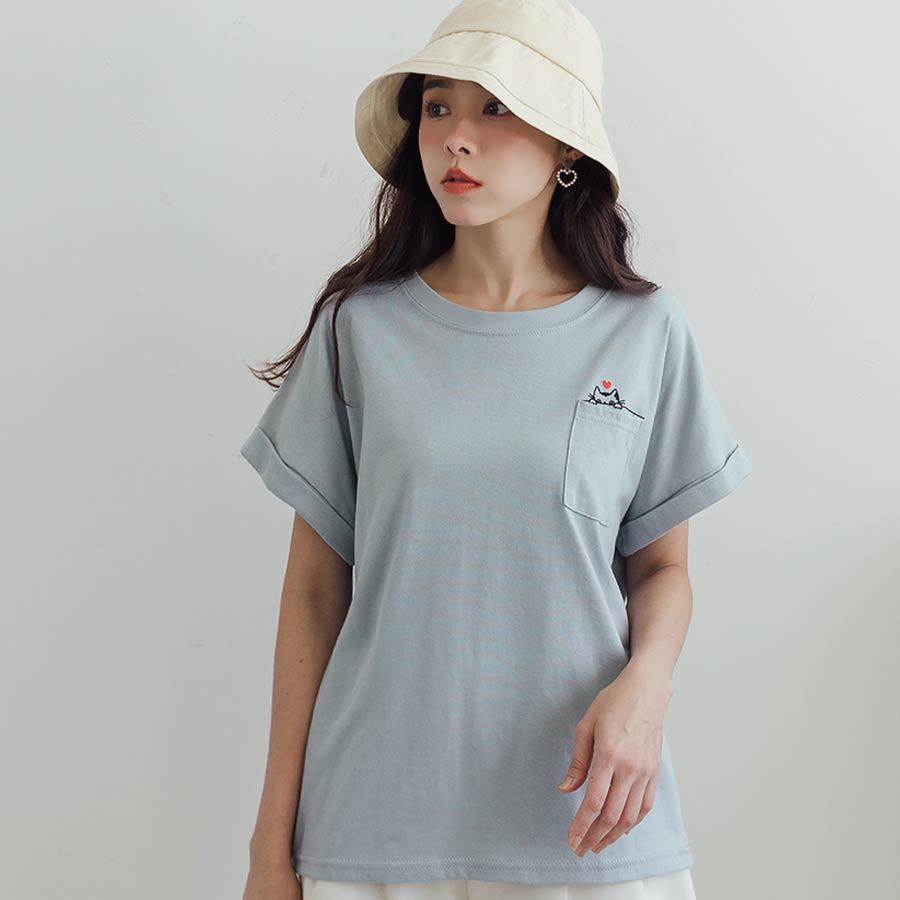 MIUSTAR 正韓.愛心躲貓貓口袋反摺袖棉質上衣(共3色)0627 預購【NL4587RE】粉F|藍F|杏FT-shirtsMIUSTAR