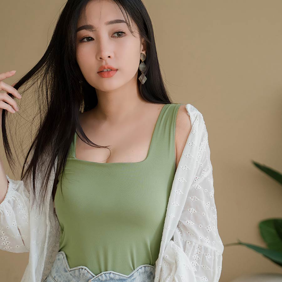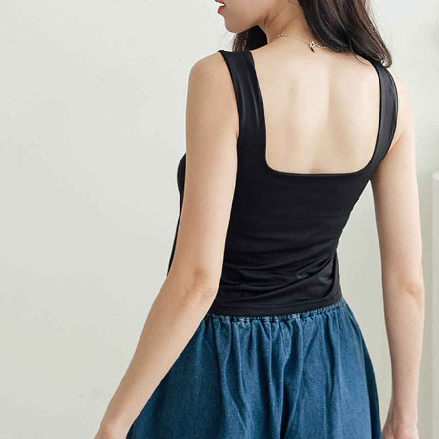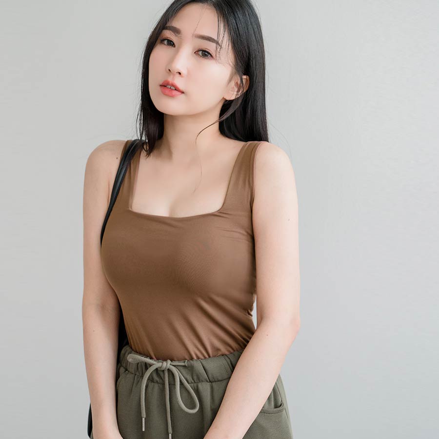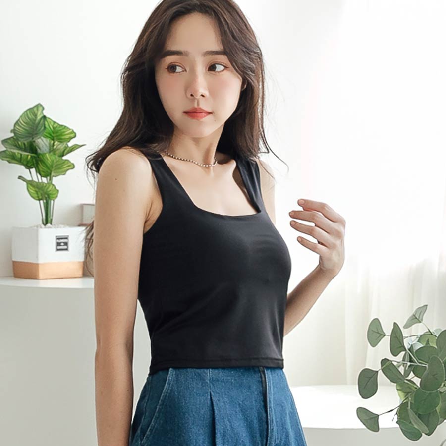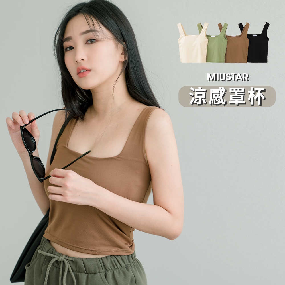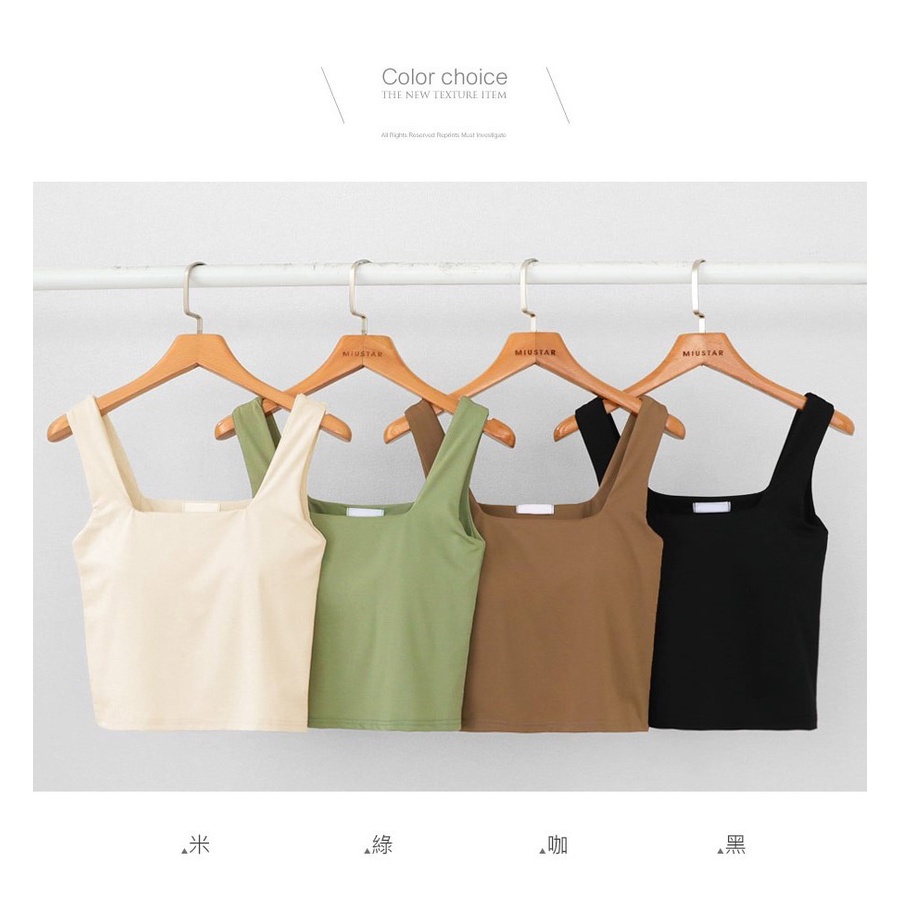 MIUSTAR 正韓.方領彈力透氣罩杯背心上衣(共4色)0718 預購【NL4880RE】米F|咖F|黑F|綠FT-shirtsMIUSTAR
