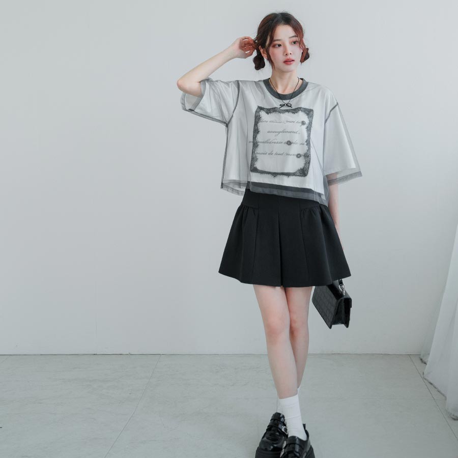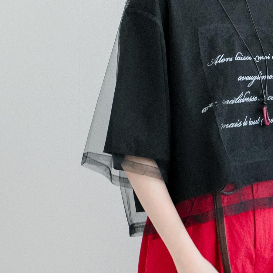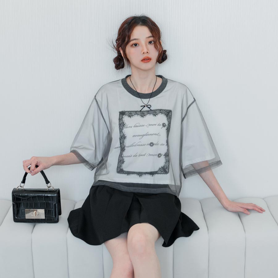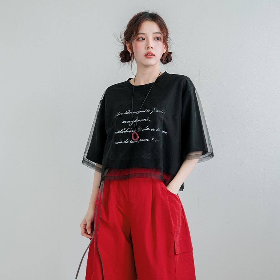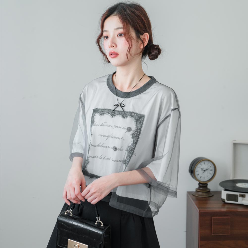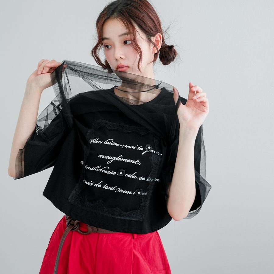 MIUSTAR 英文字亮片睫毛蕾絲網紗上衣(共2色)0715 預購【NR1553】黑F|白FT-shirtsMIUSTAR