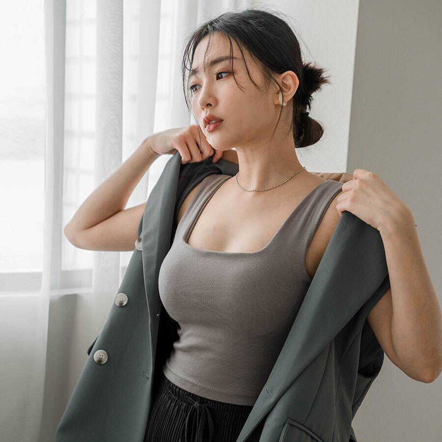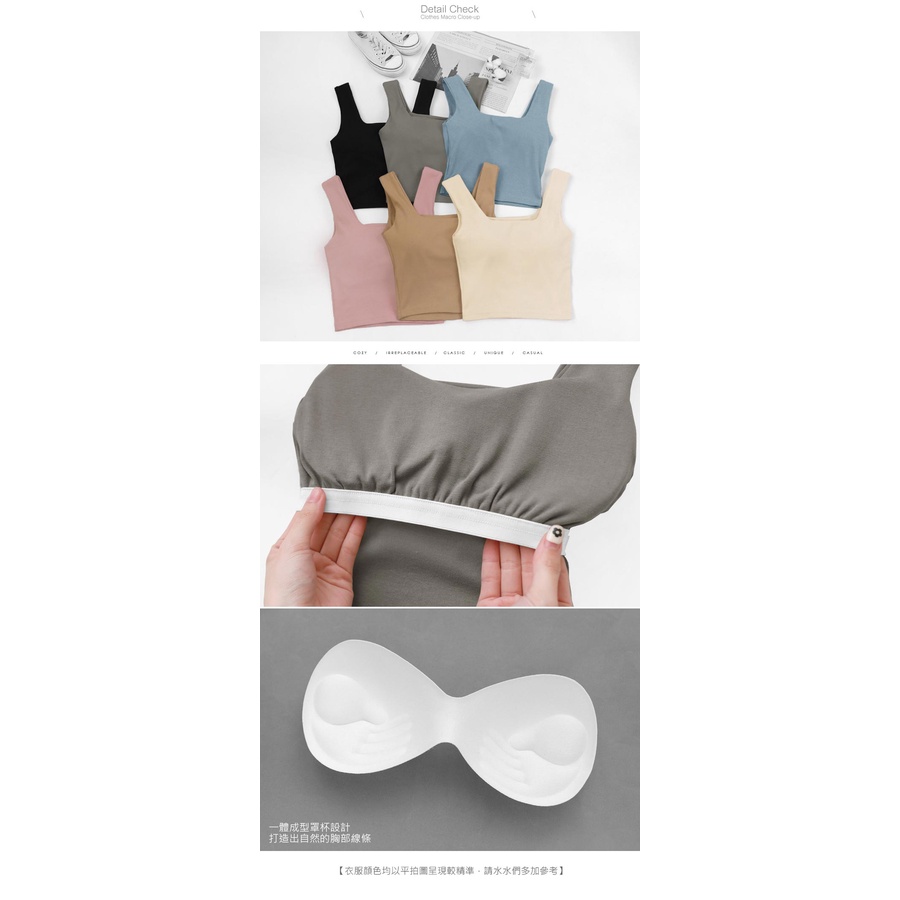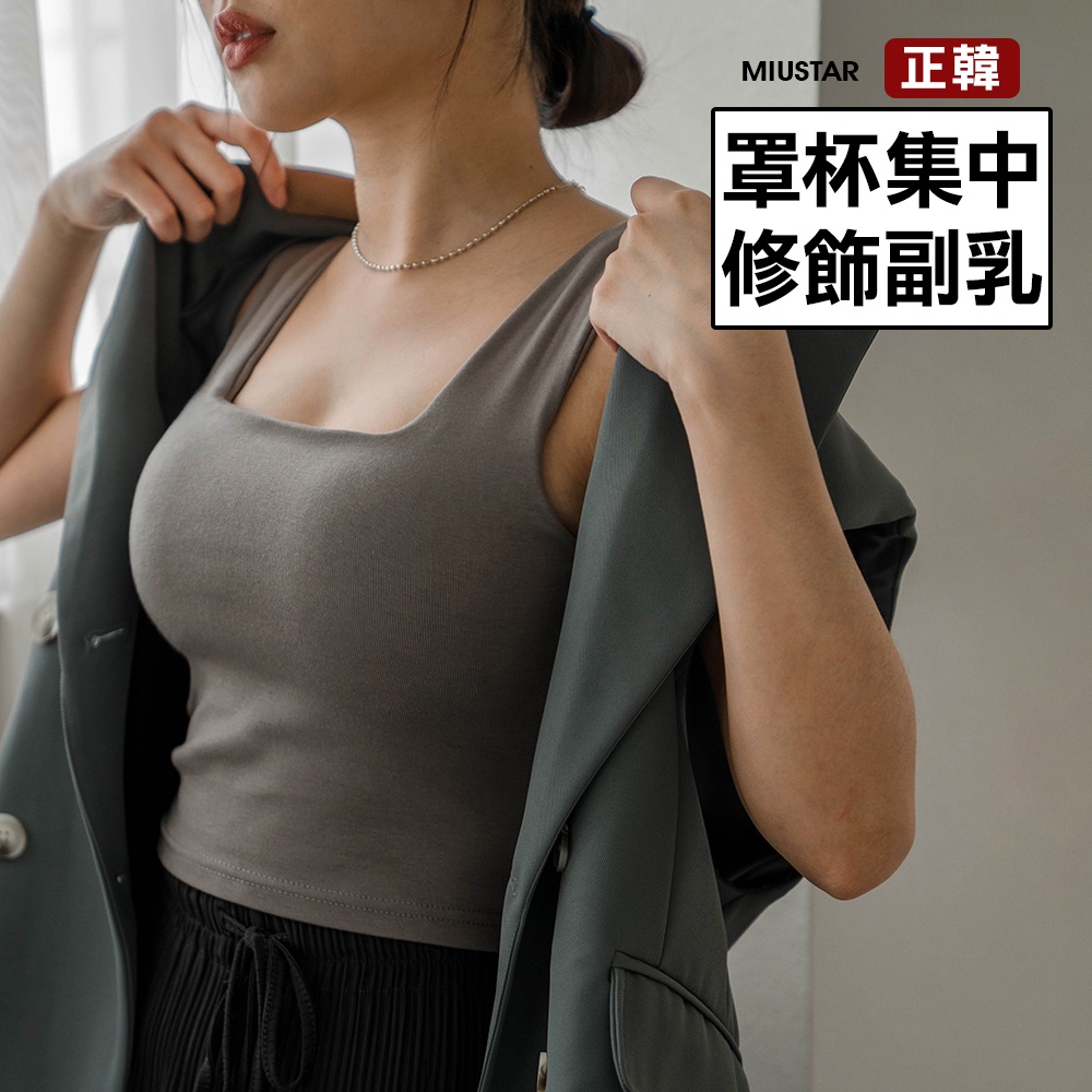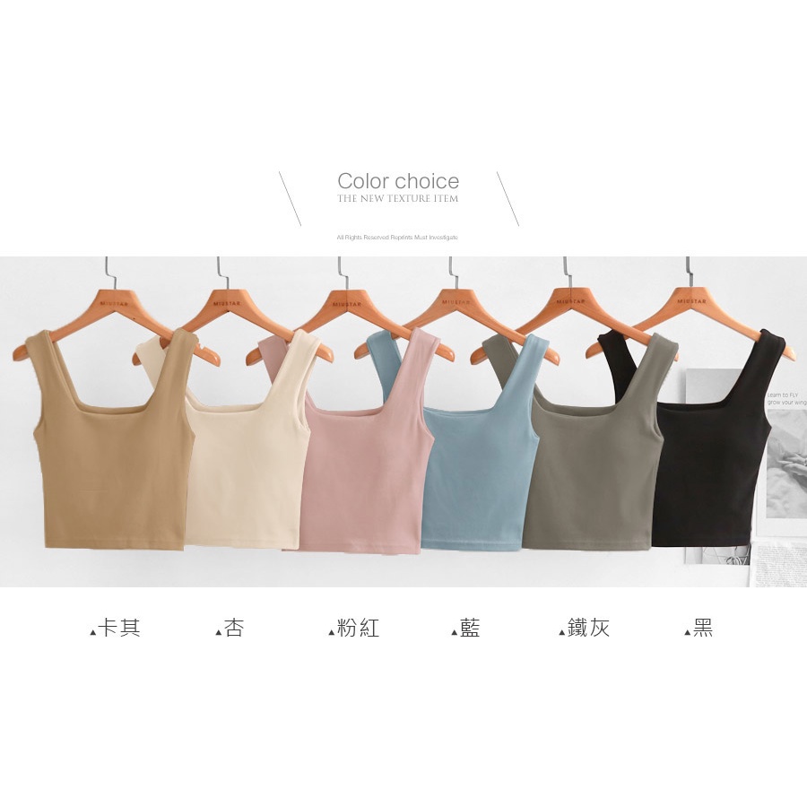 MIUSTAR 正韓 雙層方領棉質罩杯背心BraTop(共6色) 0308 預購 【NL0519RE】粉紅F|藍F|卡其F|杏F|黑F|鐵灰FTanks & CamisolesMIUSTAR