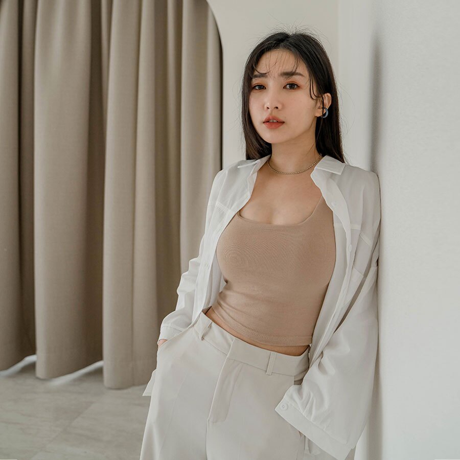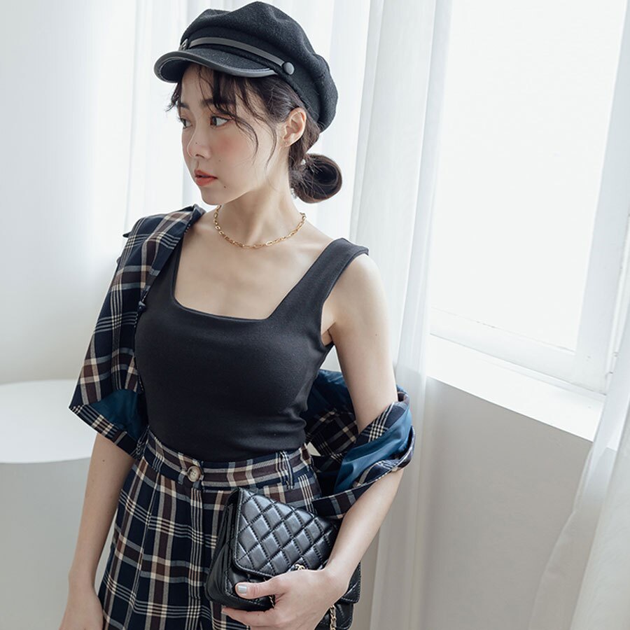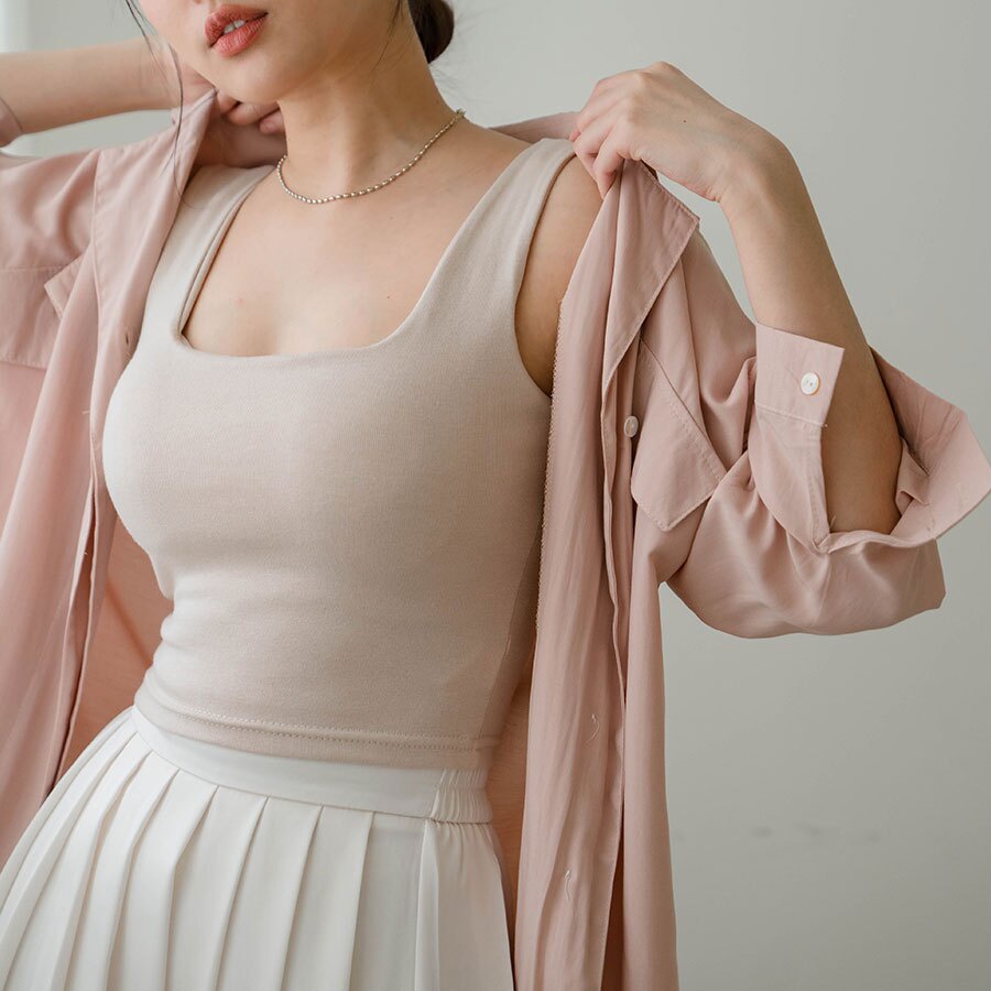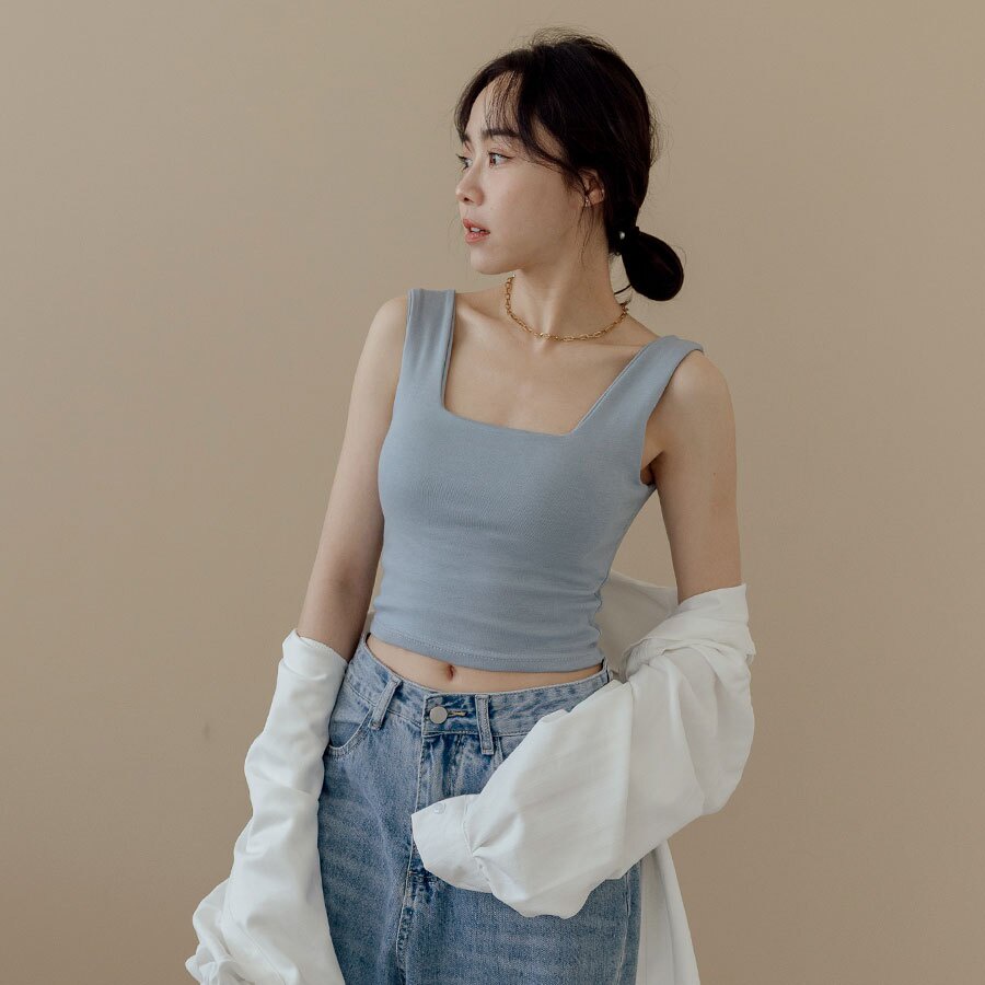 MIUSTAR 正韓 雙層方領棉質罩杯背心BraTop(共6色) 0308 預購 【NL0519RE】粉紅F|藍F|卡其F|杏F|黑F|鐵灰FTanks & CamisolesMIUSTAR