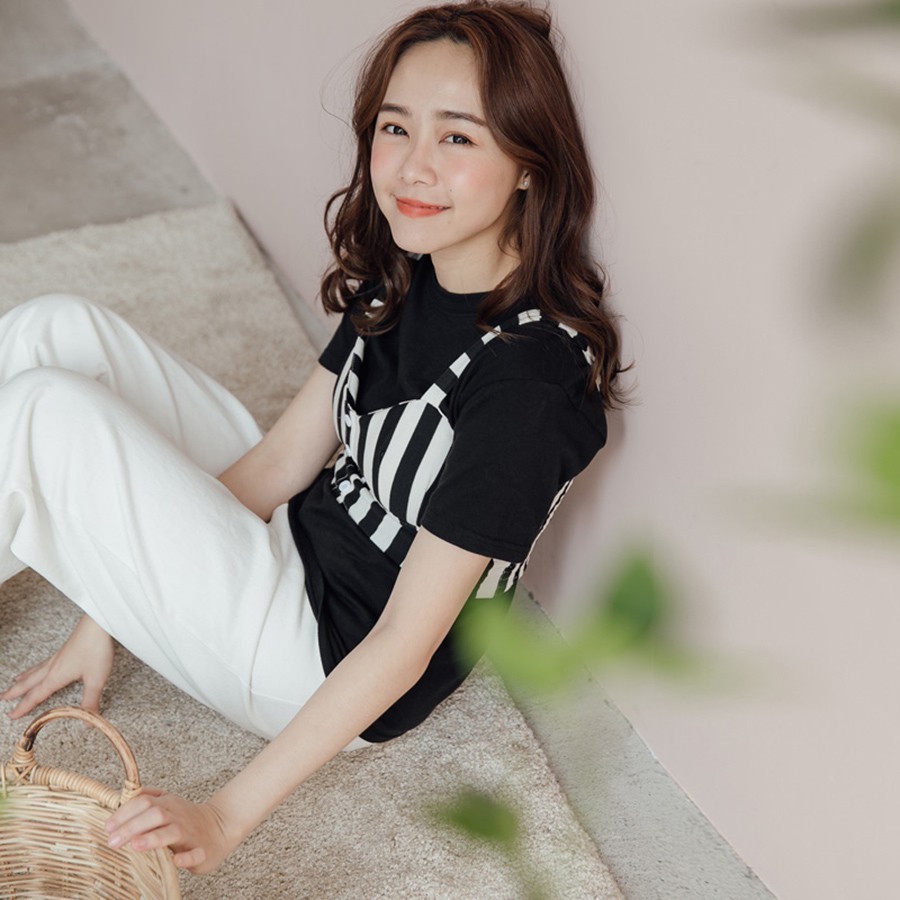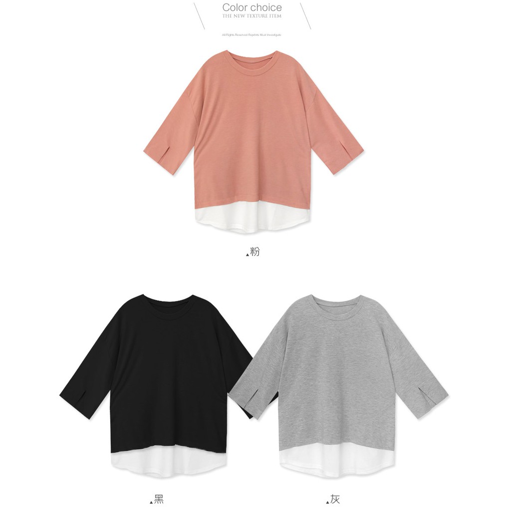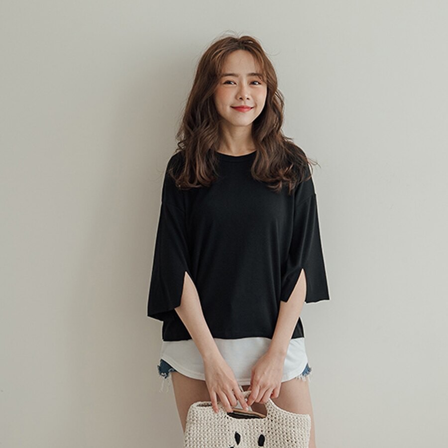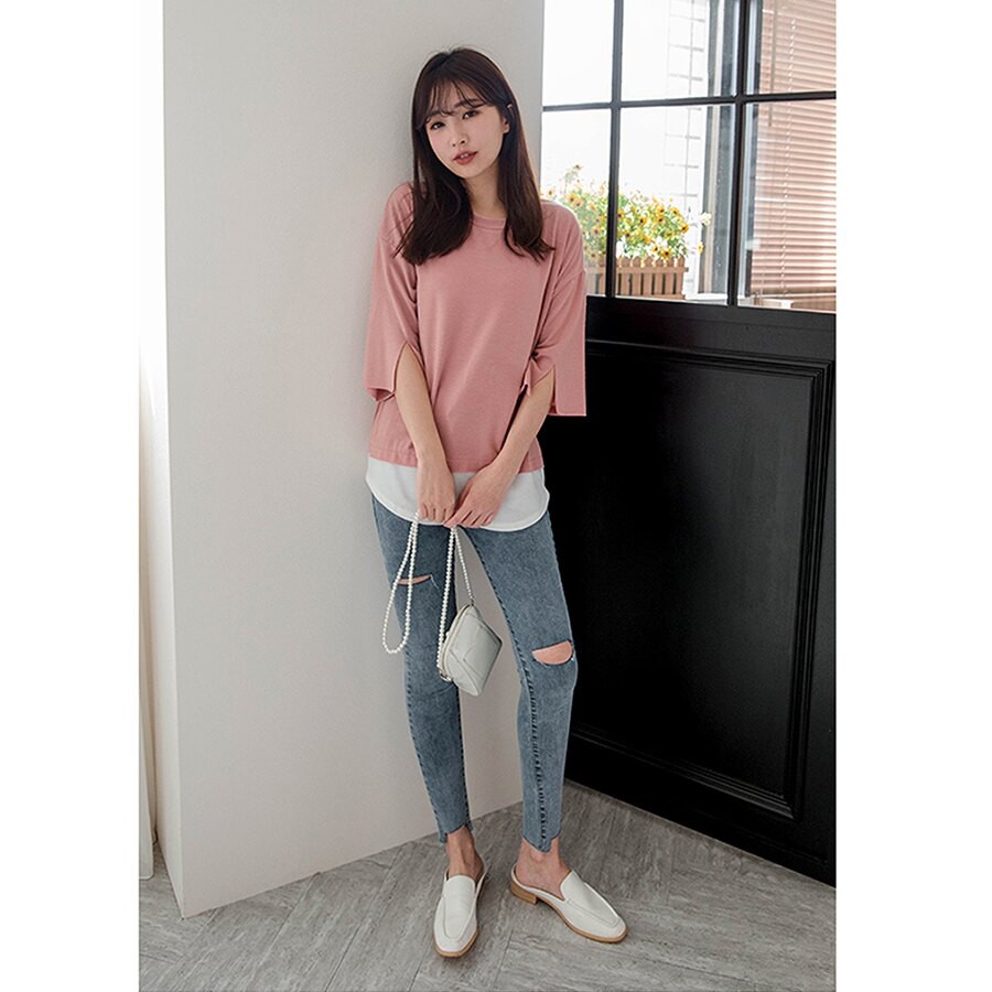 MIUSTAR 正韓 袖開衩假兩件圓弧下襬超彈棉質上衣(共3色)0221 預購【NJ0791RE】黑F|灰F|粉FT-shirtsMIUSTAR