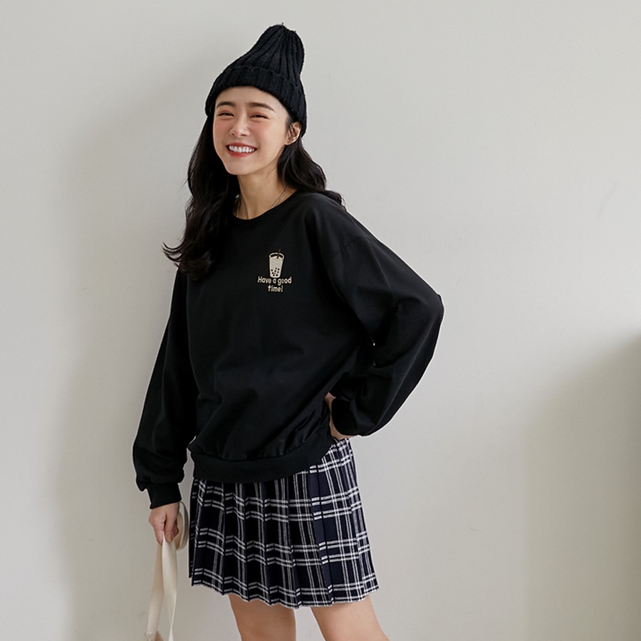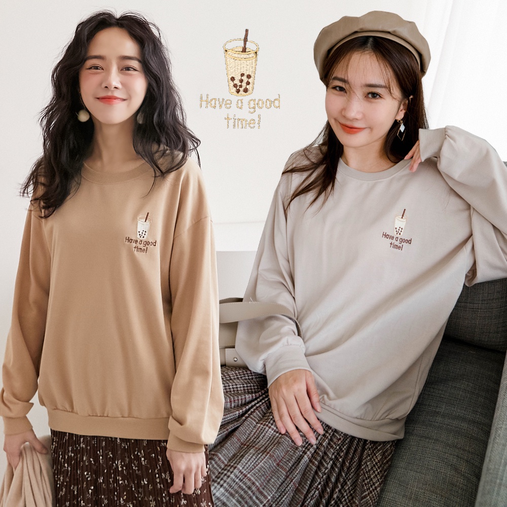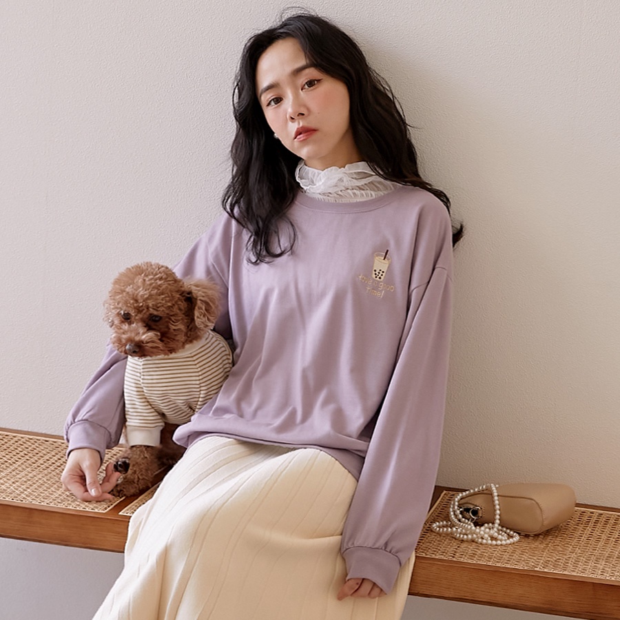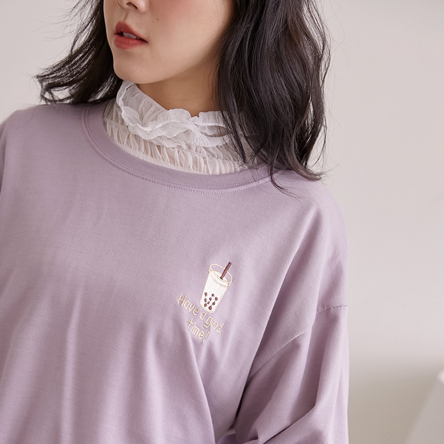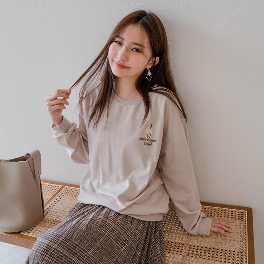 MIUSTAR 正韓 小珍奶繡圖棉質上衣(共4色)0214 預購 【NJ2256RE】黑F|淺杏F|薰衣紫F|奶茶FT-shirtsMIUSTAR