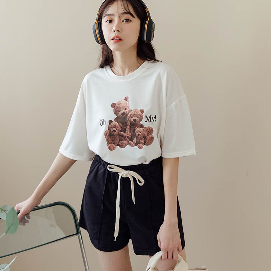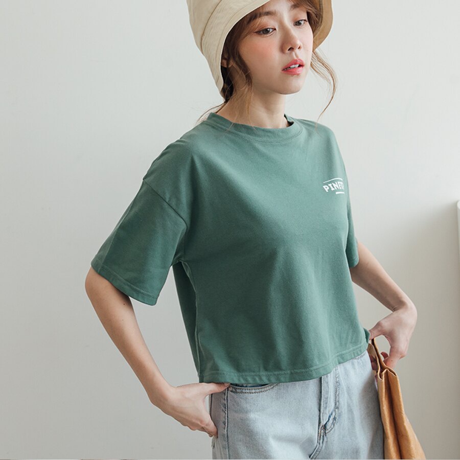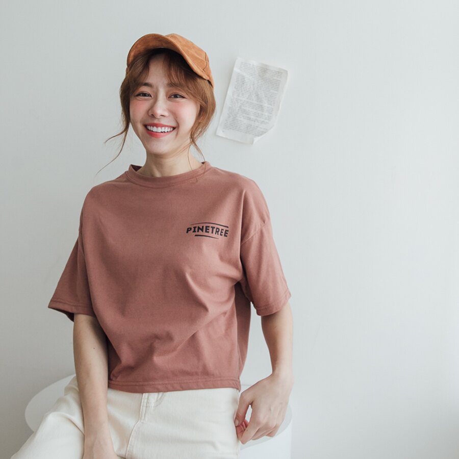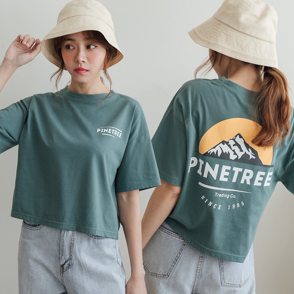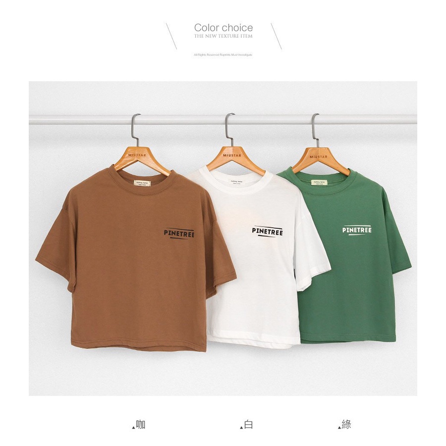 MIUSTAR 正韓 山脈膠印短版棉質上衣(共3色)0503 預購【NL1435RE】白F|綠F|咖FT-shirtsMIUSTAR
