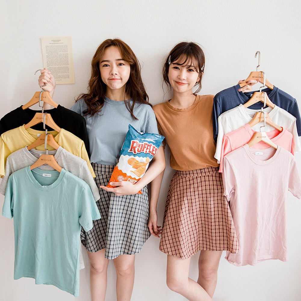 MIUSTAR 正韓 春夏百搭素色彈性短袖棉質上衣(共10色)0221 預購【NL1416RE】淺丈青F|沙漠藍F|黑F|淺灰F|芥黃F|天藍F|白F|玫粉F|灰粉F|焦糖FT-shirtsMIUSTAR