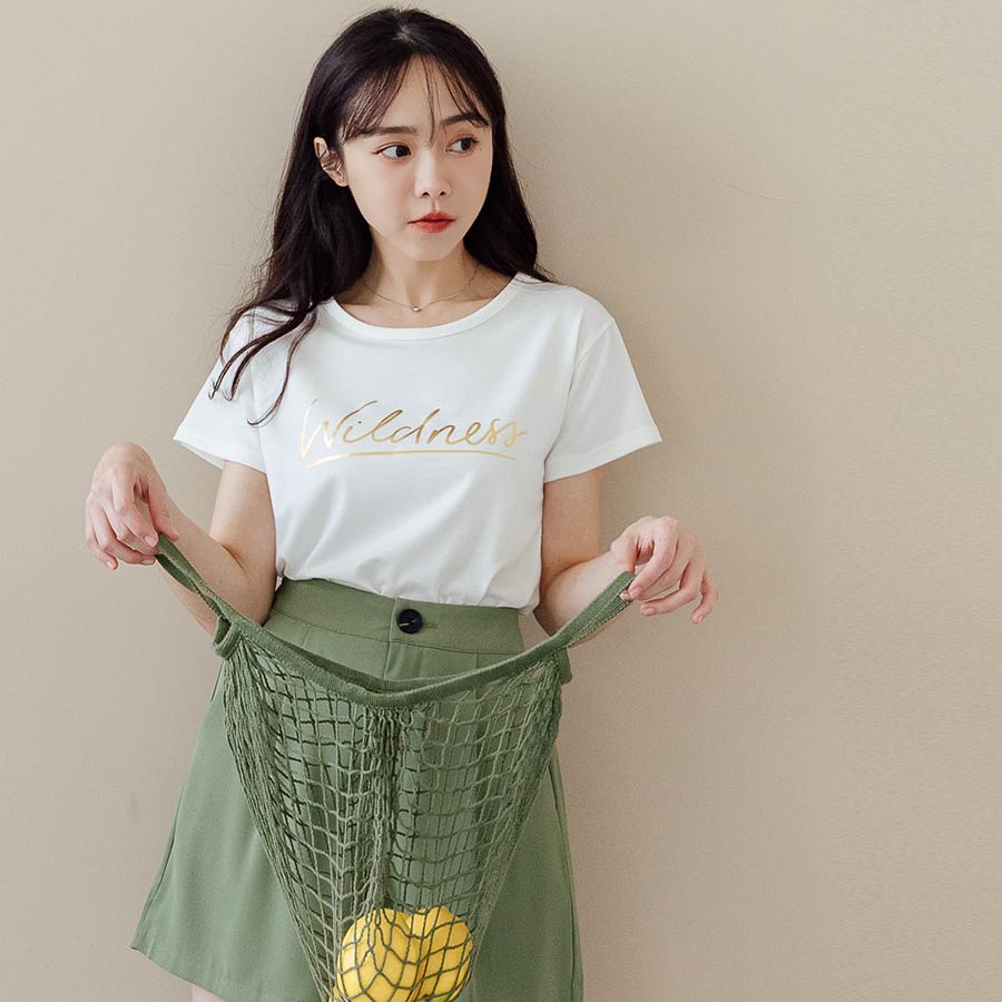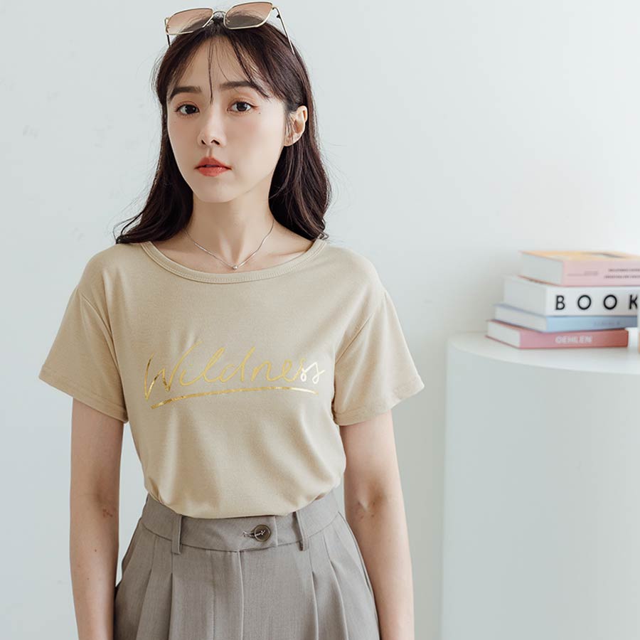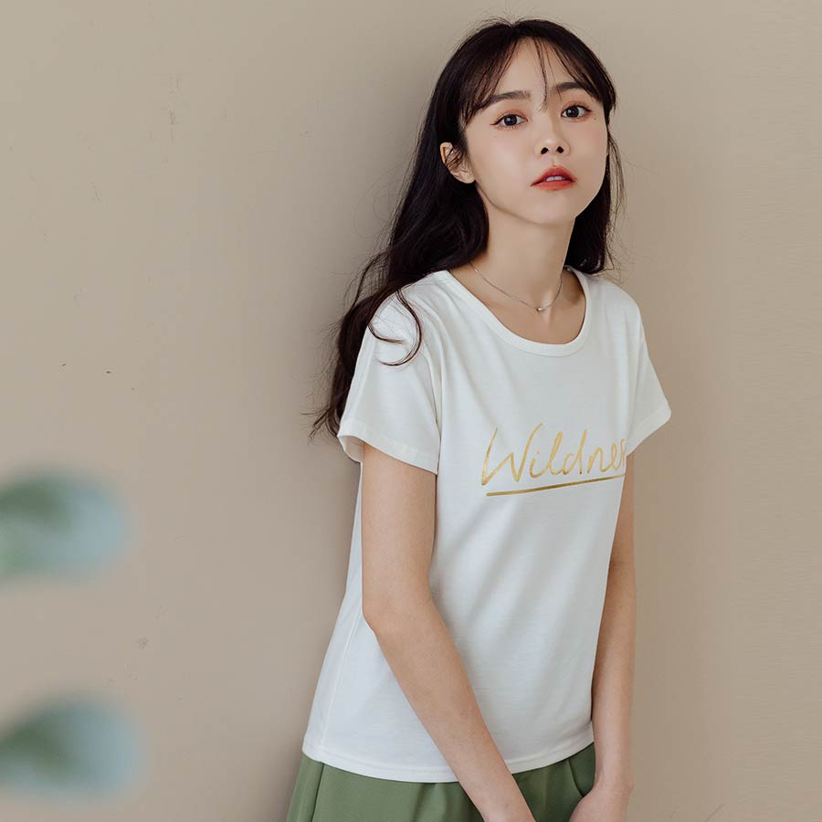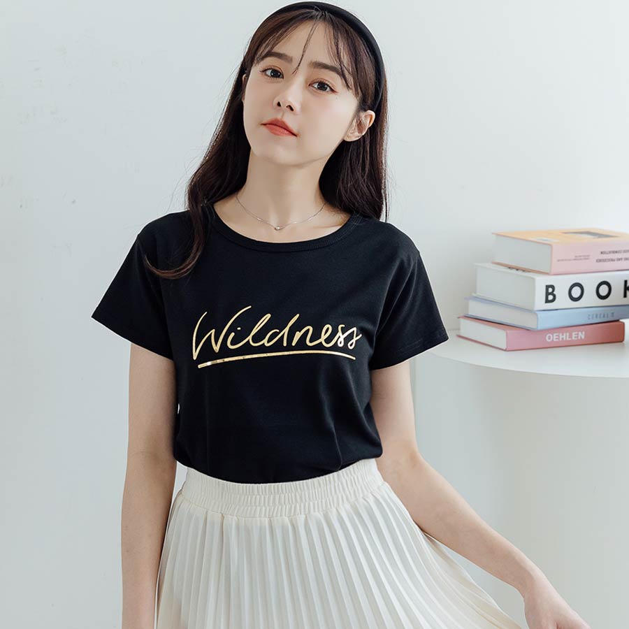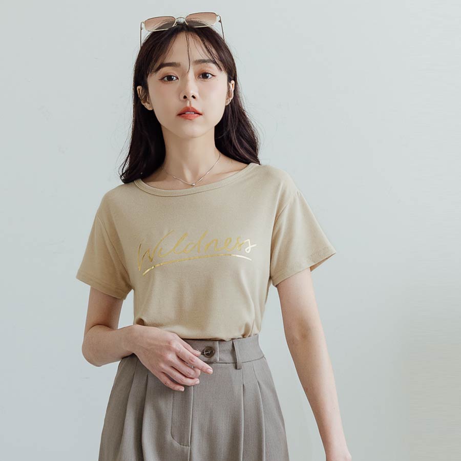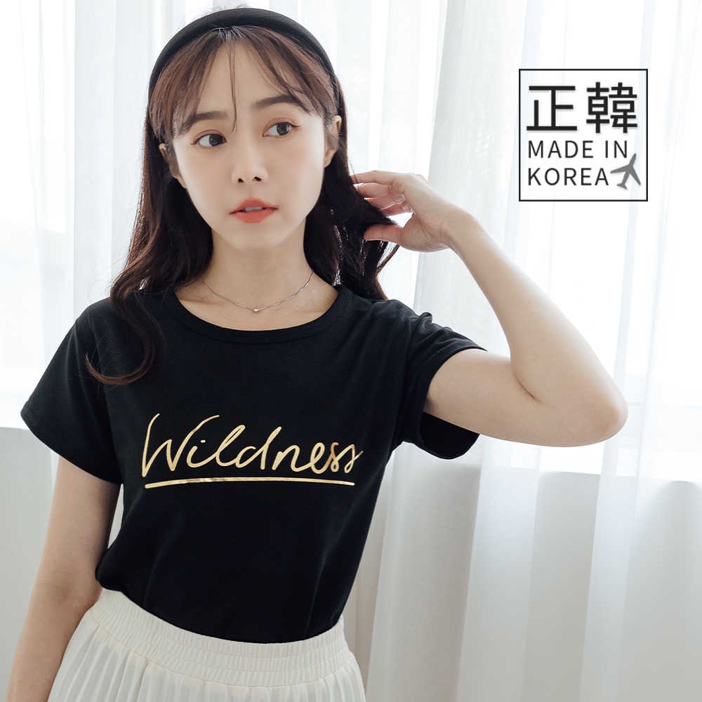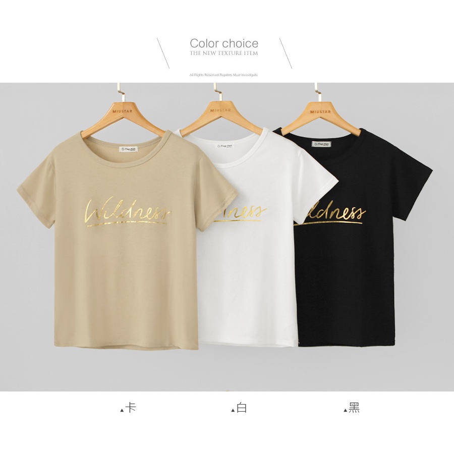 MIUSTAR 正韓.彈力燙金草寫英字棉質上衣(共3色)0509 預購【NL4221RE】卡F|白F|黑FT-shirtsMIUSTAR