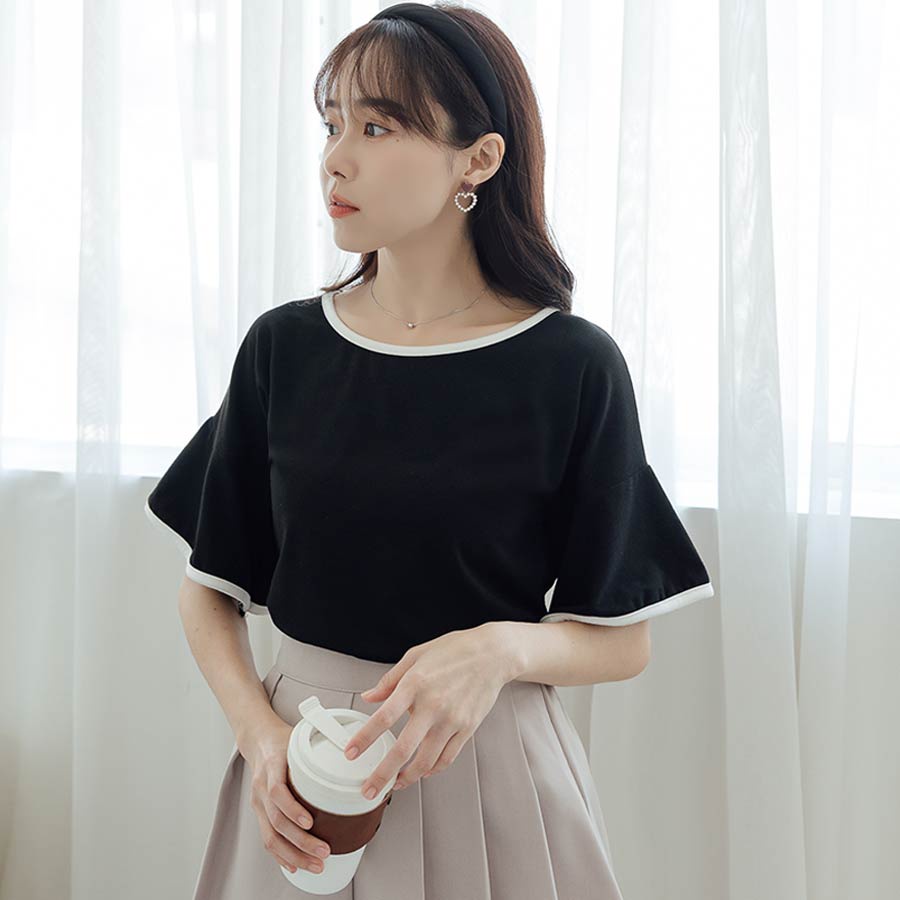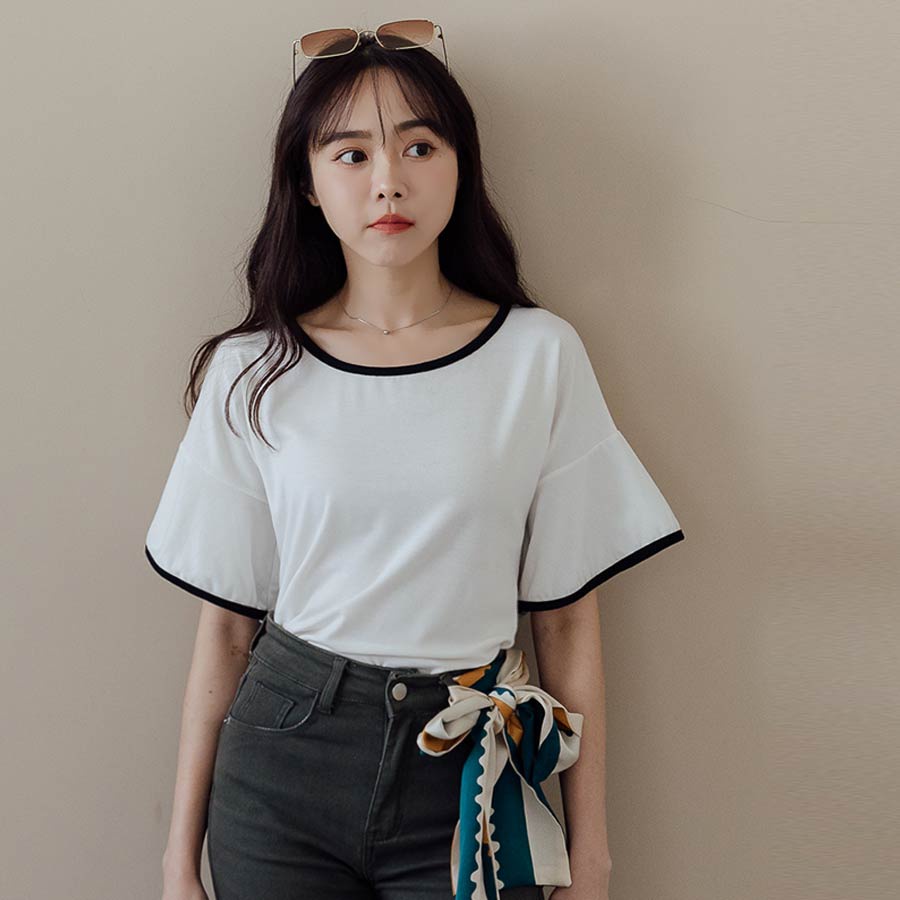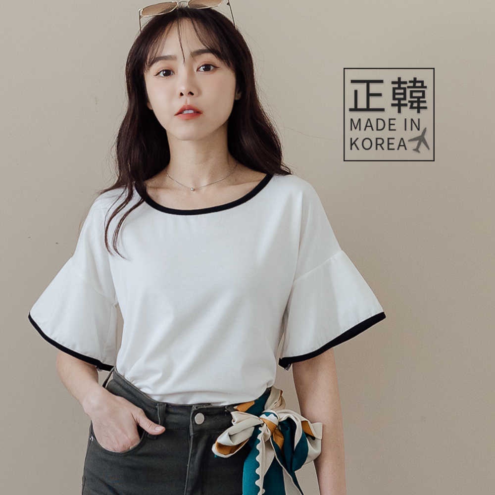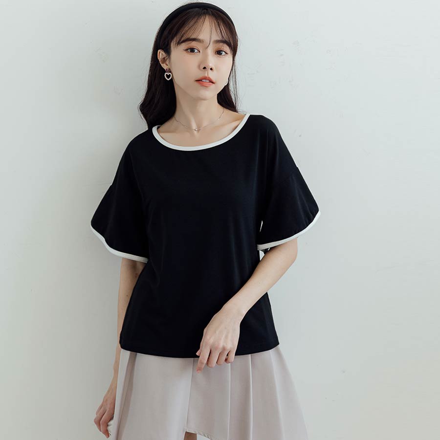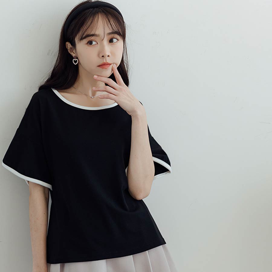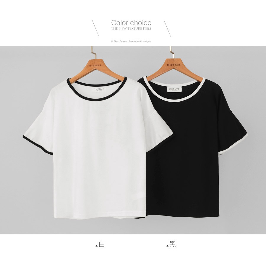 MIUSTAR 正韓.圓領滾邊配色棉質上衣(共2色)0509 預購【NL4023RE】黑F|白FT-shirtsMIUSTAR