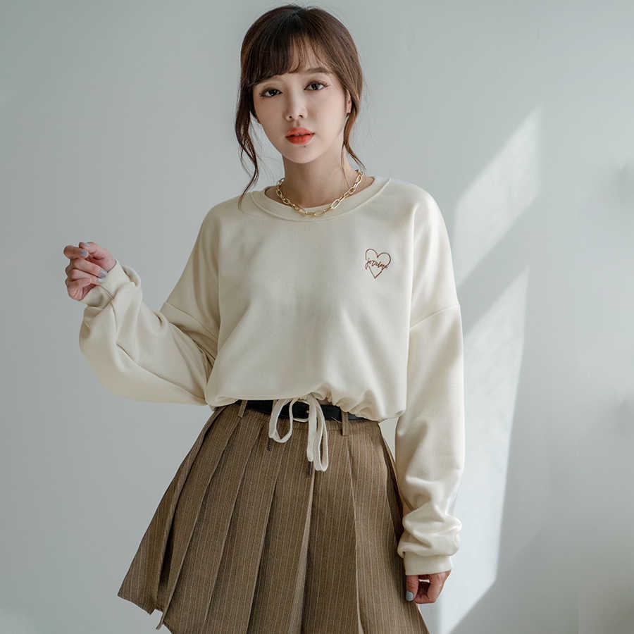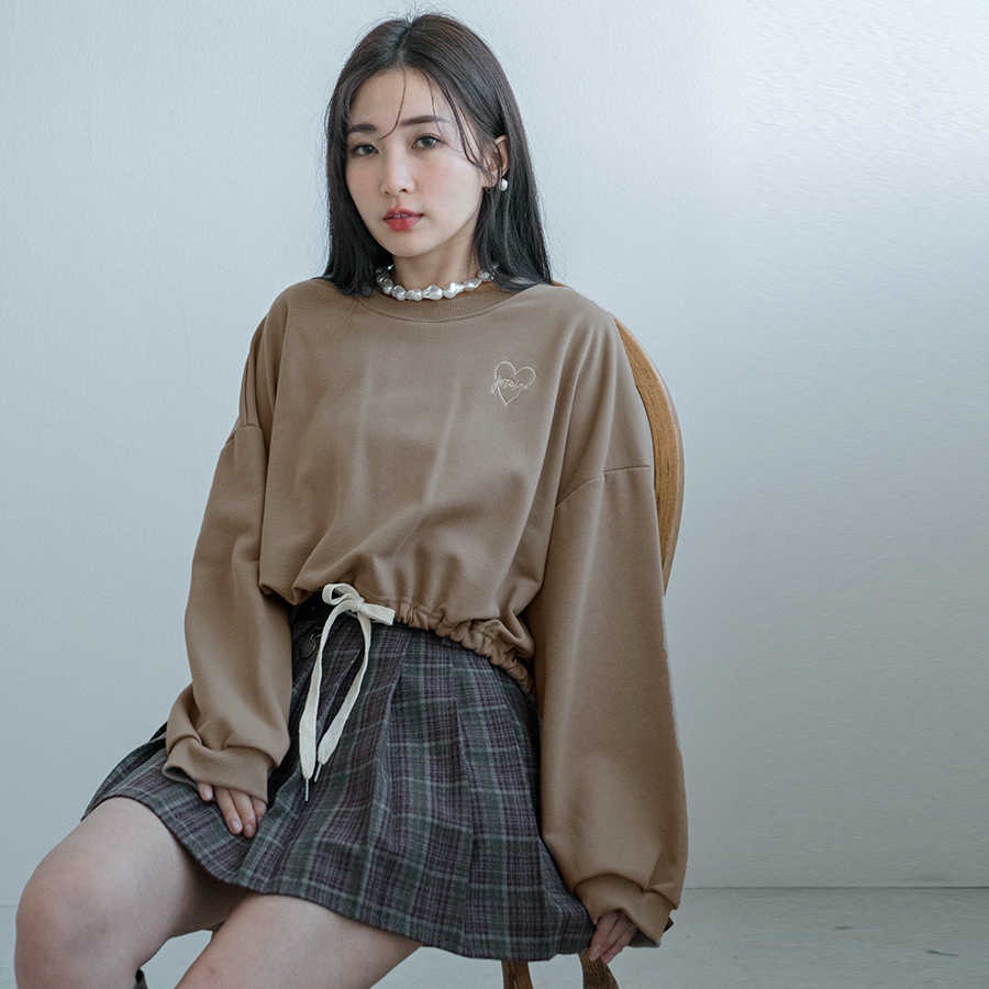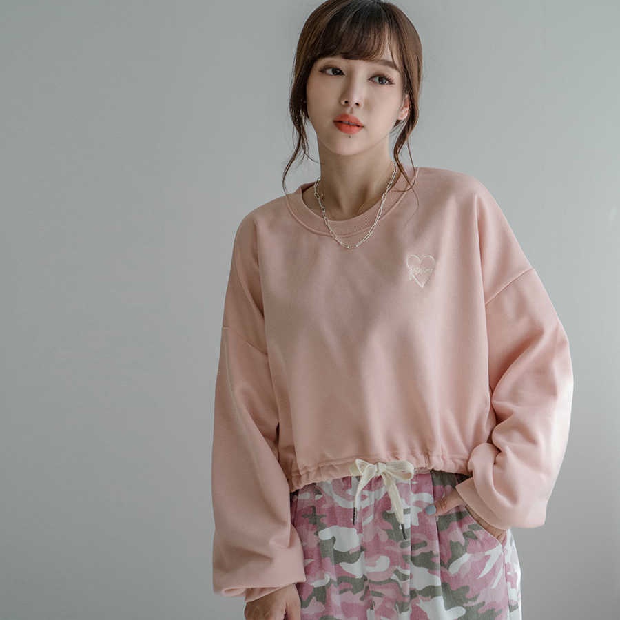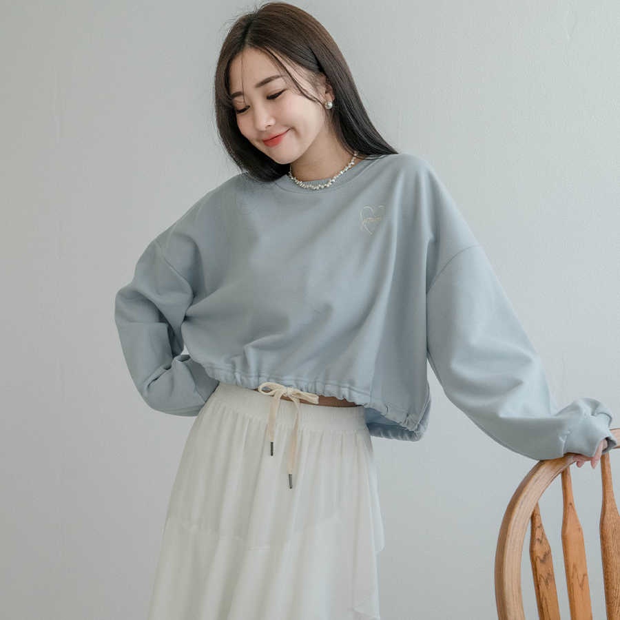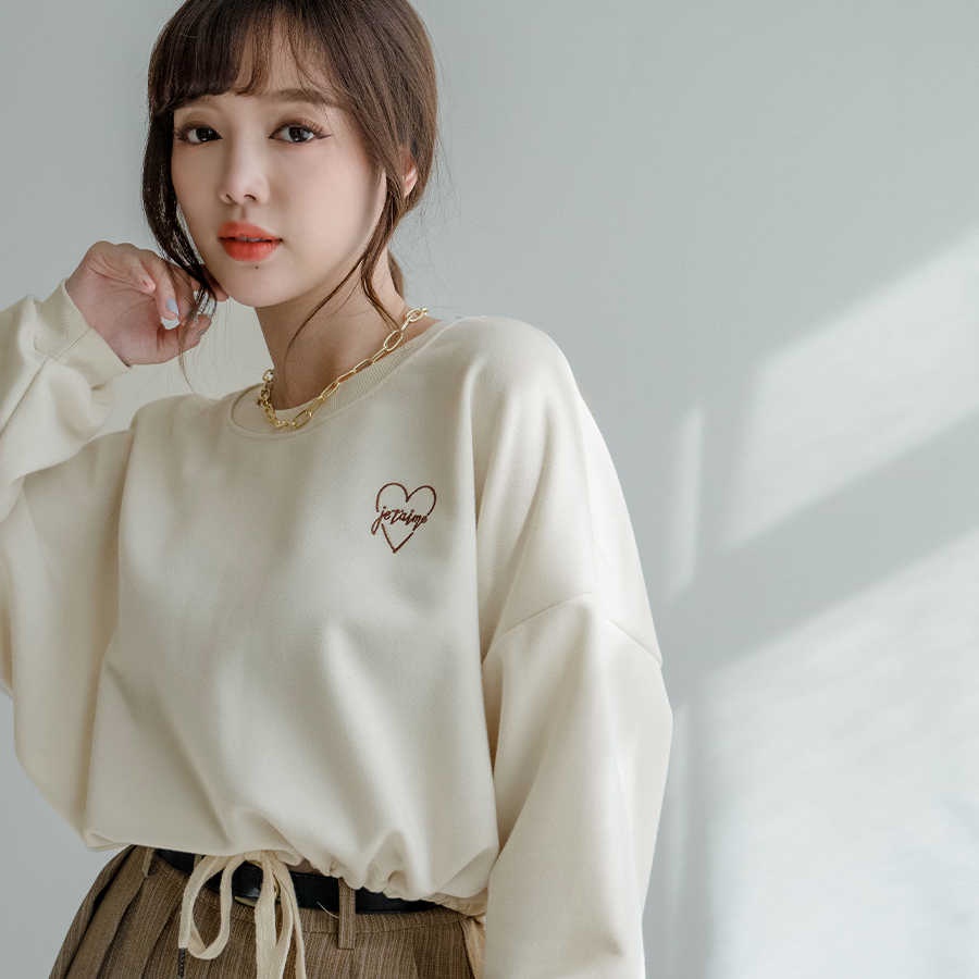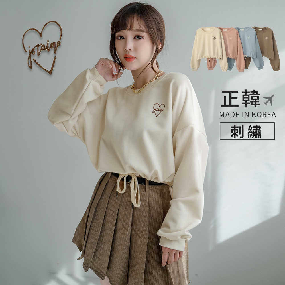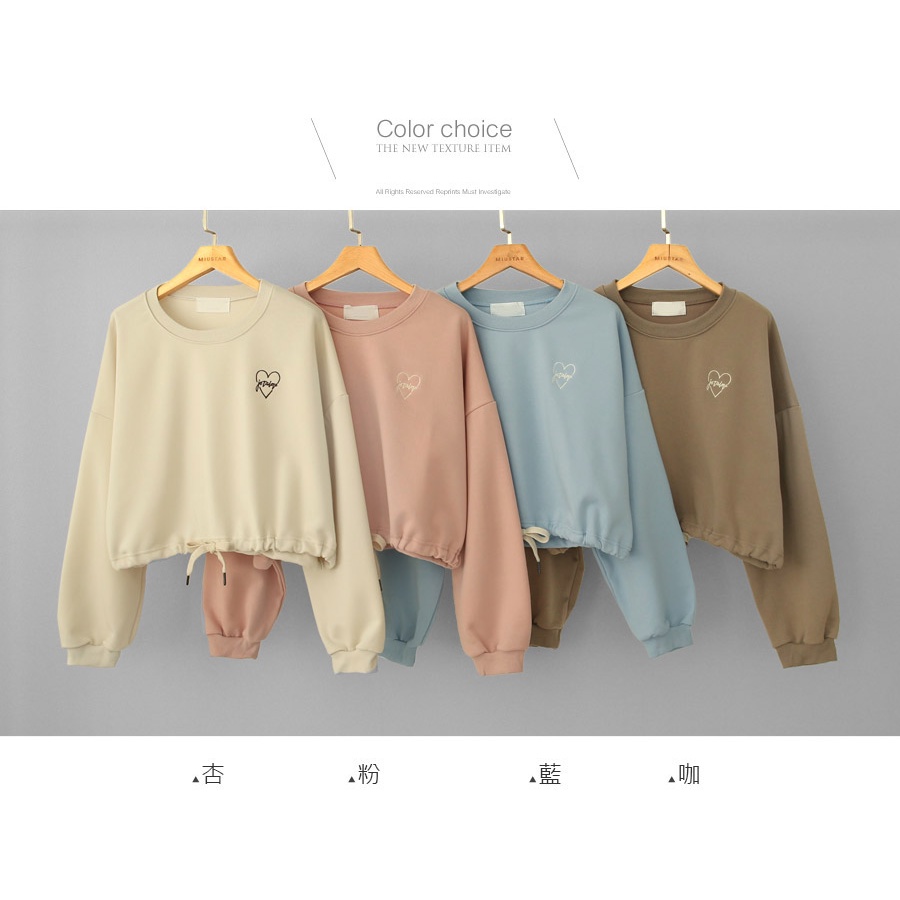 MIUSTAR [網站限定]正韓.愛心刺繡短版抽繩上衣(共4色)1009 預購【NL6220RE】杏F|咖F|粉F|藍FT-shirtsMIUSTAR