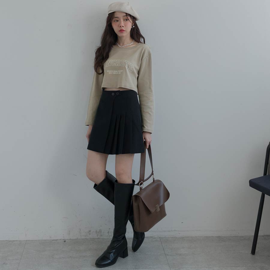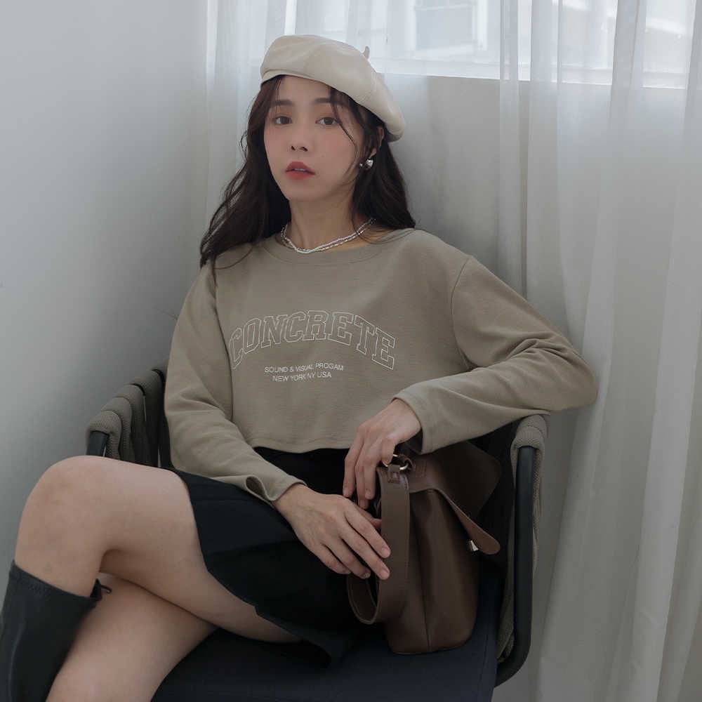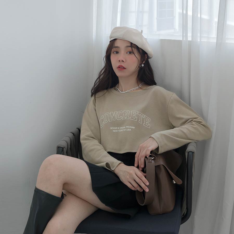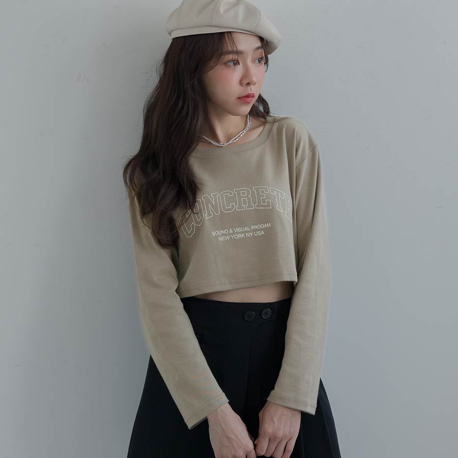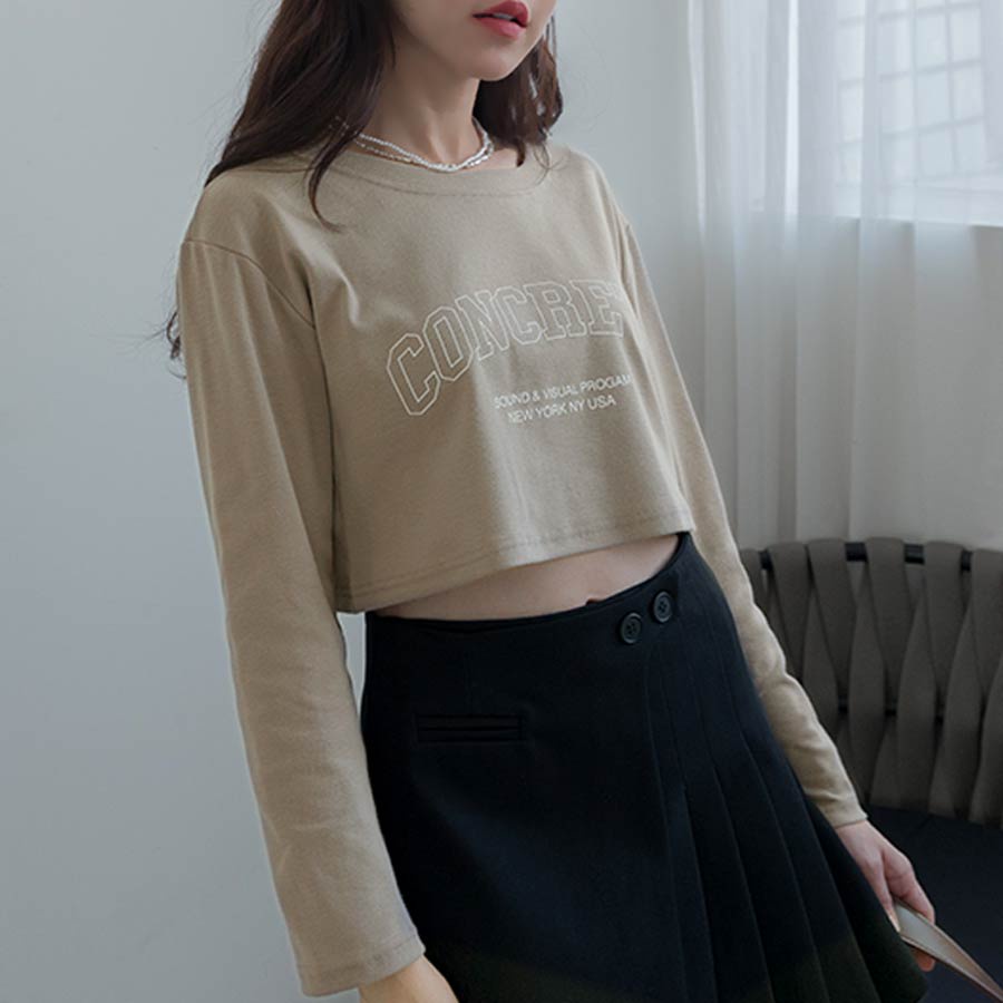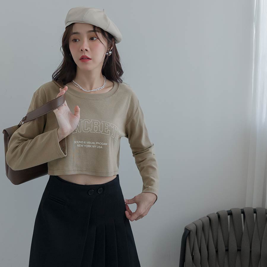 MIUSTAR 螺紋英文印字短版長袖上衣(共1色)1003 預購【NL5829RE】咖FT-shirtsMIUSTAR