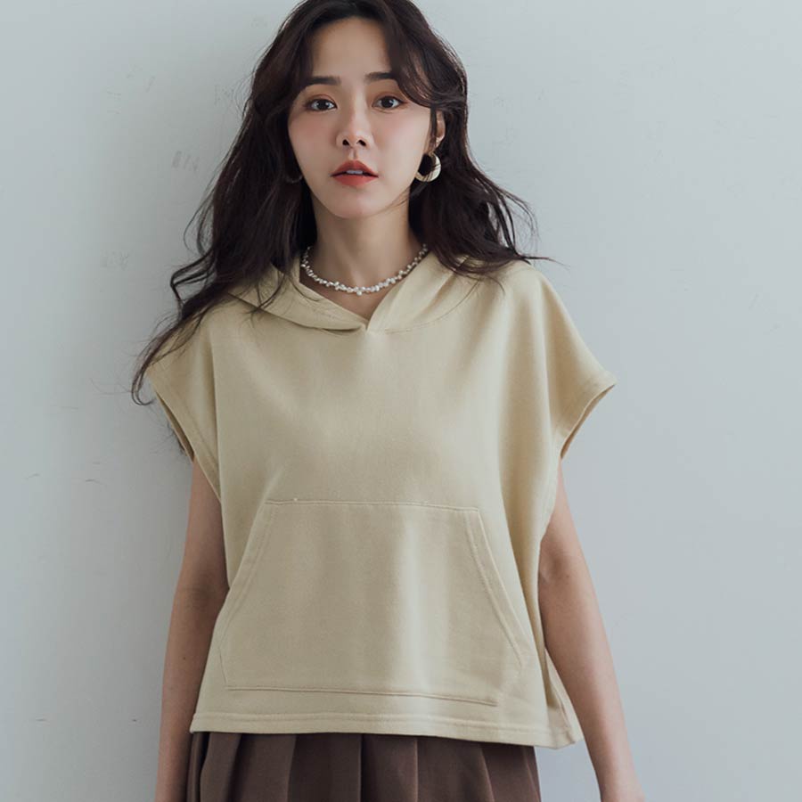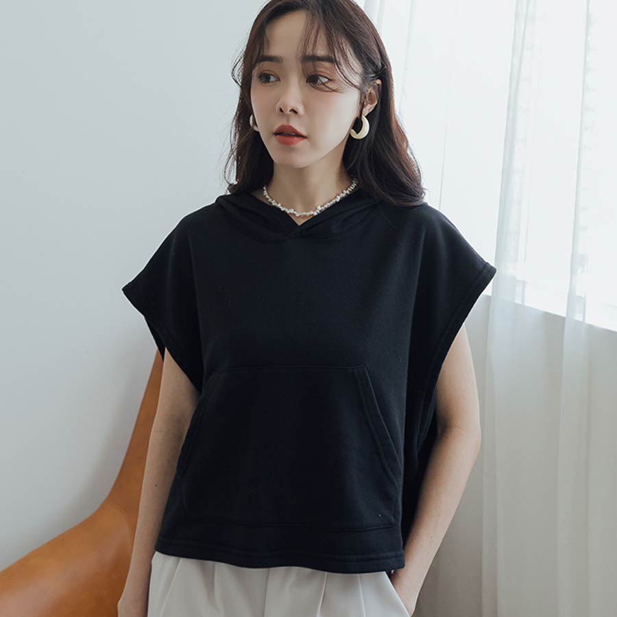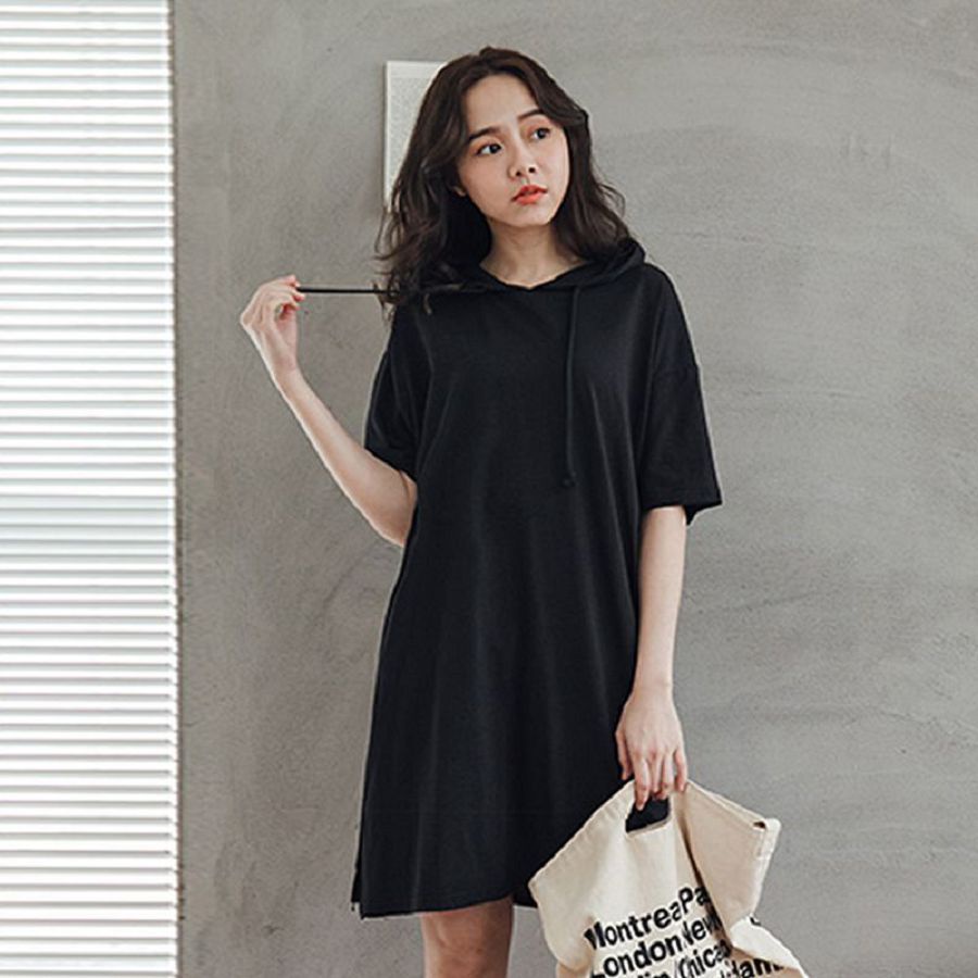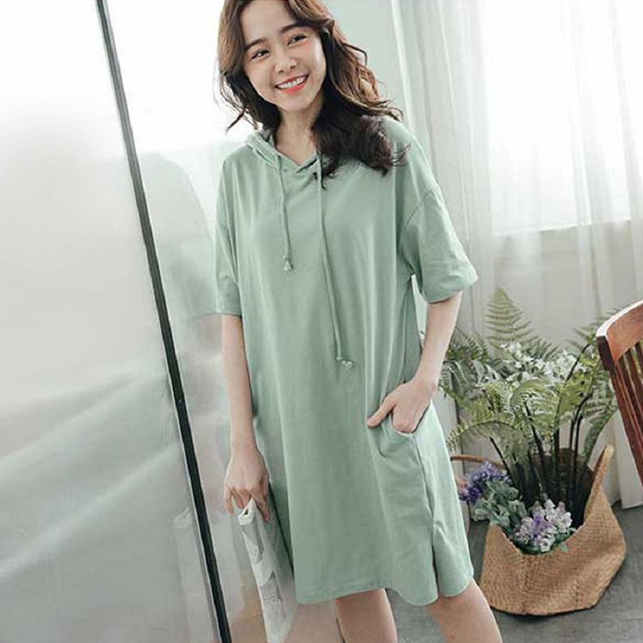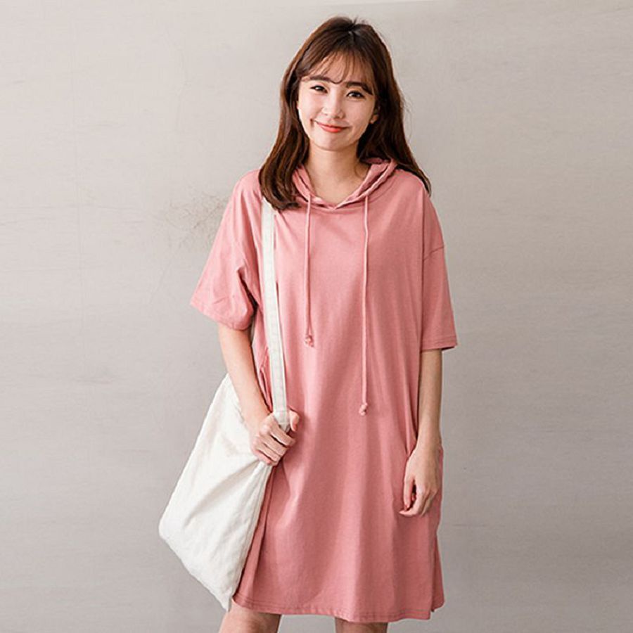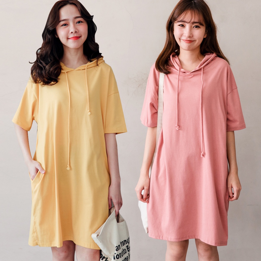 MIUSTAR 正韓 圓弧側口袋短袖連帽棉質洋裝(共4色)0322 預購【NL0793RE】芋粉F|芥黃F|粉綠F|黑FMIUSTAR