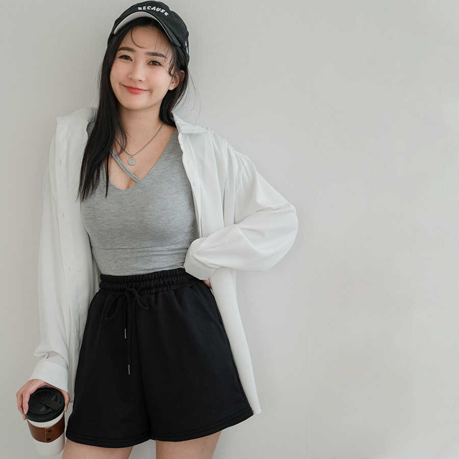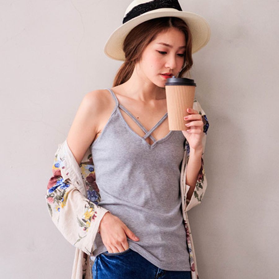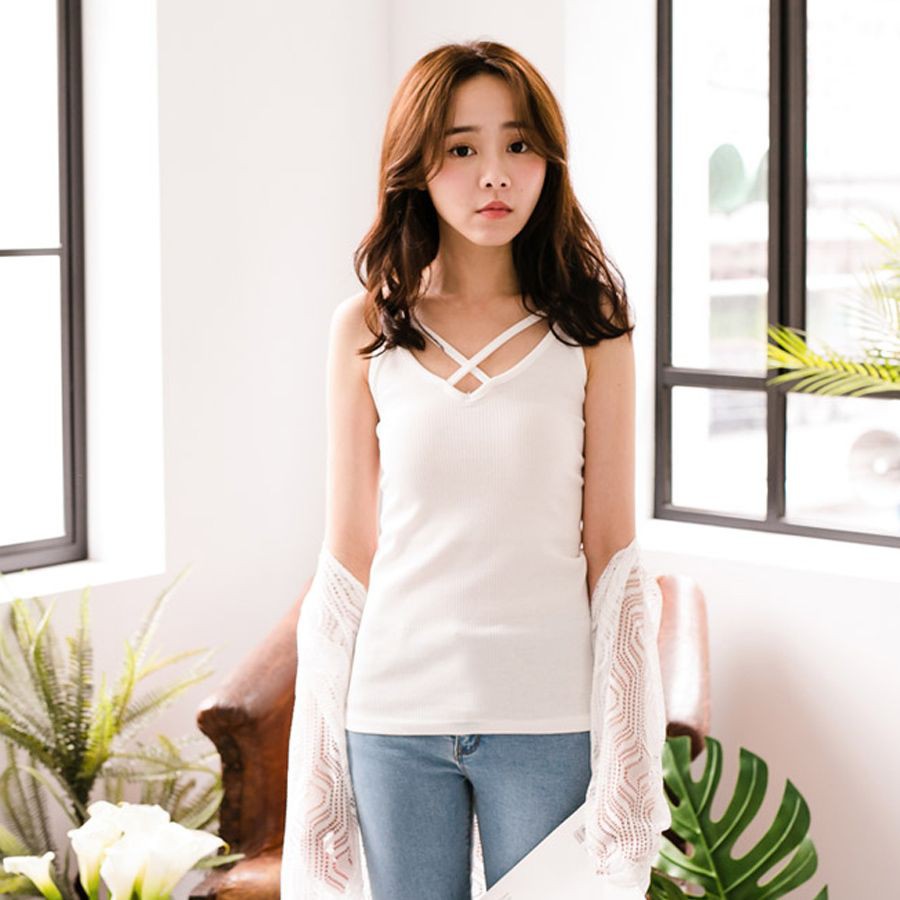 MIUSTAR 正韓 性感前交叉舒適超彈力坑條針織背心(共3色)0525 預購【NJ1340RE】灰F|黑F|白FTanks & CamisolesMIUSTAR