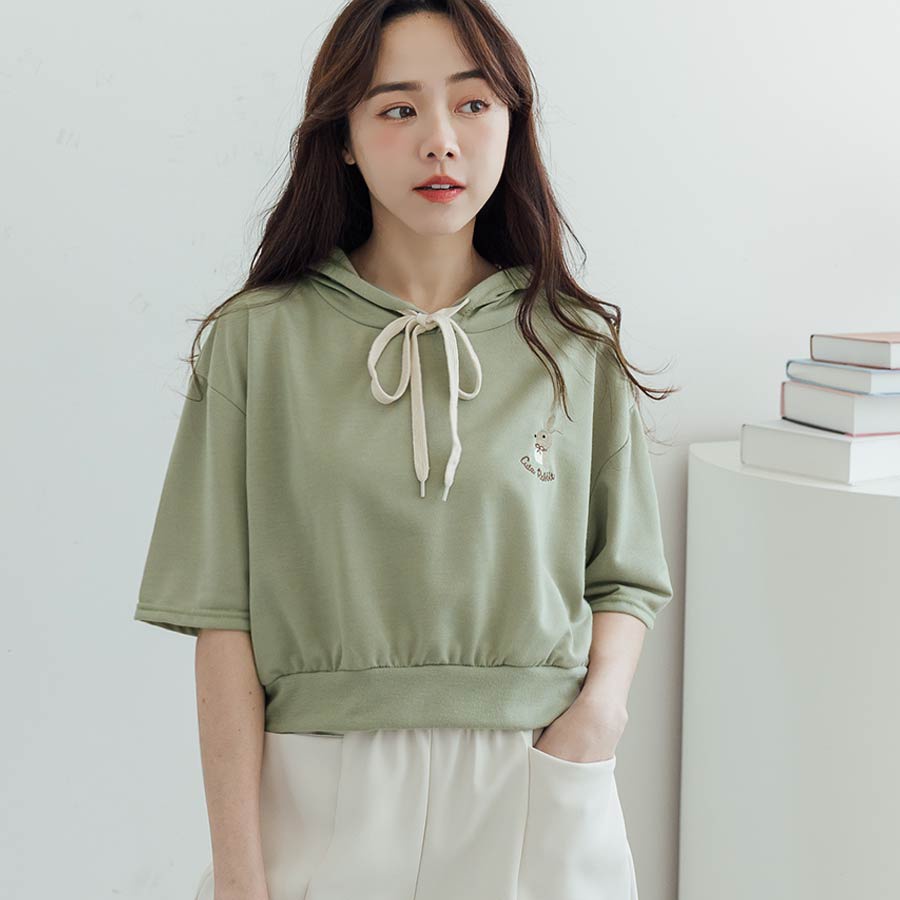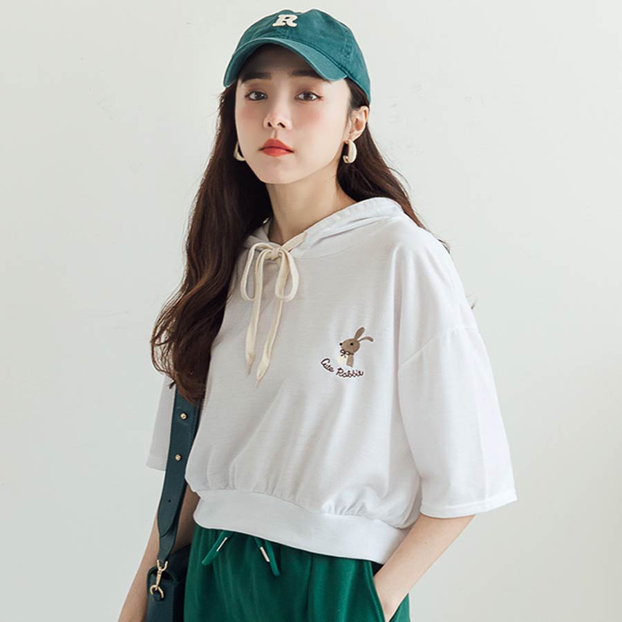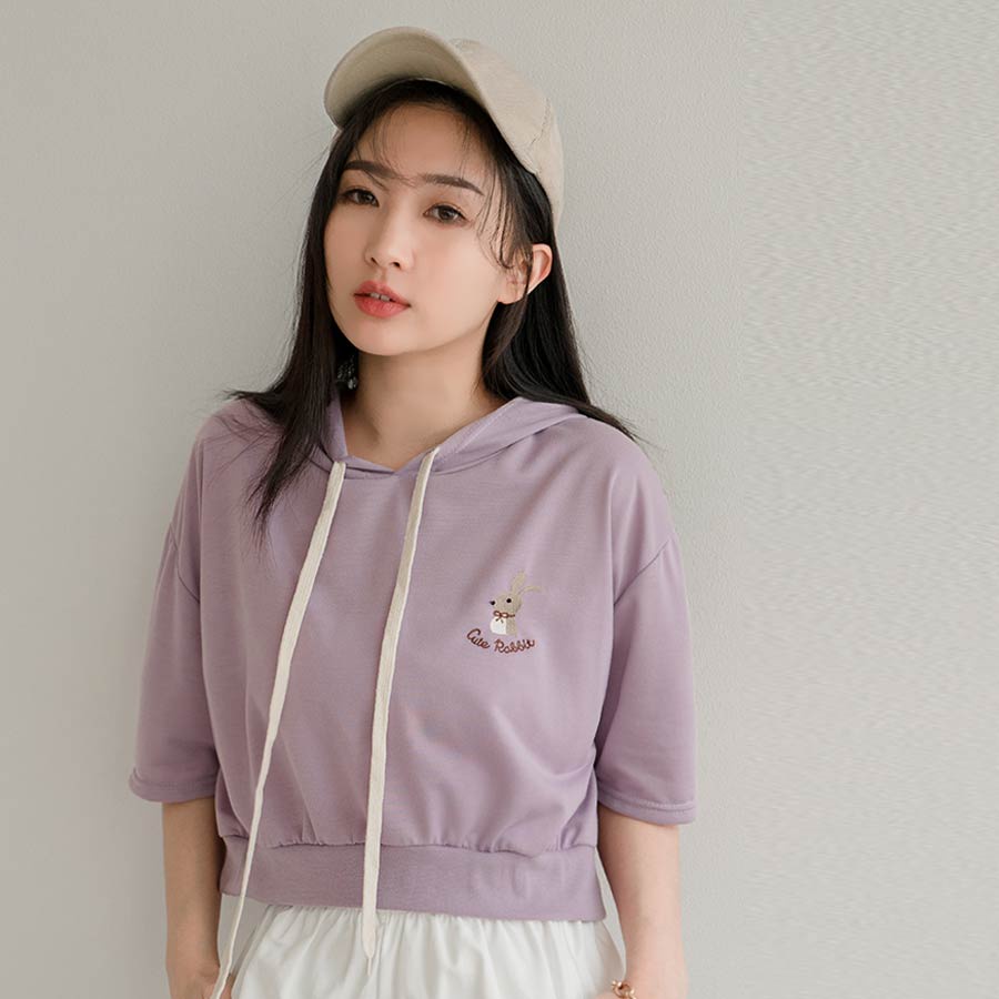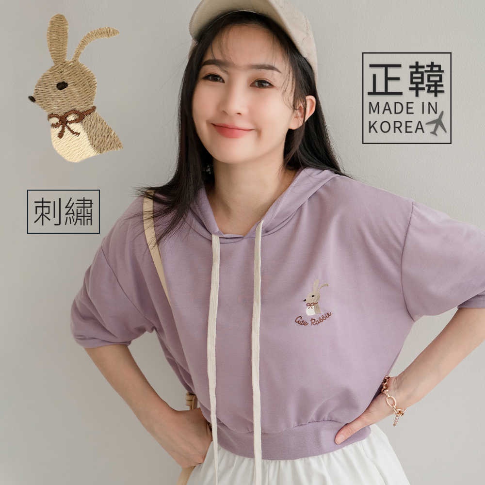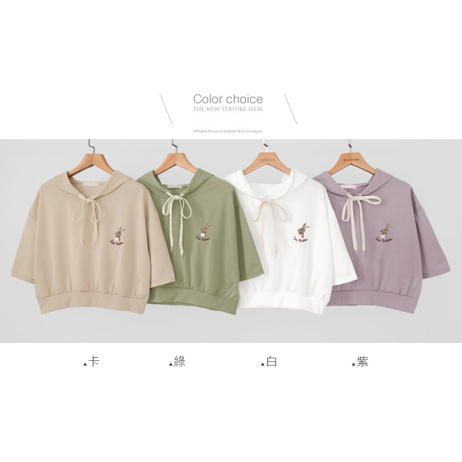 MIUSTAR 正韓.可愛刺繡兔連帽短袖棉質上衣(共4色)0314 預購【NL3533RE】卡F|白F|綠F|紫FHoodiesMIUSTAR