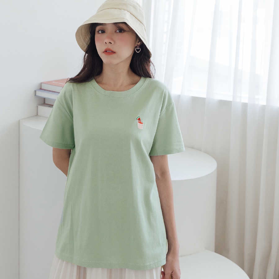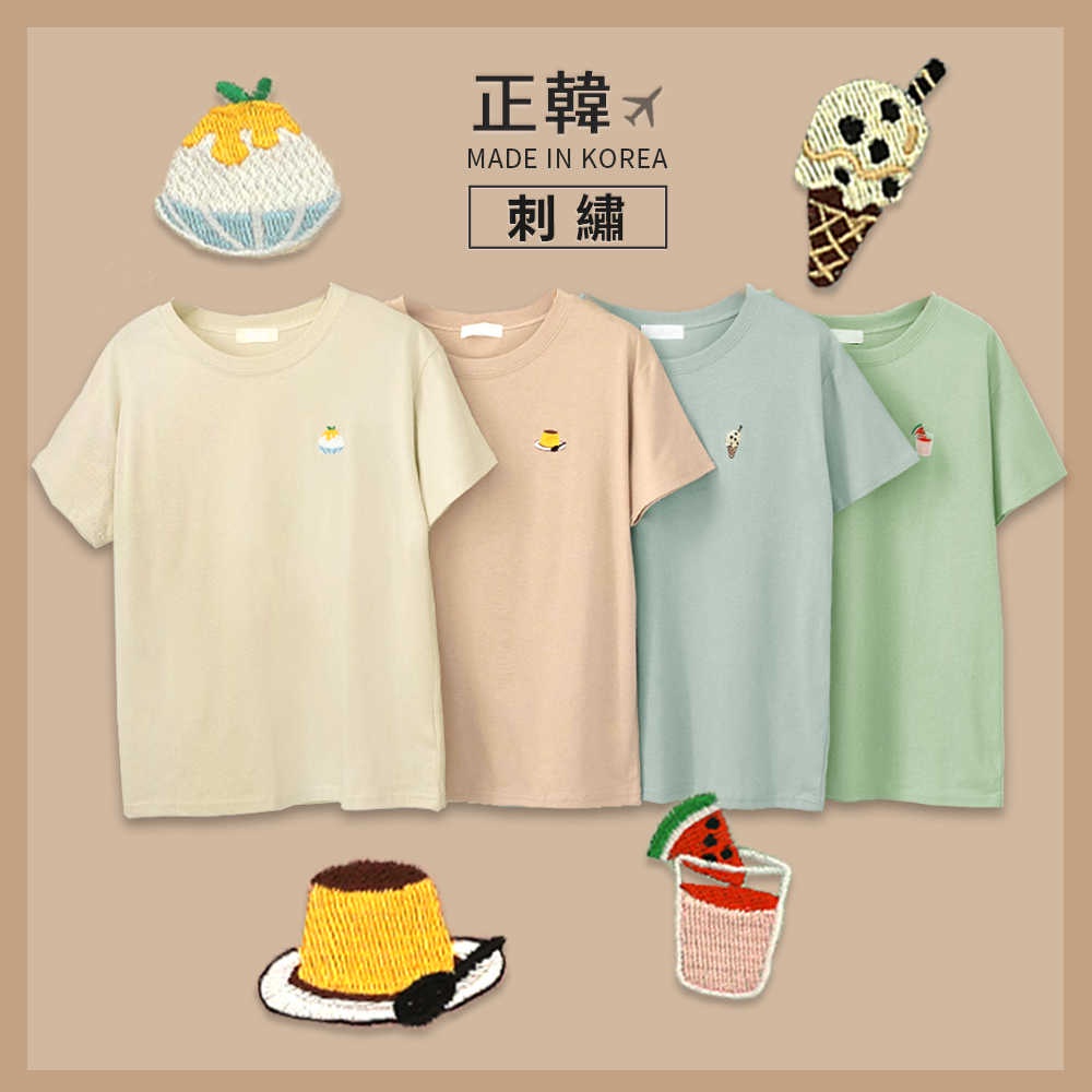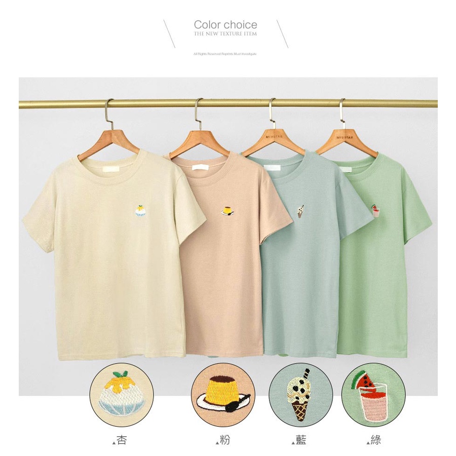 MIUSTAR 正韓.刺繡夏日可愛冰品棉質上衣(共4色)0627 預購【NL4590RE】杏F|粉F|綠F|藍FT-shirtsMIUSTAR