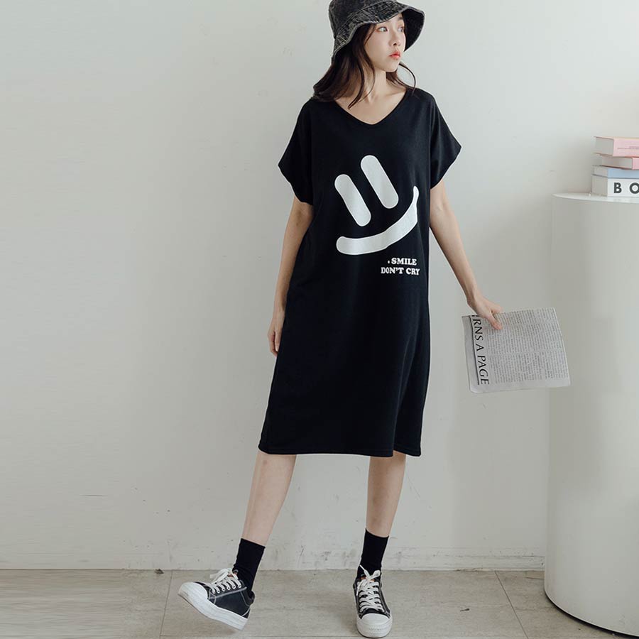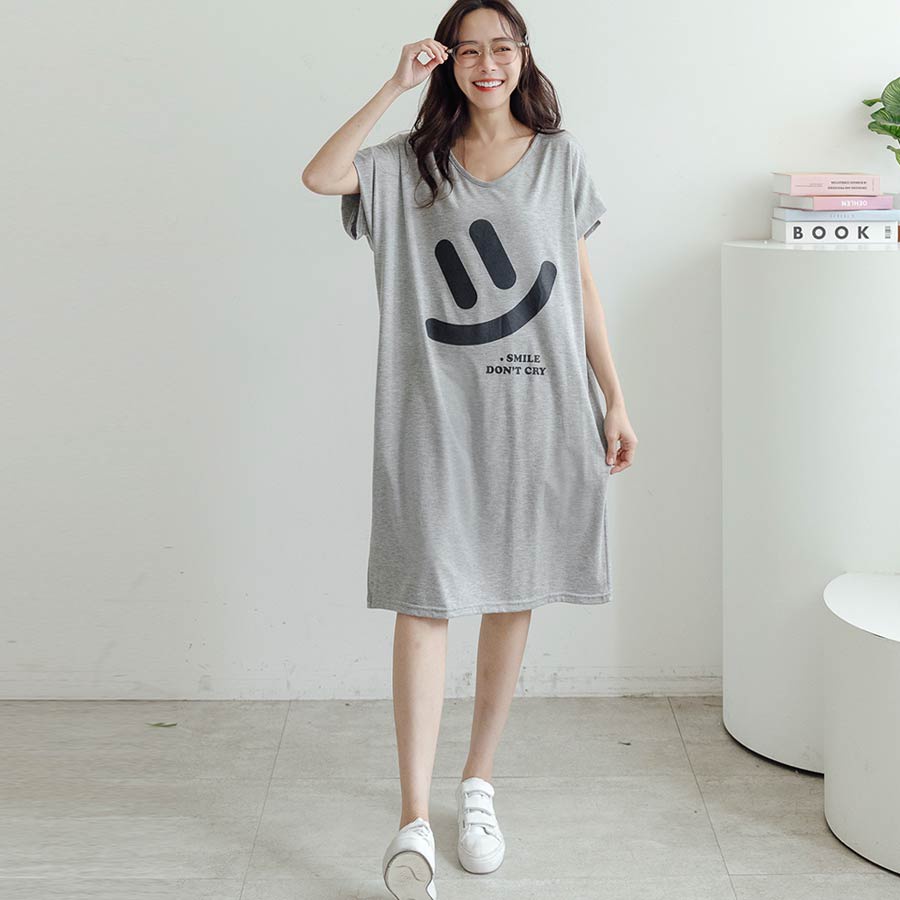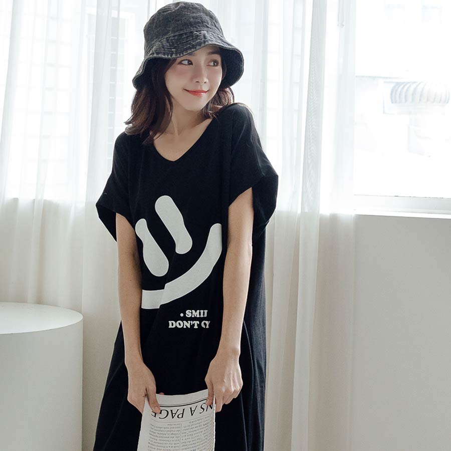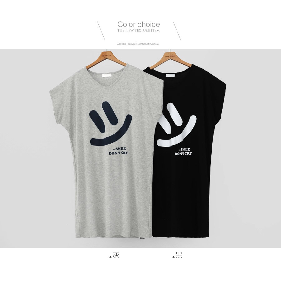 MIUSTAR 正韓.超彈力前印大笑臉寬洋(共2色)0808 預購【NL5133RE】灰F|黑FMIUSTAR