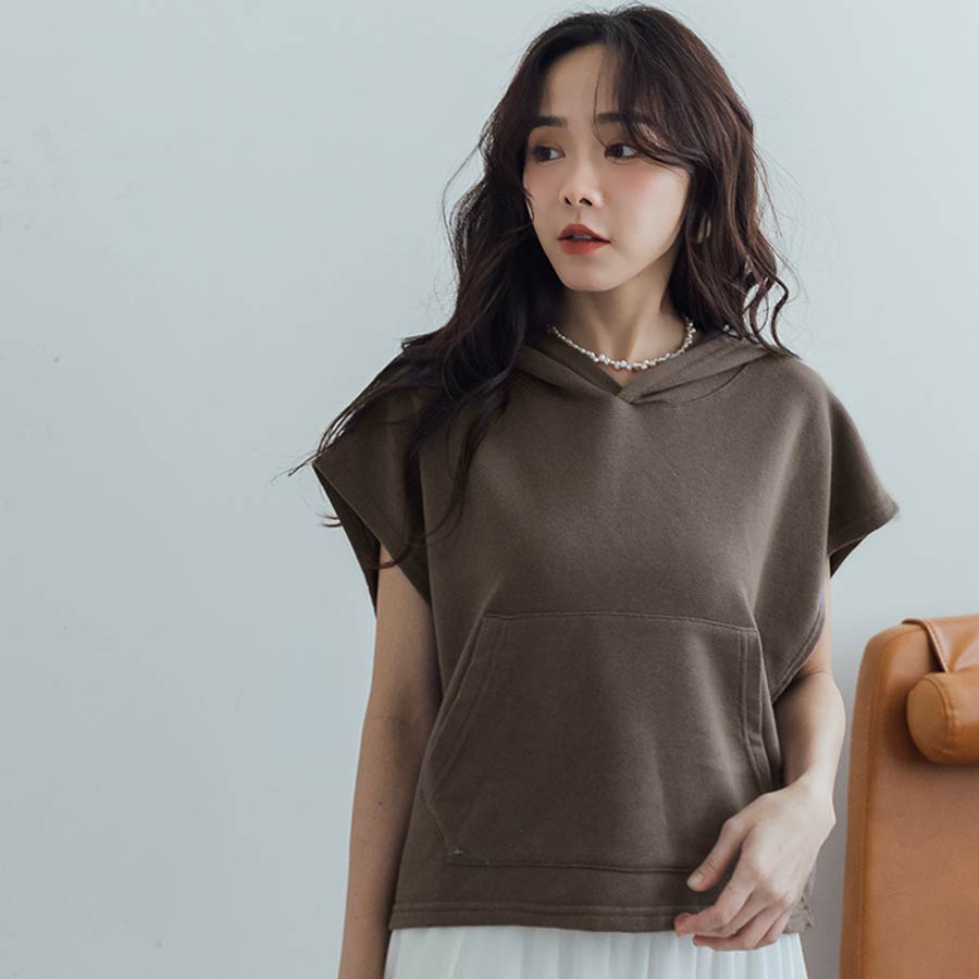 MIUSTAR [網站獨賣]水洗大絨連帽袋鼠袋背心(共3色)0829 預購【NL5517RE】米F|咖F|黑FVestsMIUSTAR