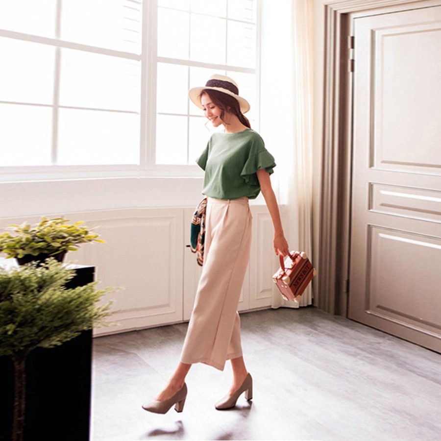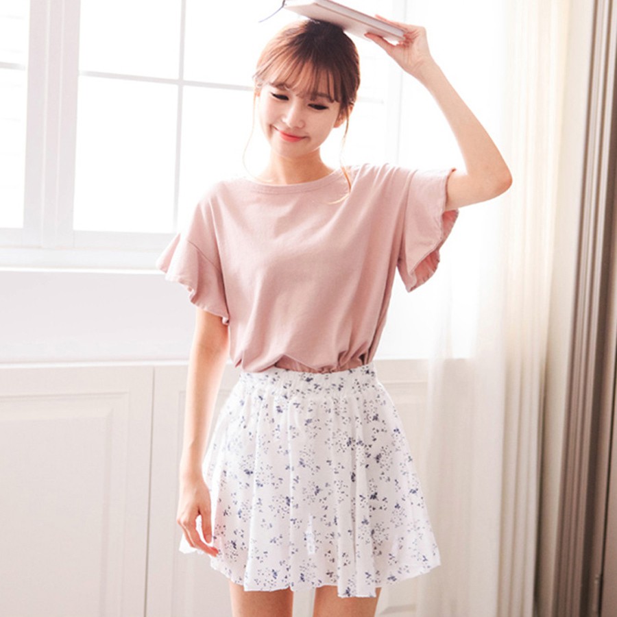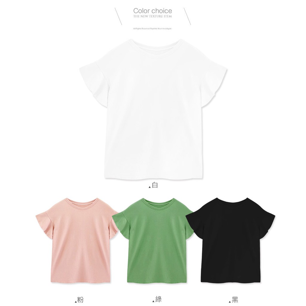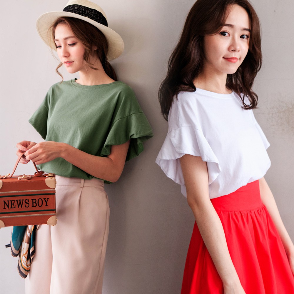 MIUSTAR 正韓 甜美百搭挺版荷葉袖棉質上衣(共4色)0221 預購 【NL0176RE】黑F|白F|粉F|綠FT-shirtsMIUSTAR