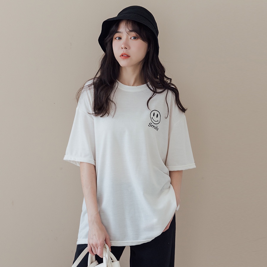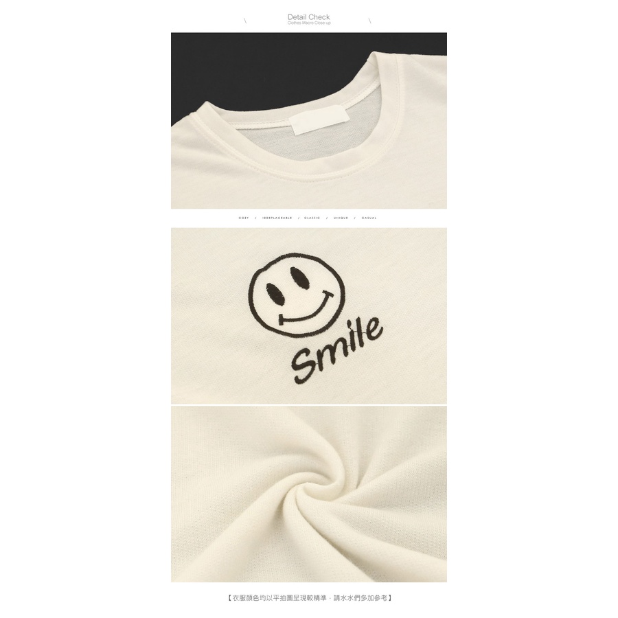 MIUSTAR 正韓.左繡SMILE笑臉短袖棉上衣(共4色)0502 預購【NL4014RE】